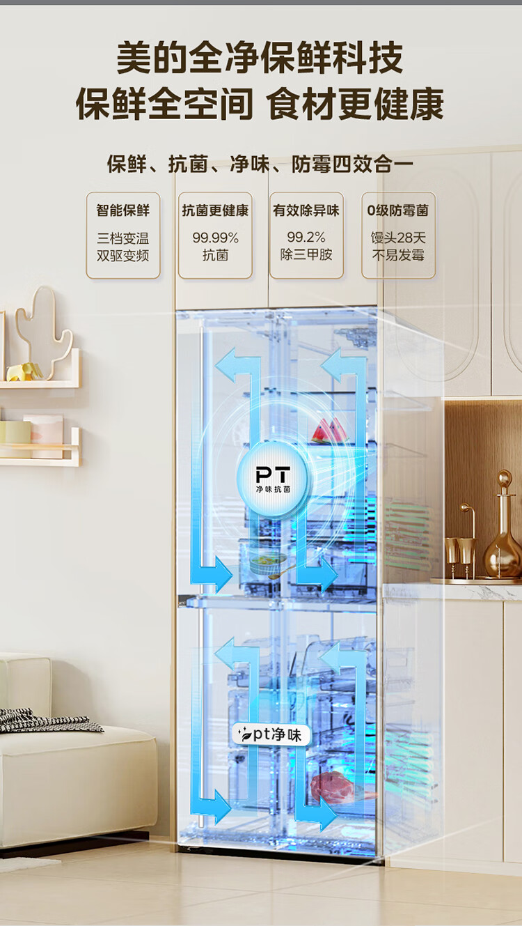 • 冷藏室除菌净味: 净味