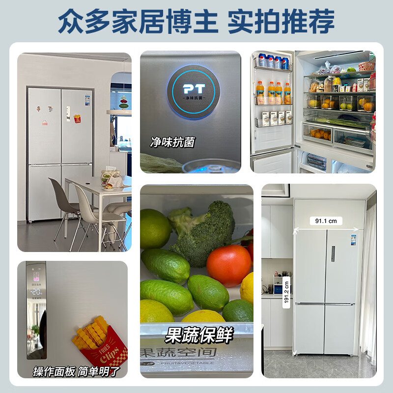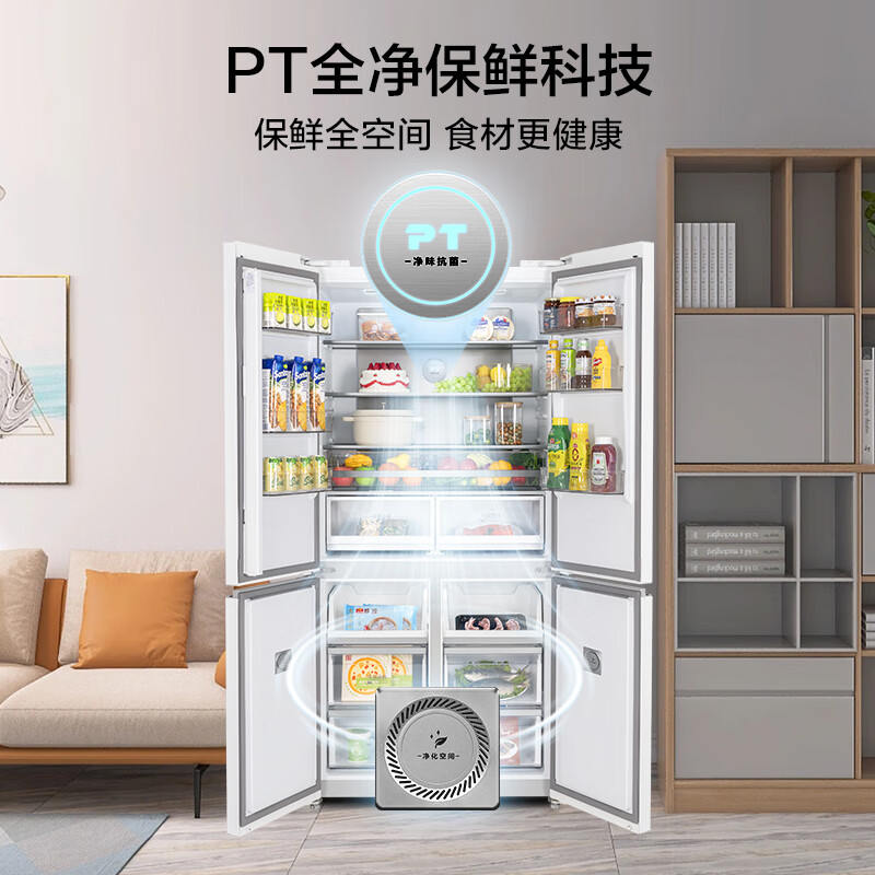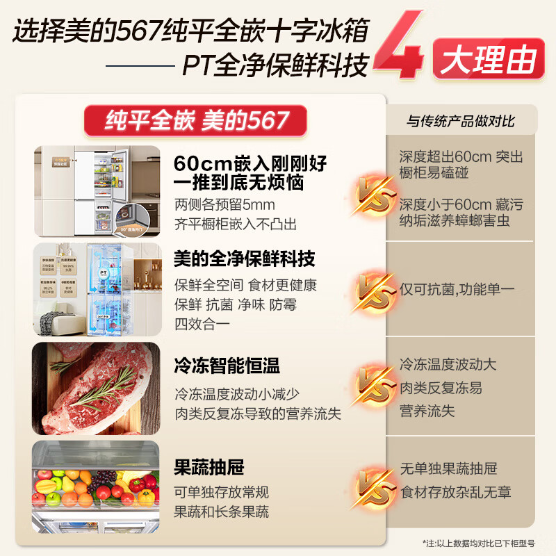 美的(Midea)M60系列567纯平全嵌十字双开四开门超薄嵌入底部散热一级变频风冷无霜大容量家用冰箱MR-567WUSPZE
