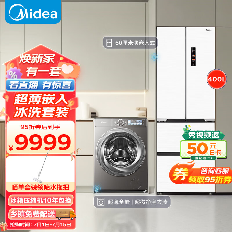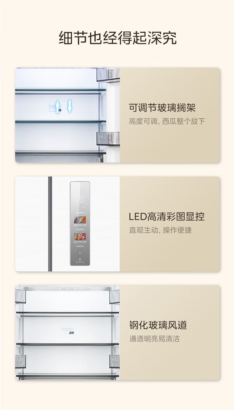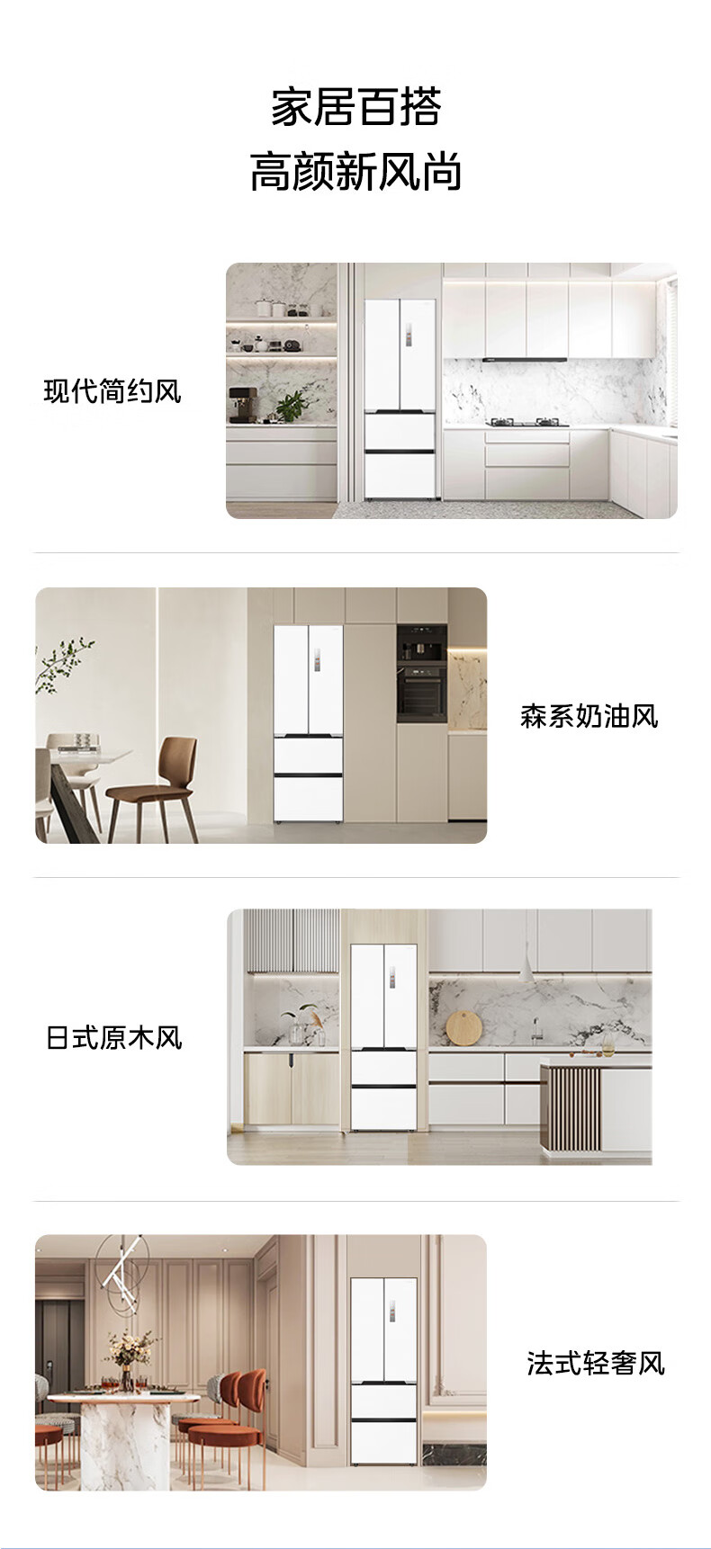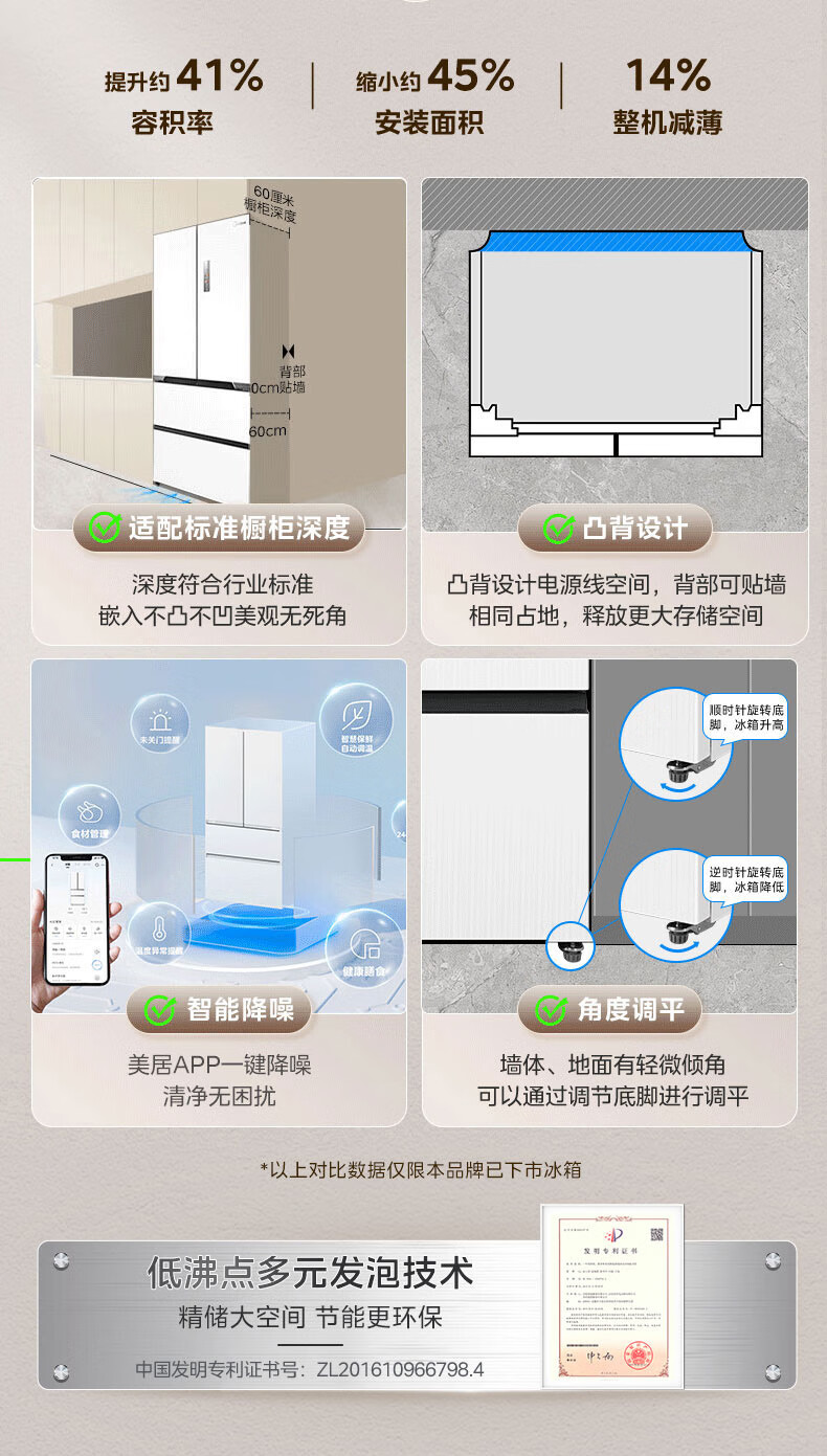 美的(Midea)M60大白豚421法式多门四开门超薄纯平全嵌一级变频除菌净味大容量家用电冰箱MR-421WUFPZE底部散热