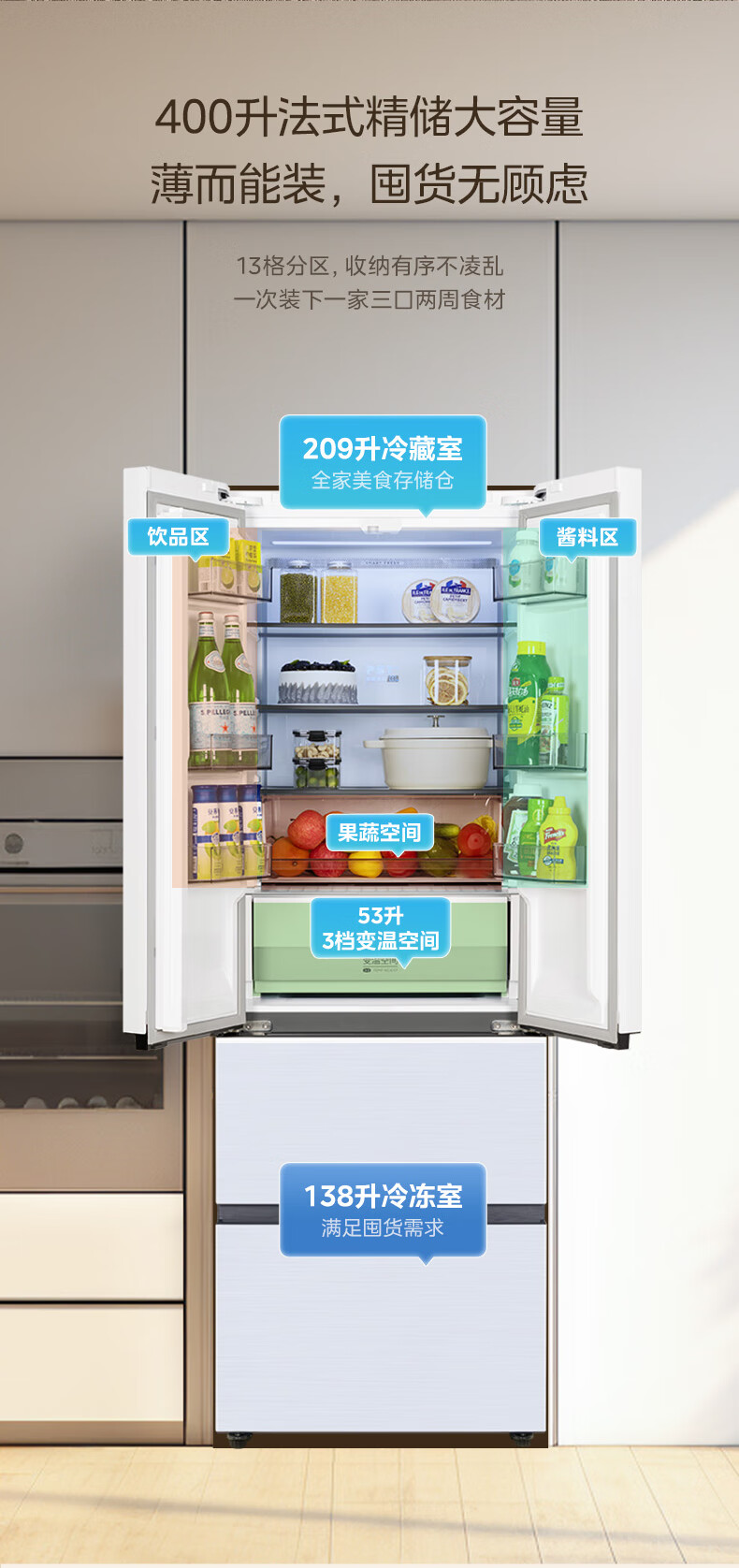 • 总容积: 400-449L