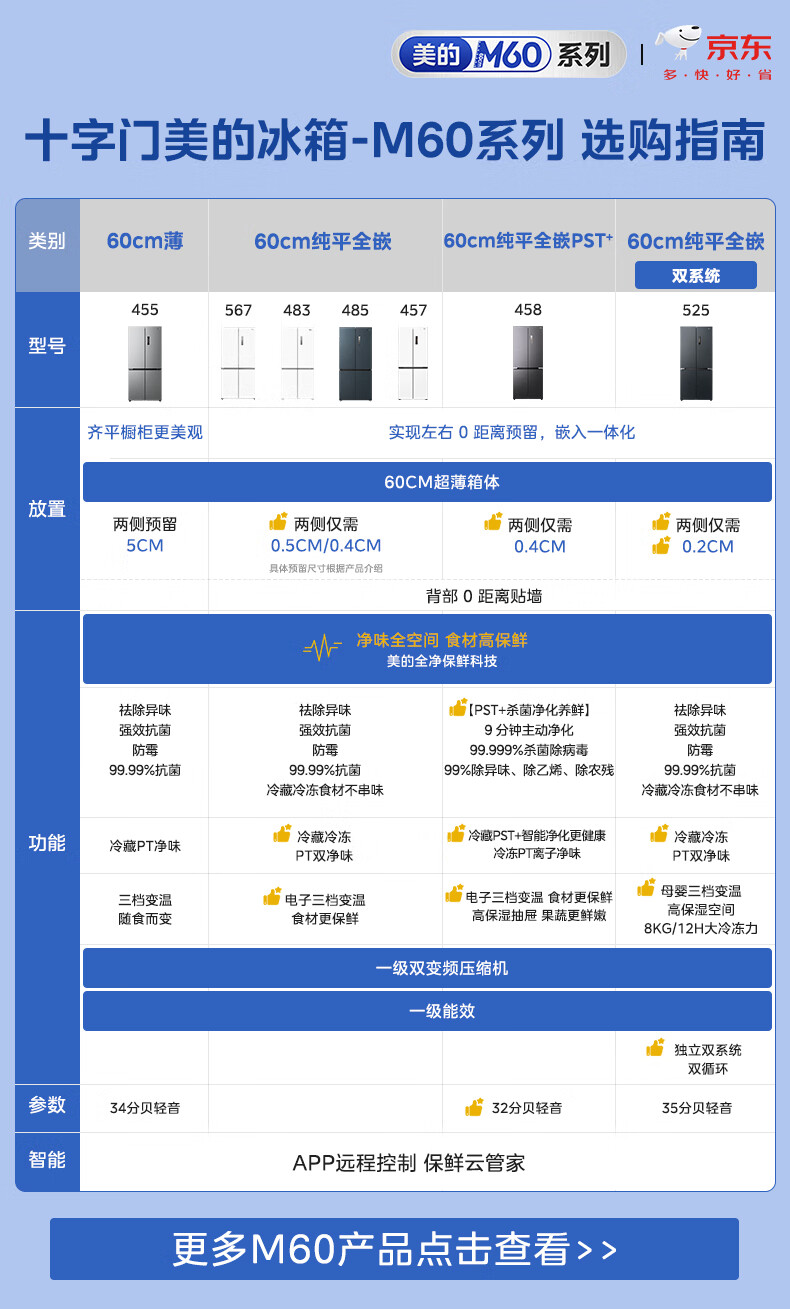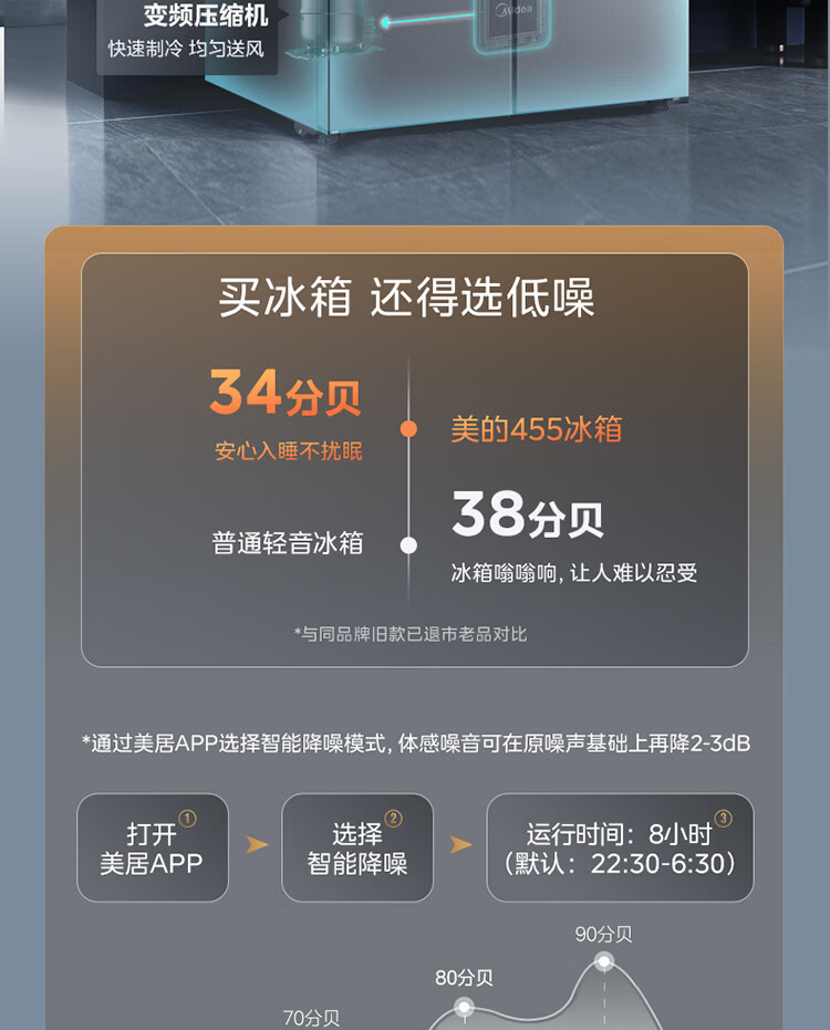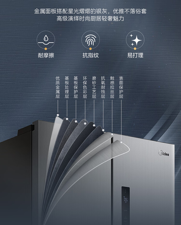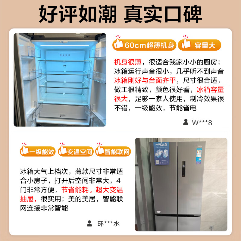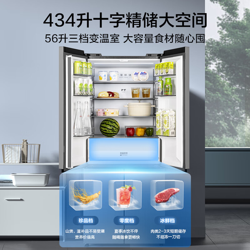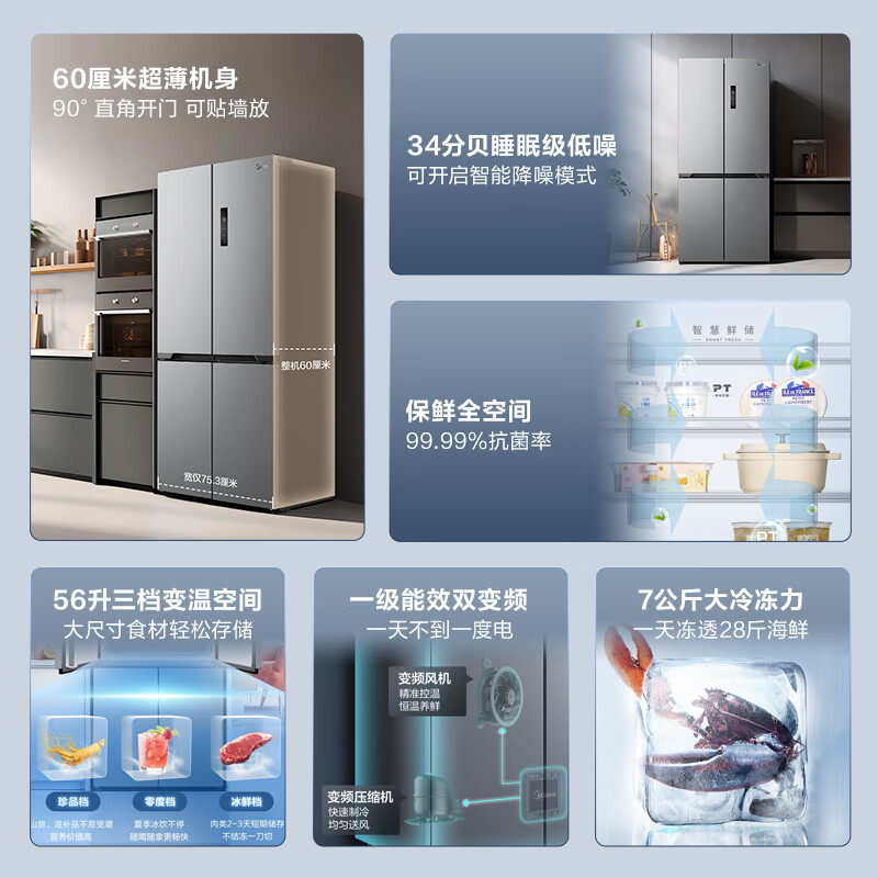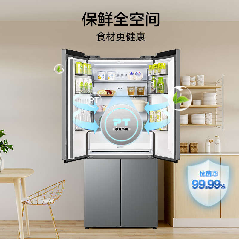 美的(Midea)M60系列60cm薄455流苏银十字双开门四开门一级变频风冷无霜智能家用大容量电冰箱MR-455WSPZE
