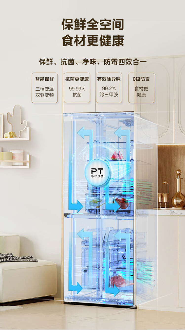 • 冷藏室除菌净味: 净味