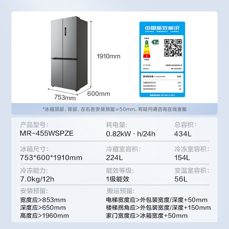 • 综合耗电量: 0.82kW·h/24h
