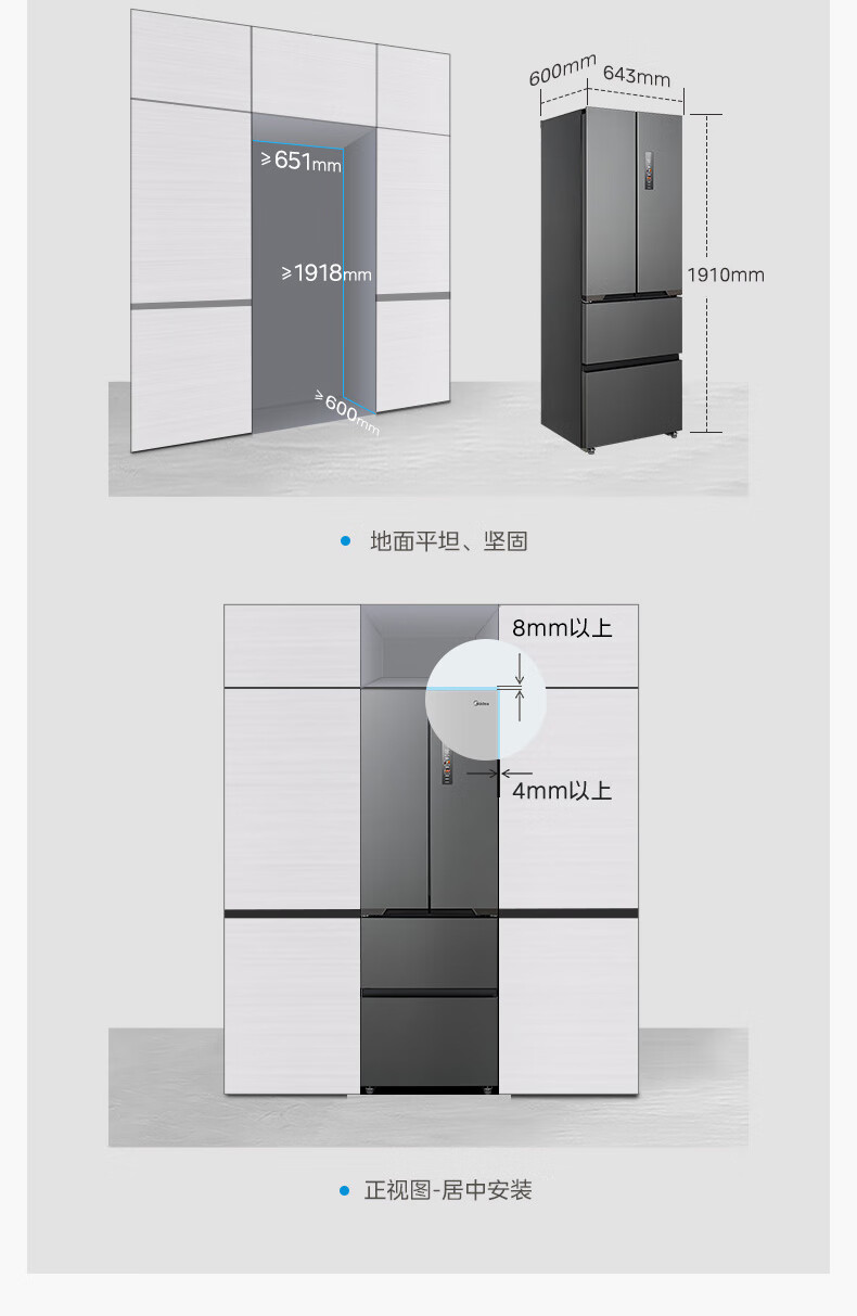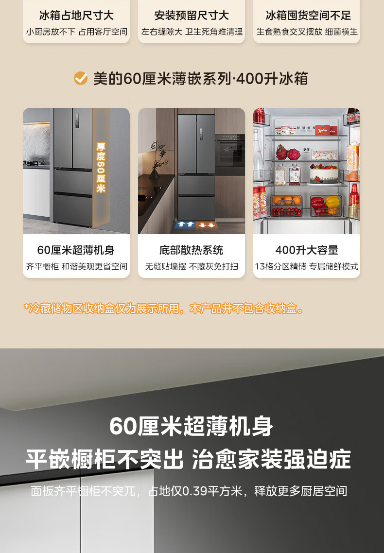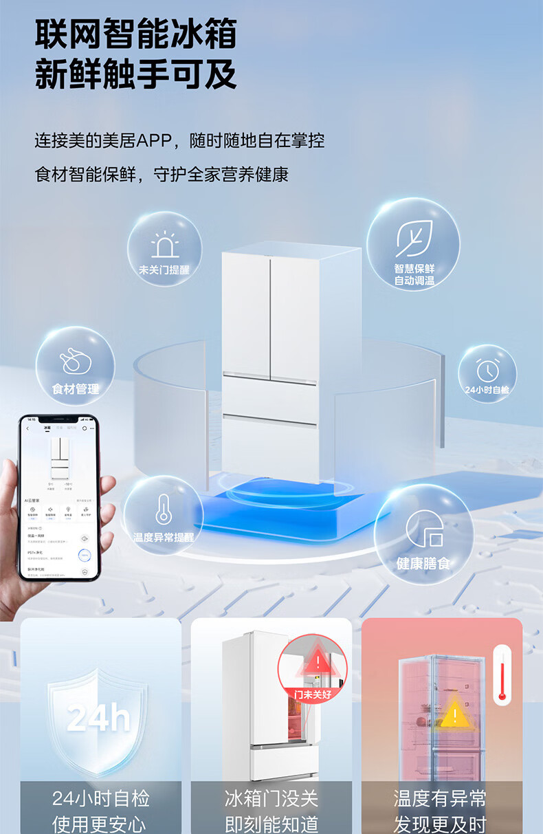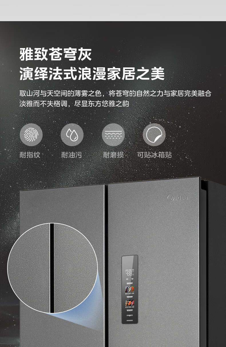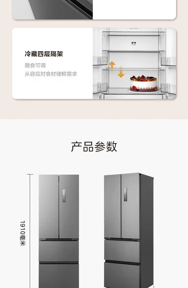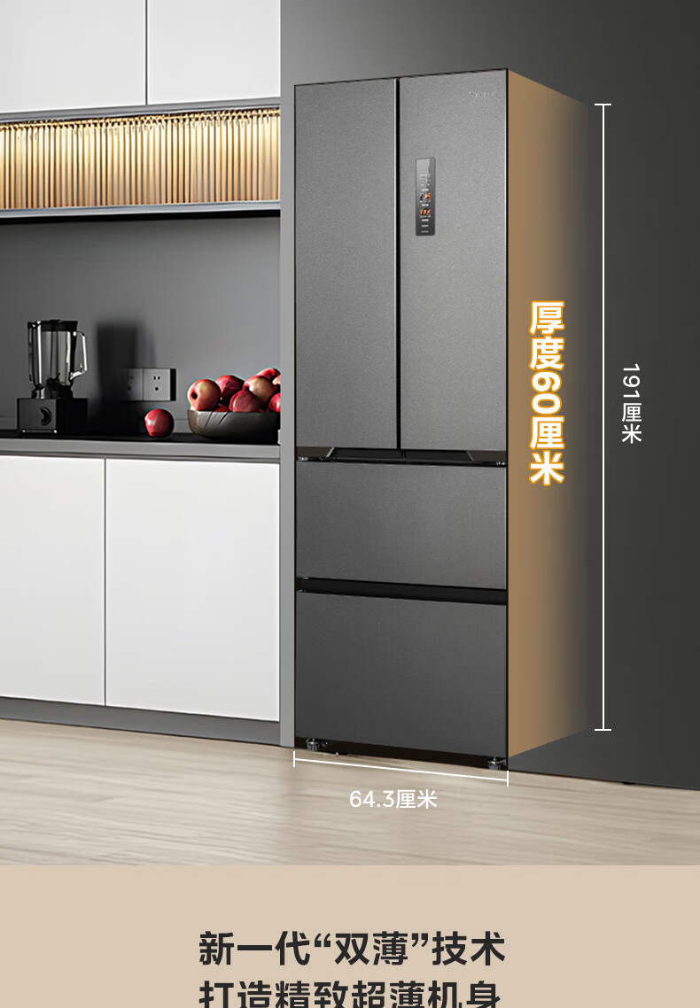 美的(Midea)M60系列419法式多门四开门电冰箱超薄纯平全嵌底部散热小户型大容量变频无霜家用智能MR-419WUFPZE