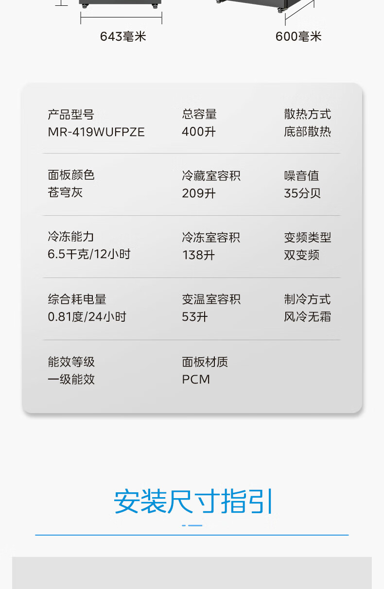 • 综合耗电量: 0.81kW·h/24h