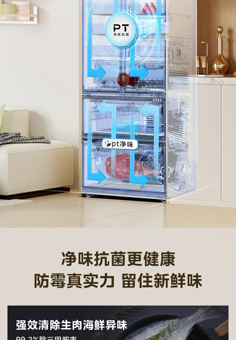 • 冷藏室除菌净味: 净味
