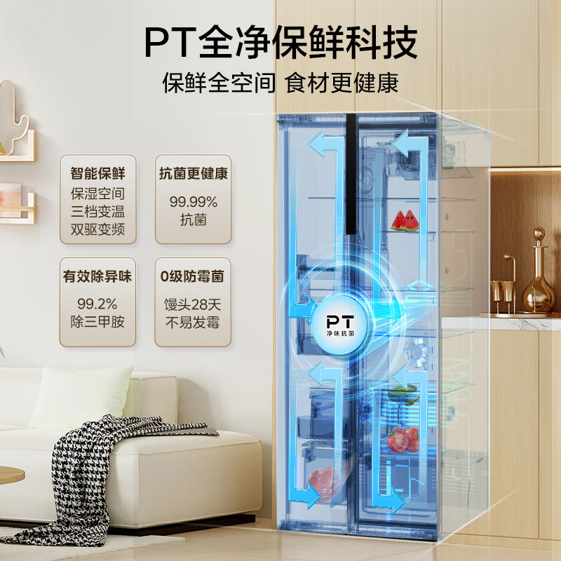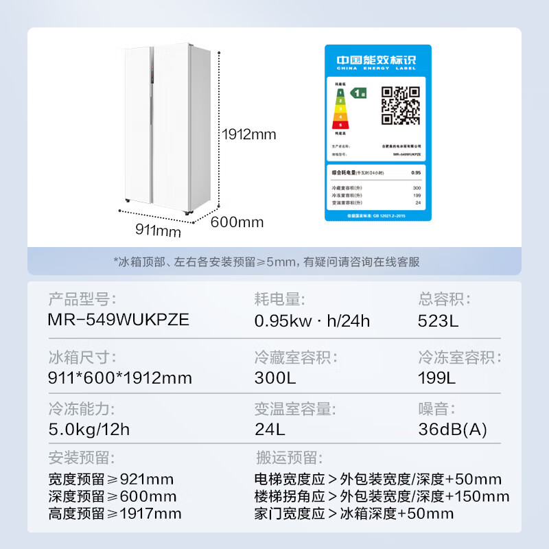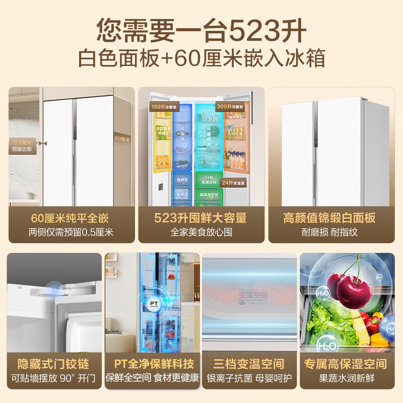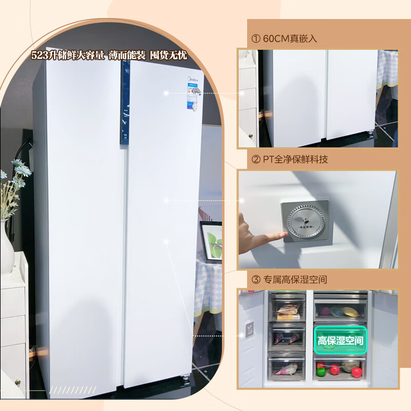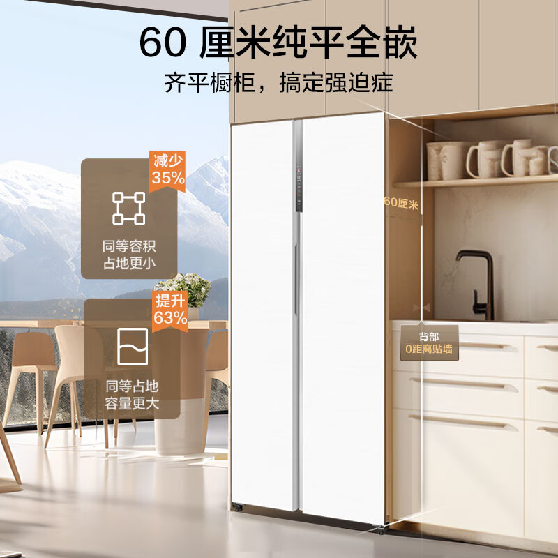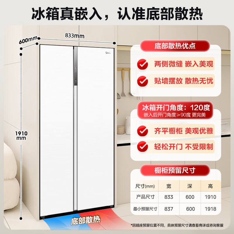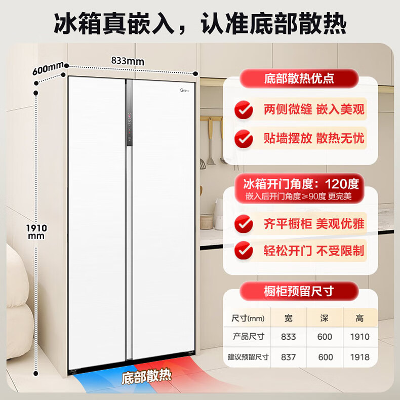 美的(Midea)M60系列60cm薄549对开门双开门超薄纯平全嵌式家用智能电冰箱变频一级能效MR-549WUKPZE底部散热