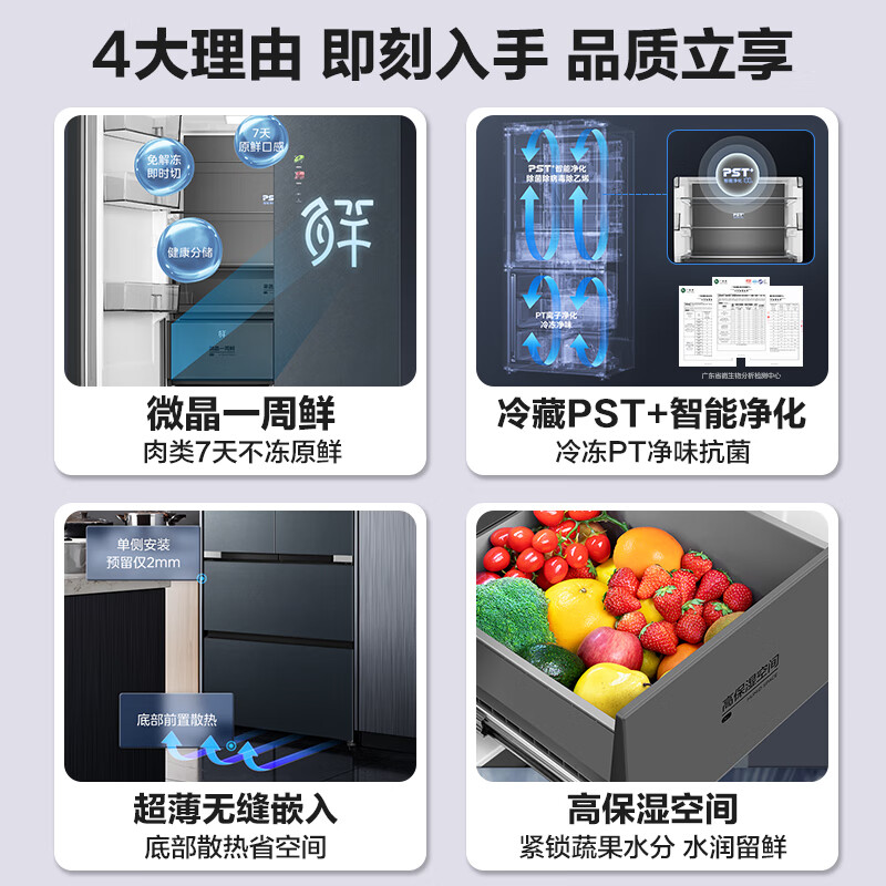 美的(Midea)微晶一周鲜512升变频一级法式多门冰箱大容量净味除菌无霜玻璃门BCD-512WFGPZM(E)【专】