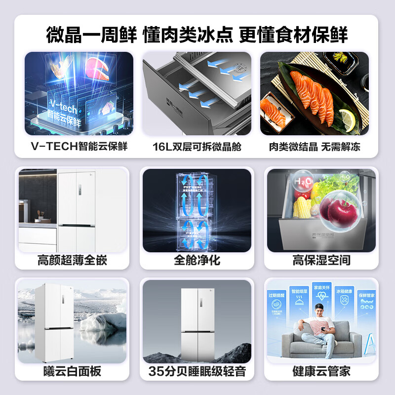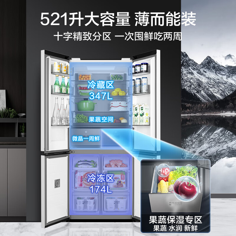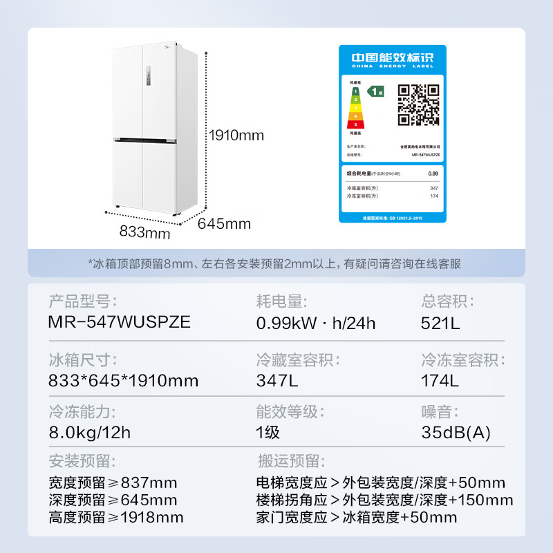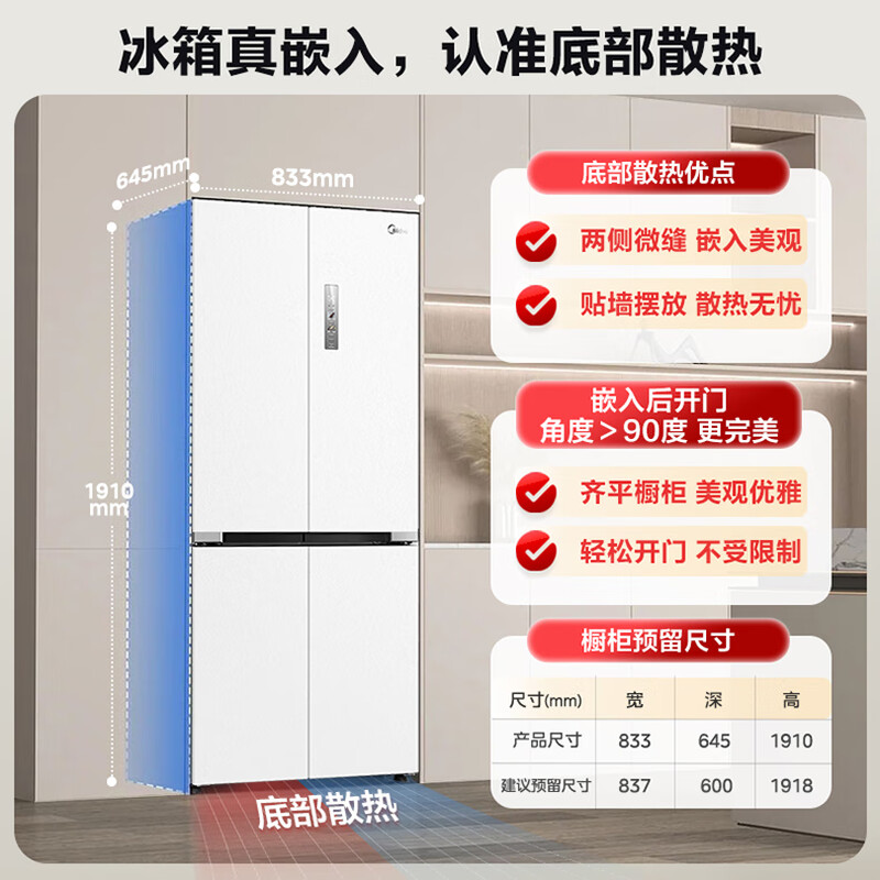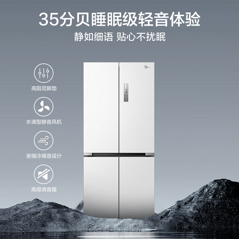 美的(Midea)微晶系列冰箱547白色口感保鲜净味无缝全嵌十字四开门超薄大容量一级变频家用智能MR-547WUSPZE