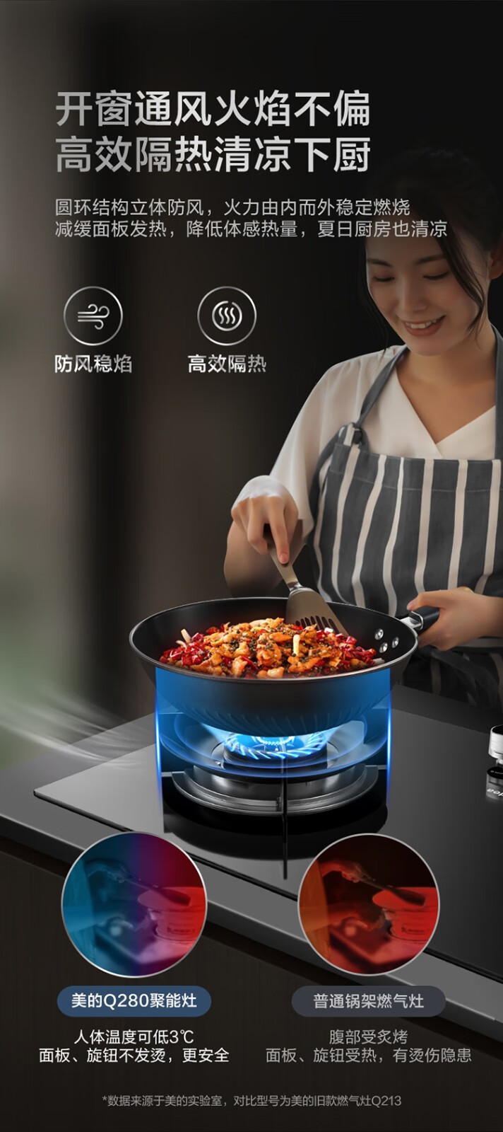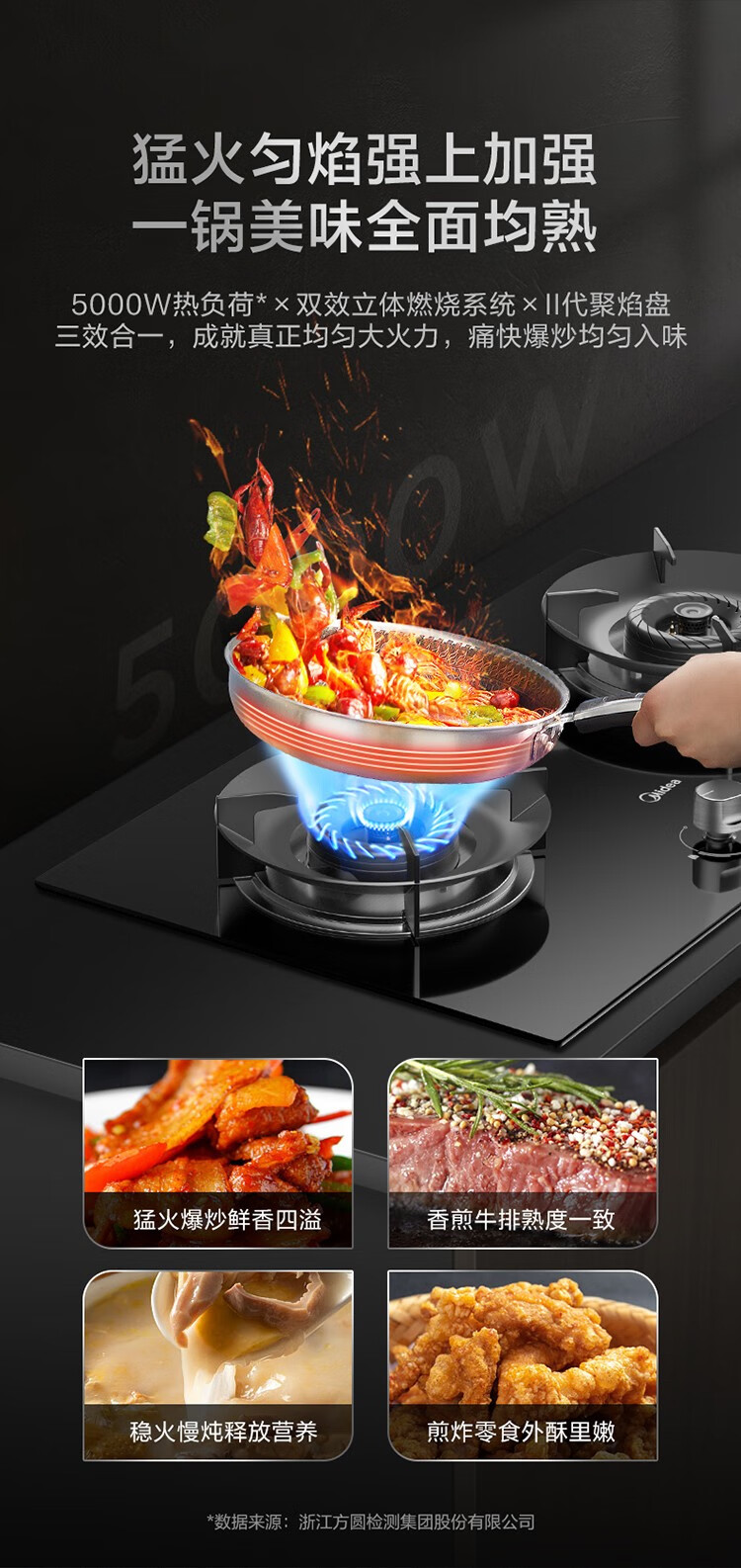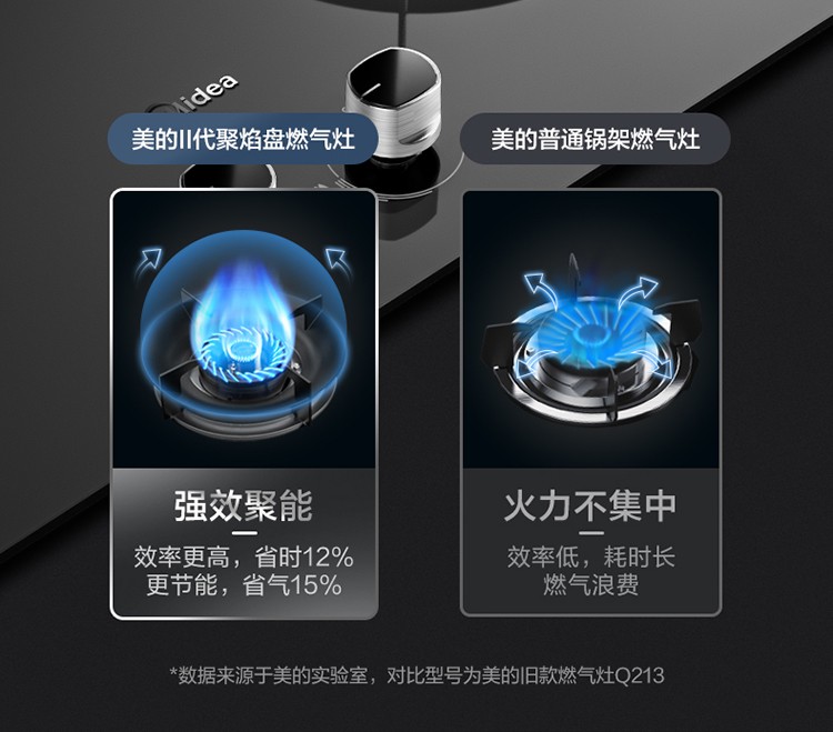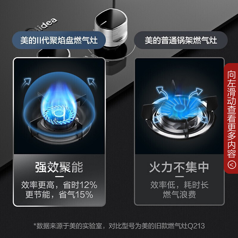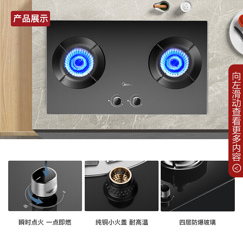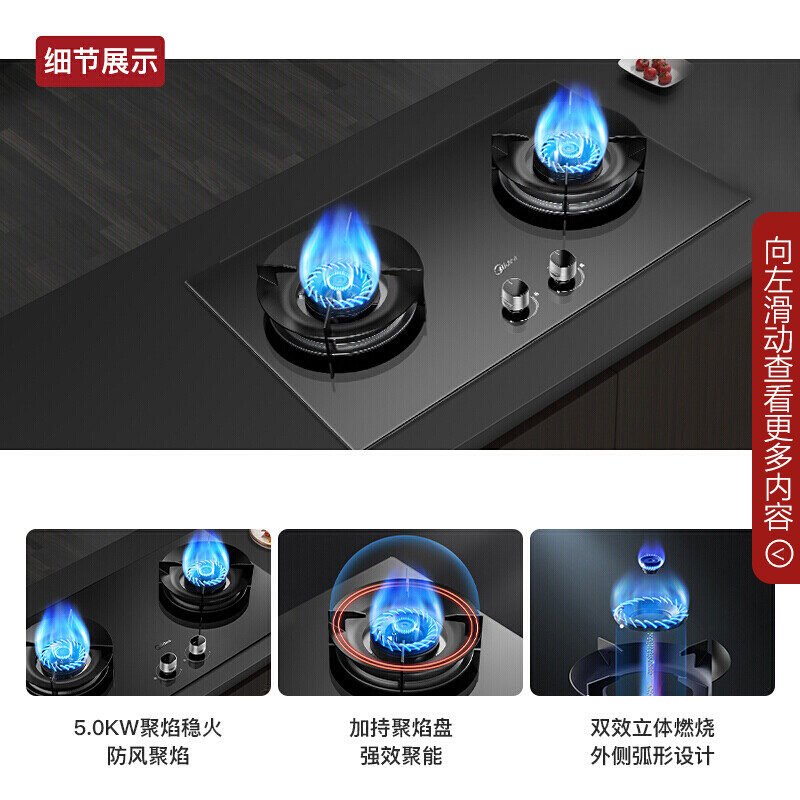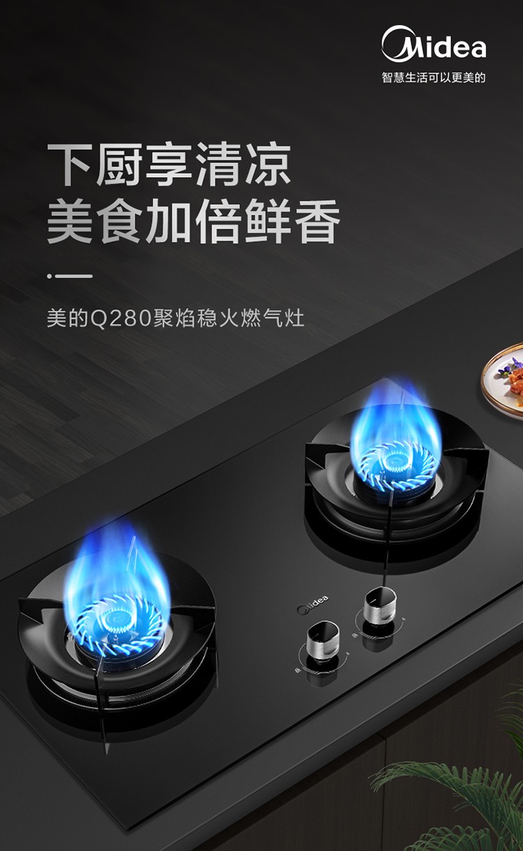 美的(Midea)燃气灶家用液化气5.0kw火力聚能省气猛火灶双灶打火灶炉具台式嵌入式两用大面板罐装煤气灶 【聚能省气】Q280