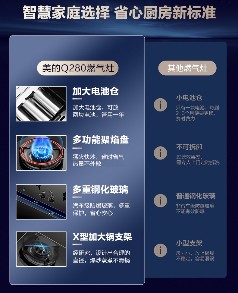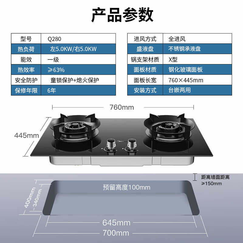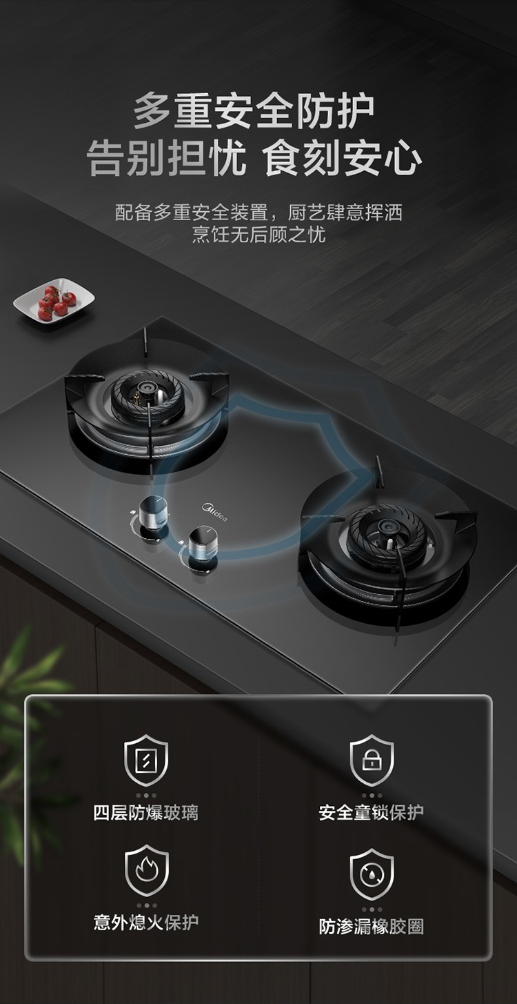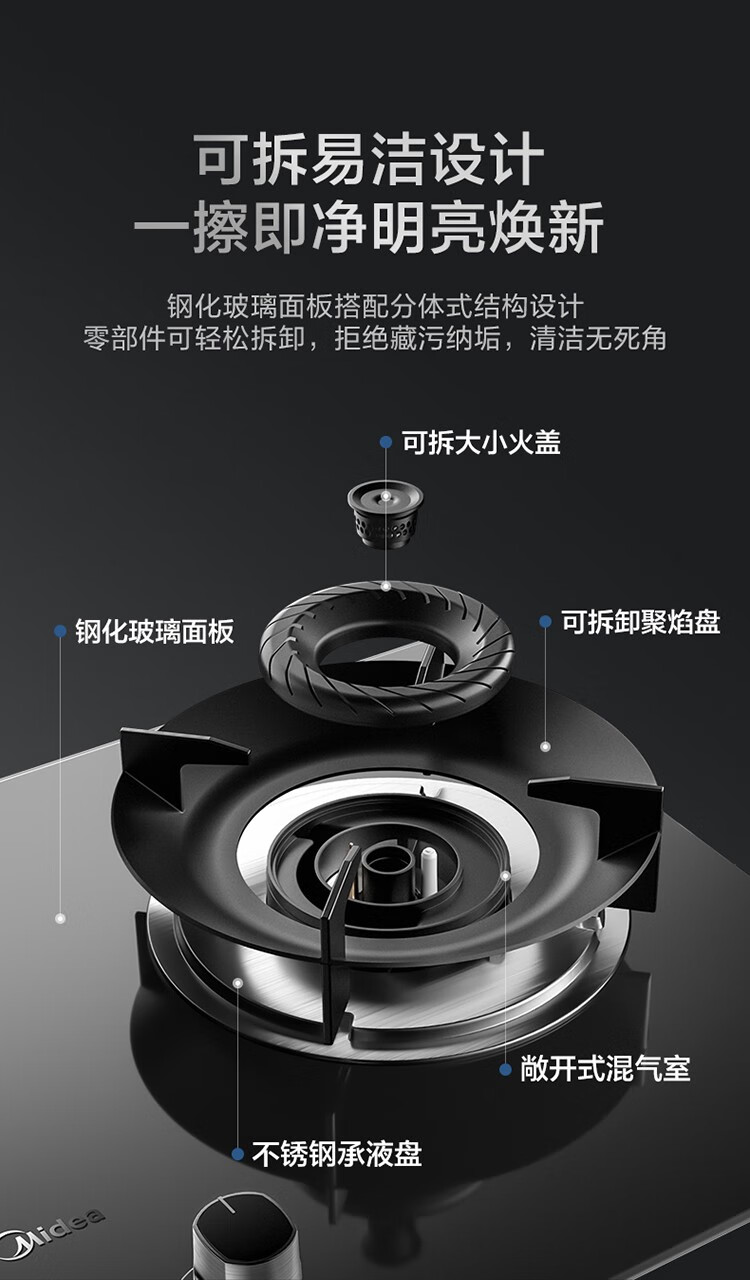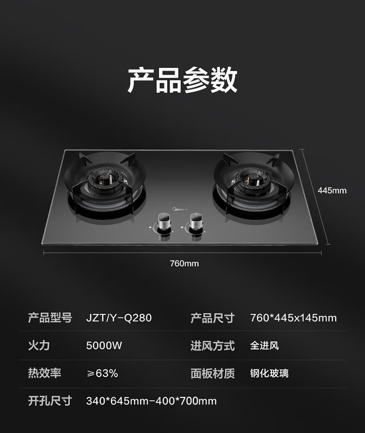 • 灶具面板材质: 钢化玻璃