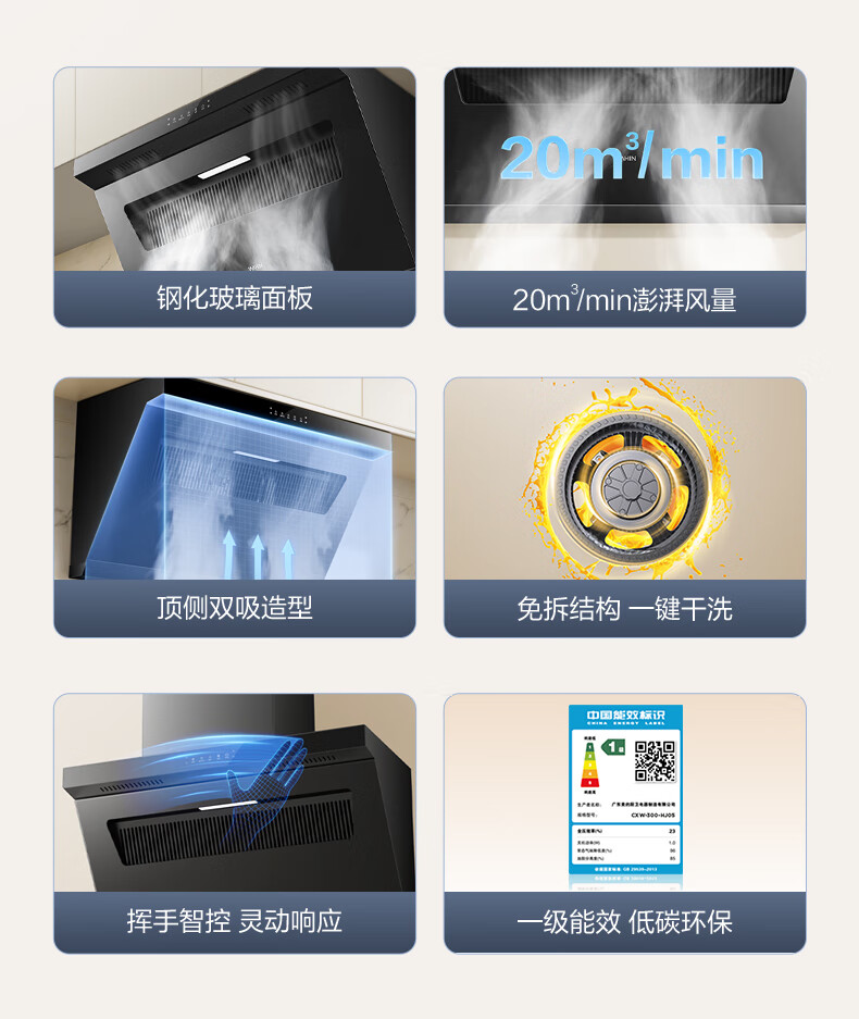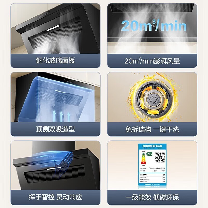华凌抽油烟机家用20立方大吸力 免拆智能干洗顶侧双吸油烟机挥手智控自清洗烟机 华凌油烟机