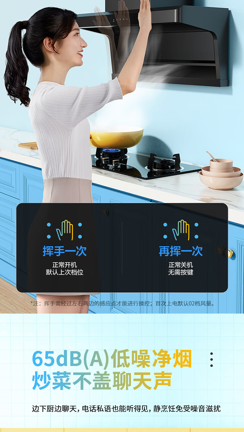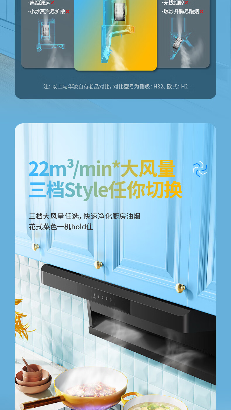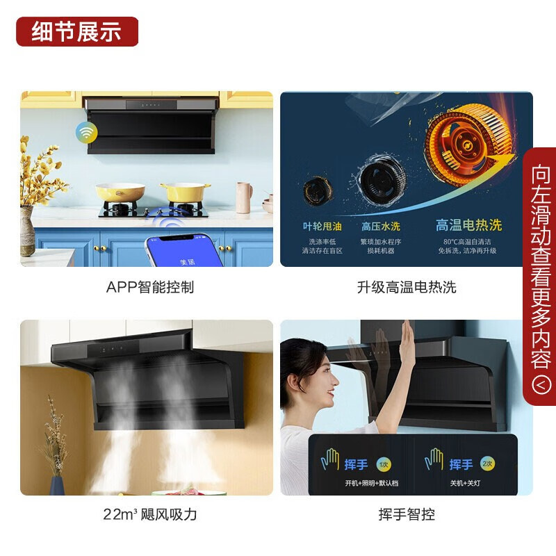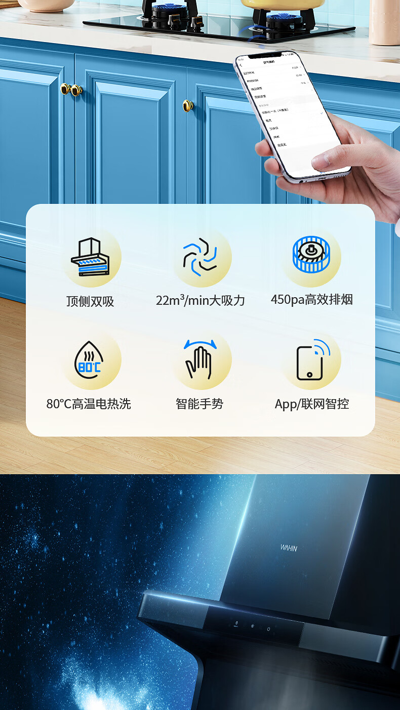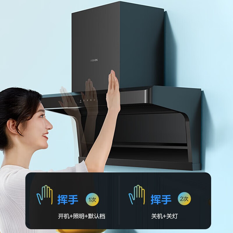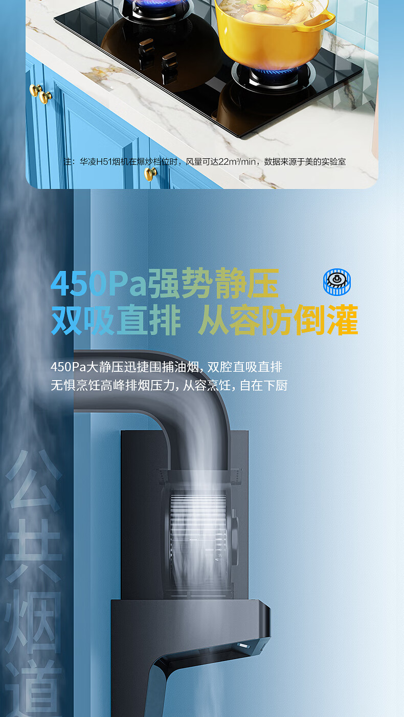 华凌H51抽油烟机7字型顶侧双吸22立方爆炒大吸力家用吸油烟机高温电热洗挥手感应智控星引力 华凌油烟机H51