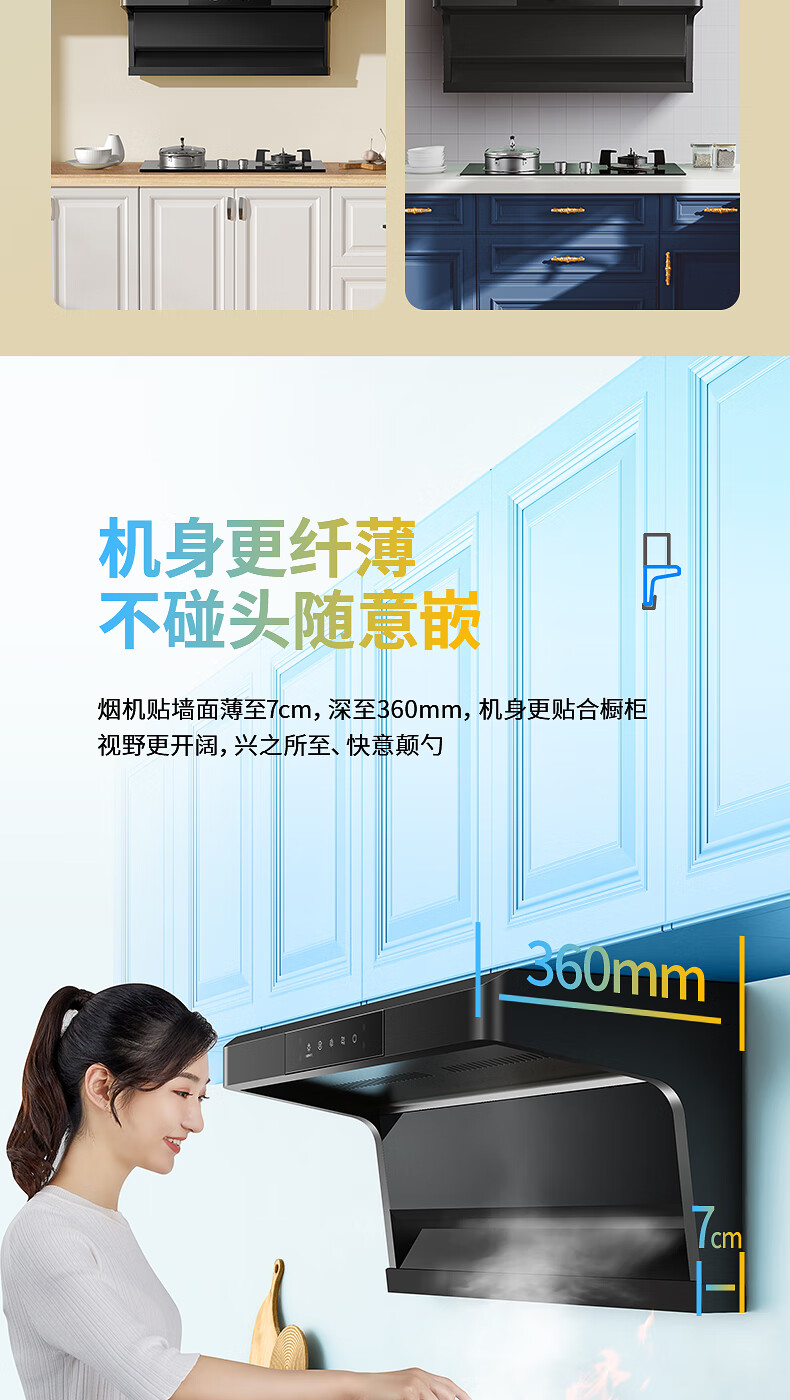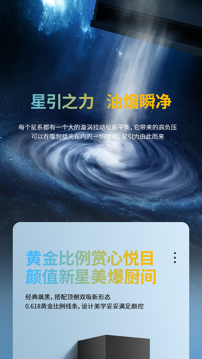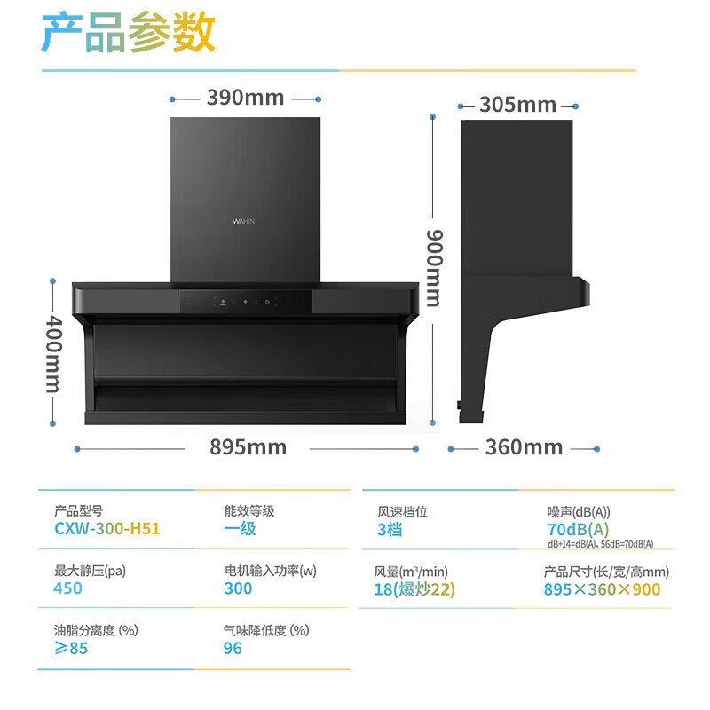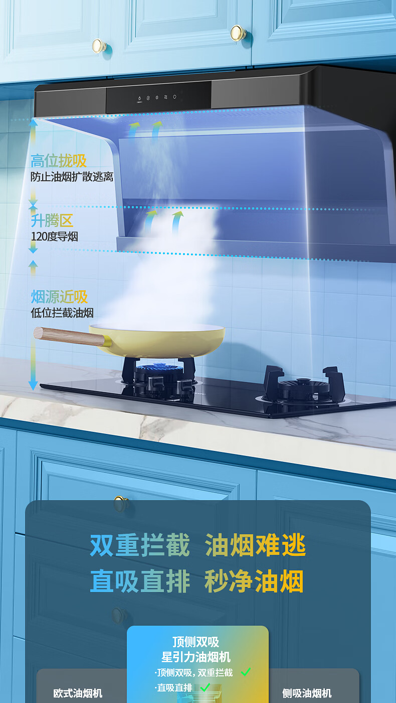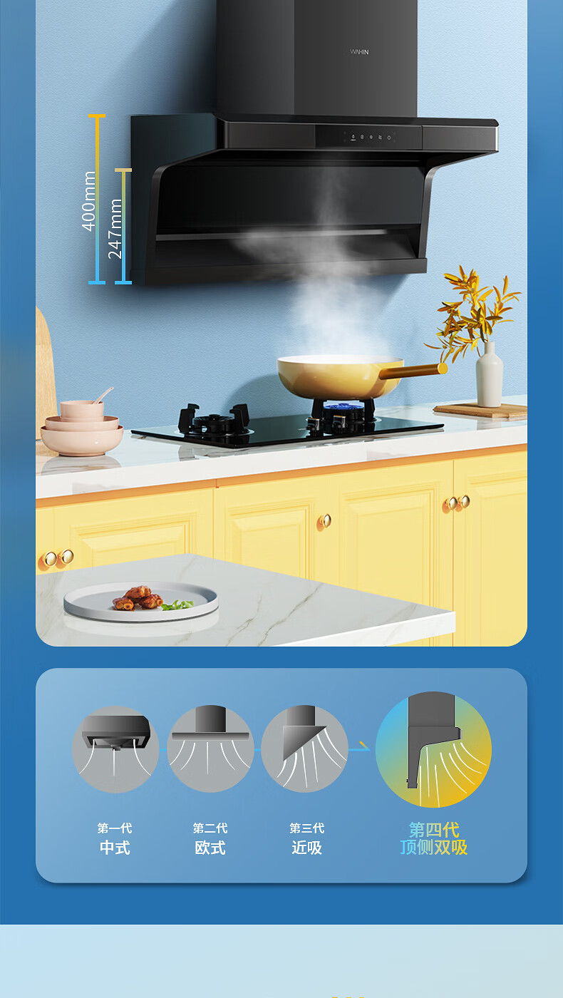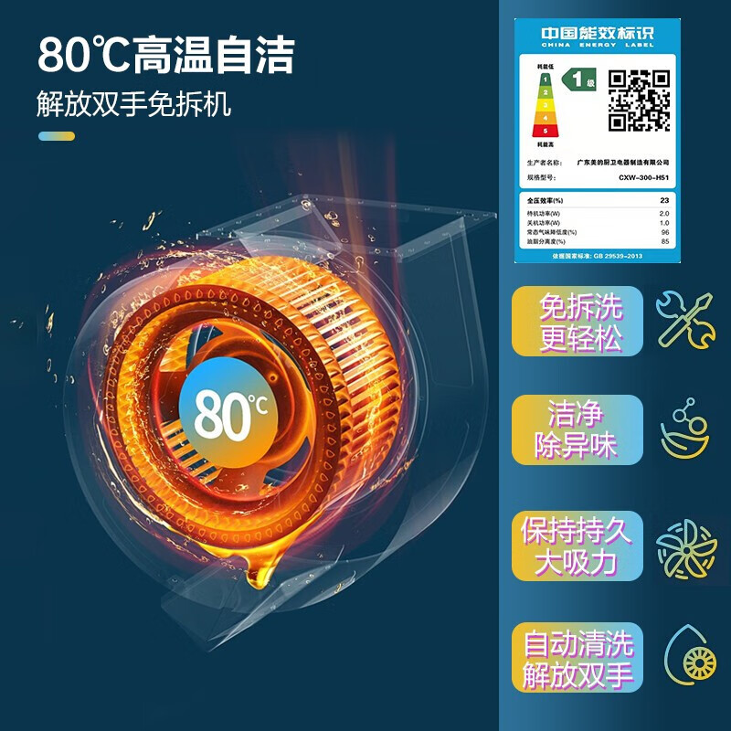 华凌H51抽油烟机7字型顶侧双吸22立方爆炒大吸力家用吸油烟机高温电热洗挥手感应智控星引力 华凌油烟机H51
