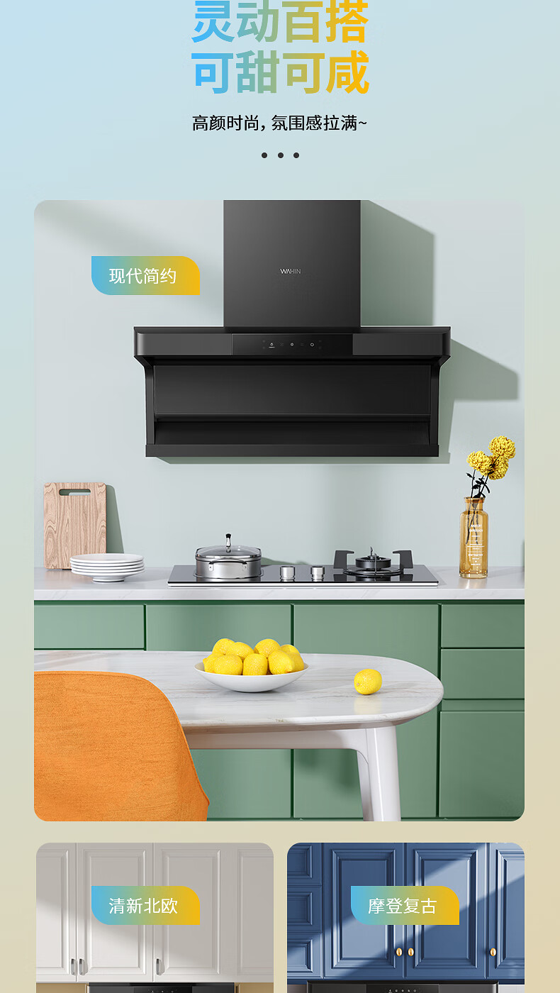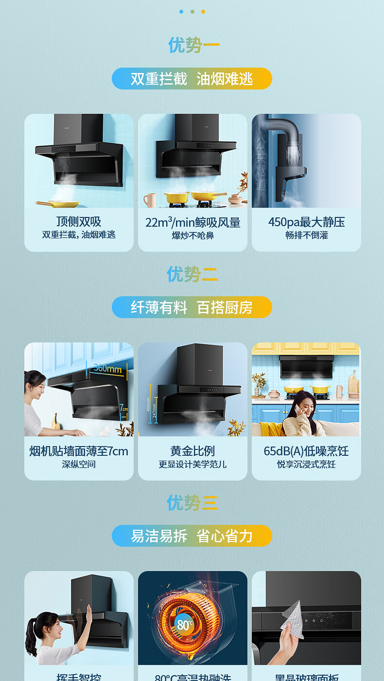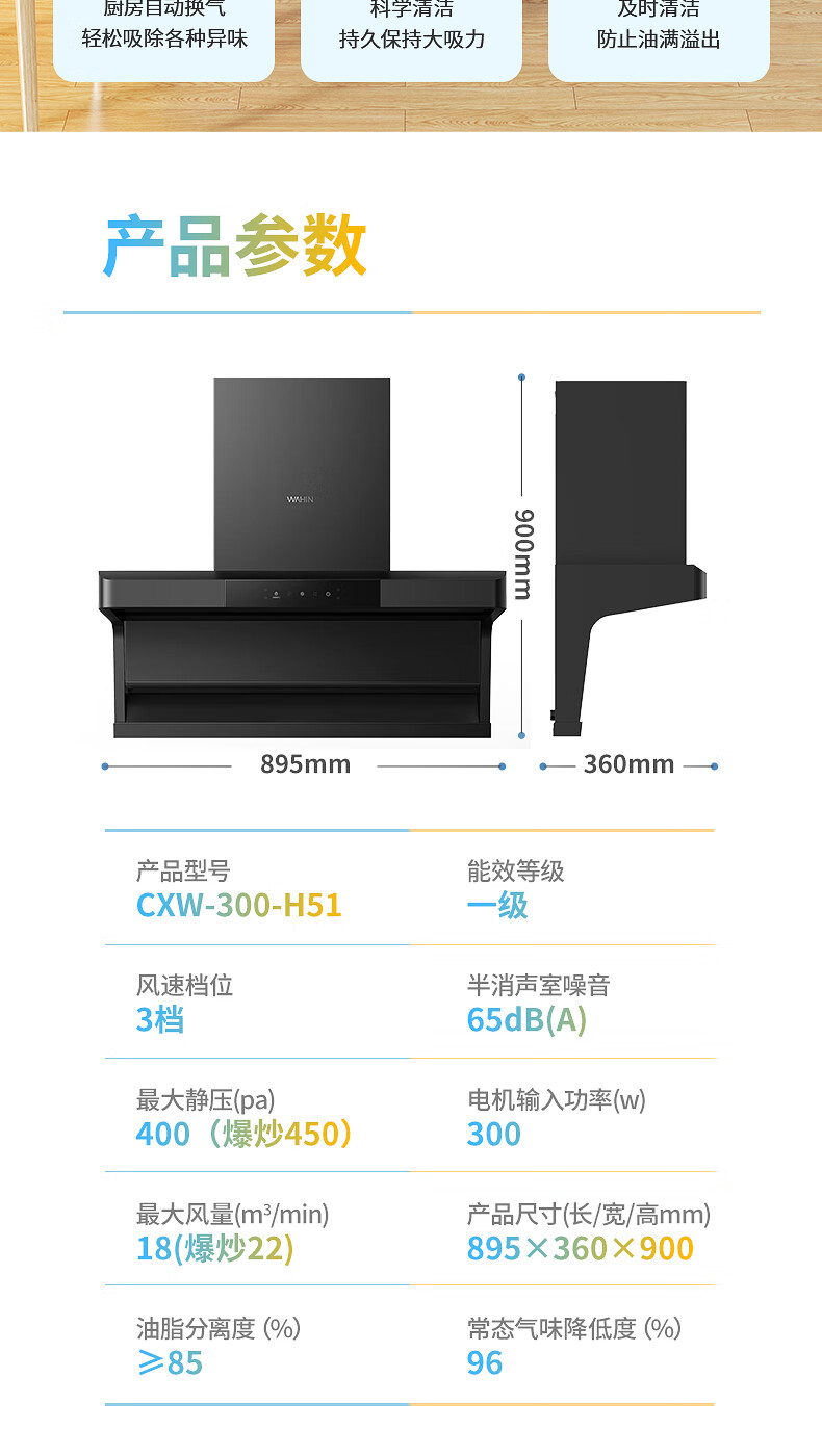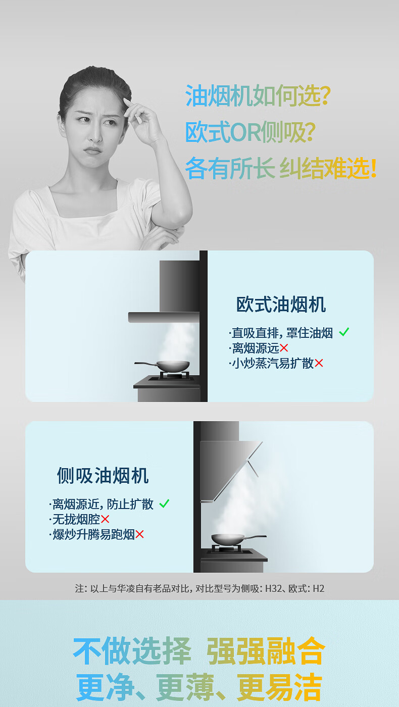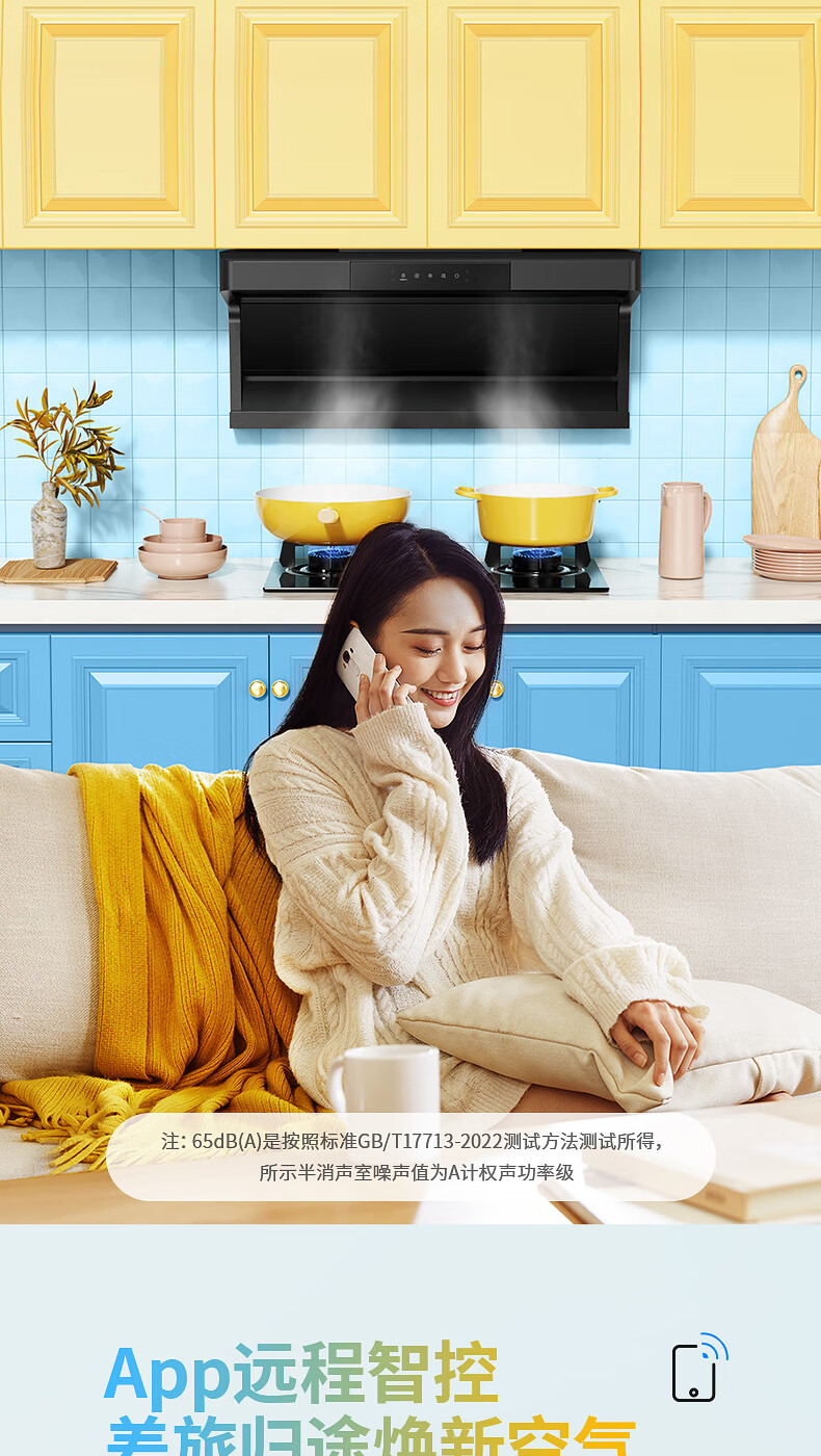 华凌H51抽油烟机7字型顶侧双吸22立方爆炒大吸力家用吸油烟机高温电热洗挥手感应智控星引力 华凌油烟机H51