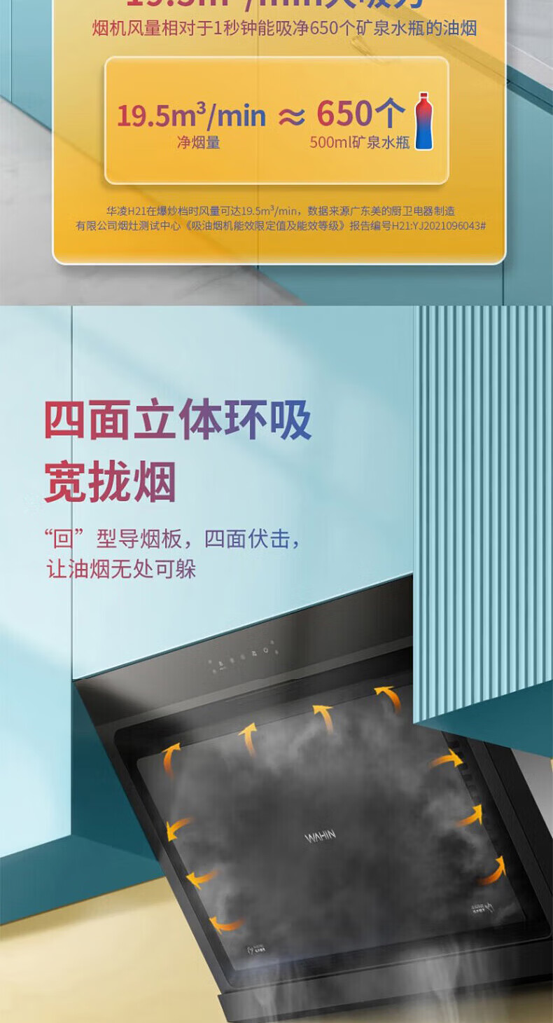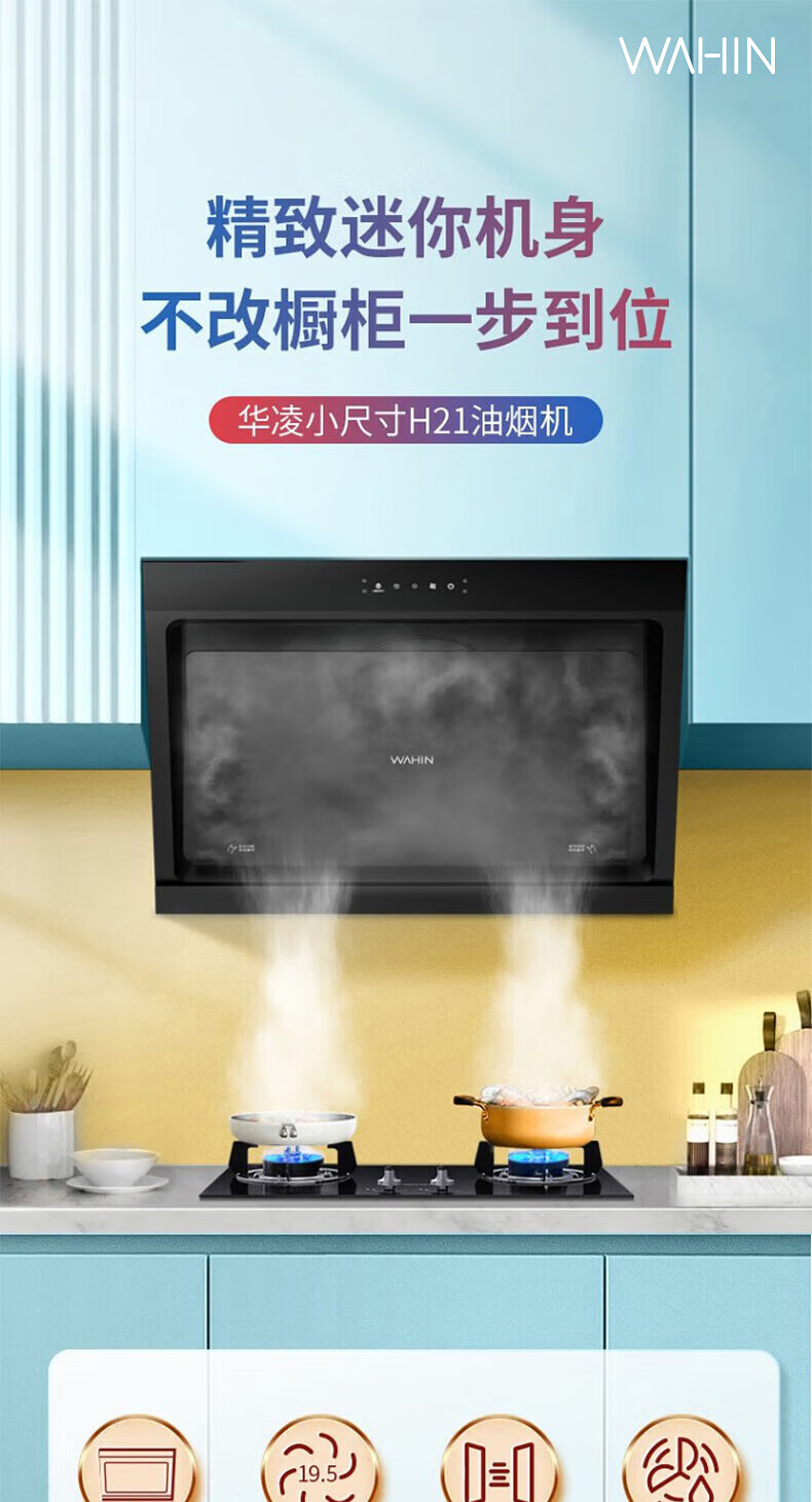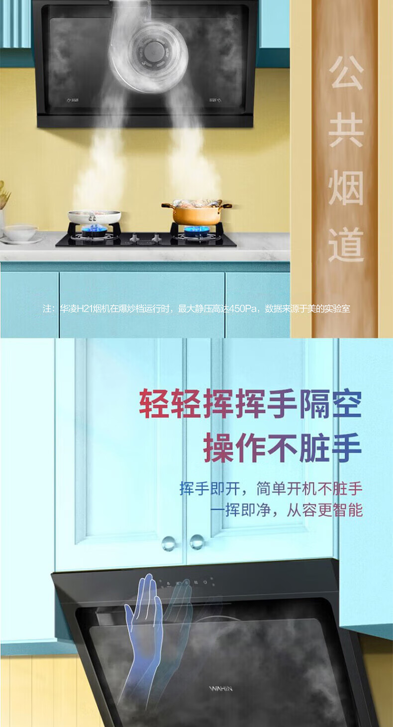 华凌抽吸油烟机家用 挥手智控自清洗 750小尺寸小户型侧吸式大吸力排烟机H21 华凌油烟机