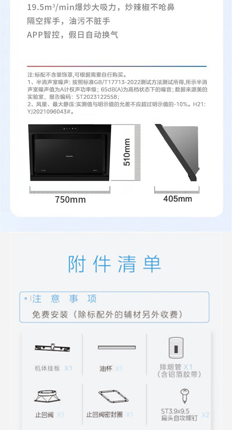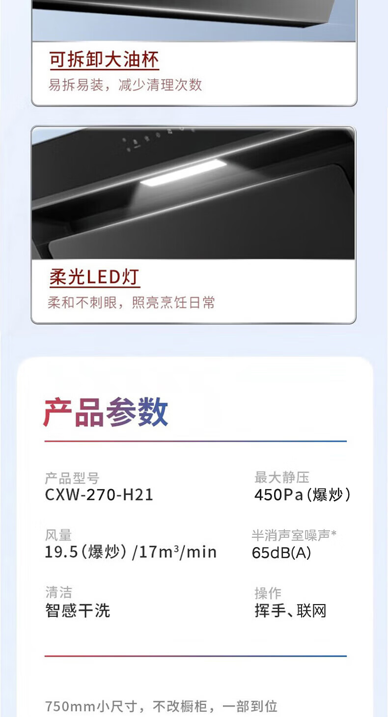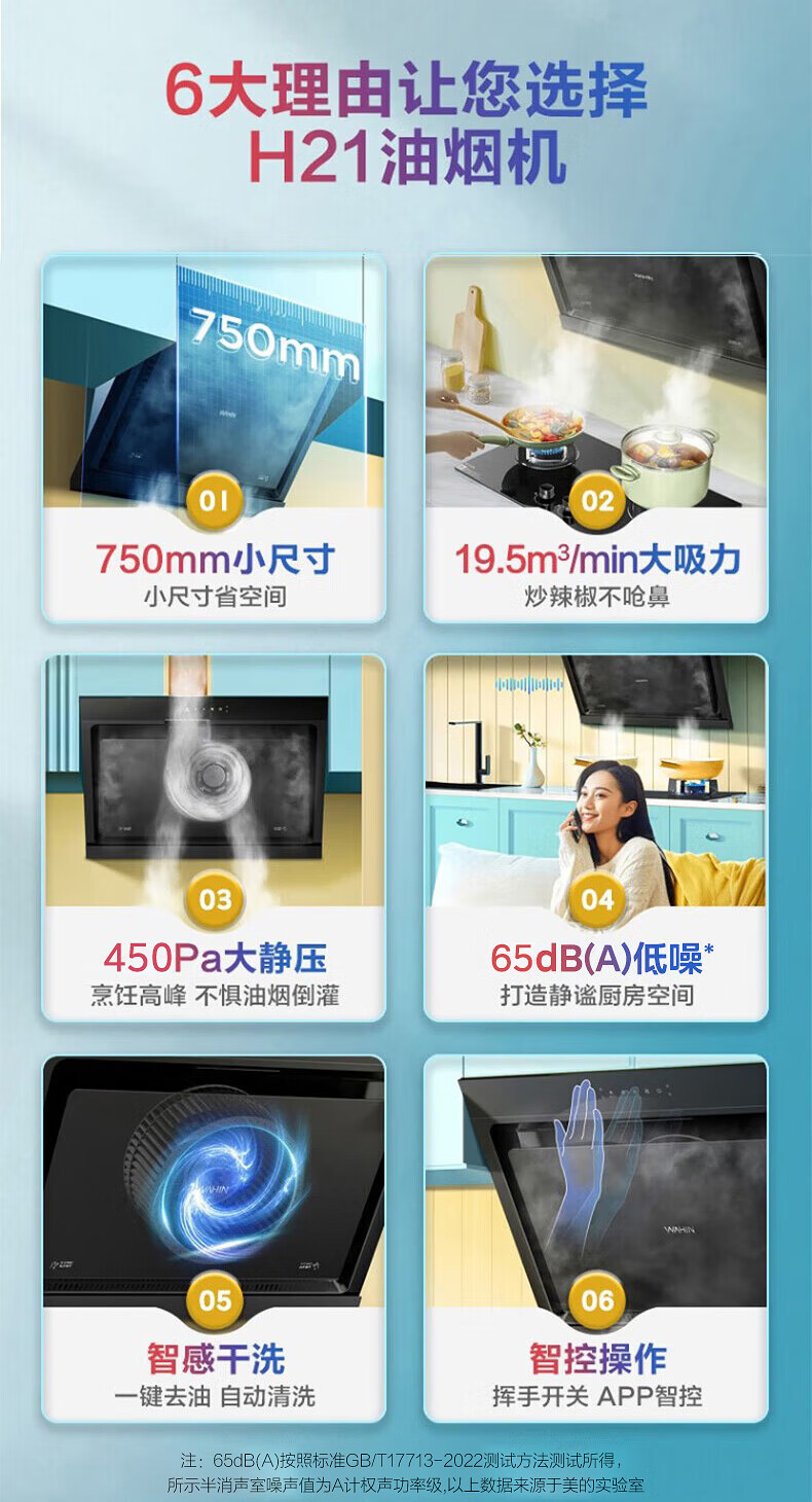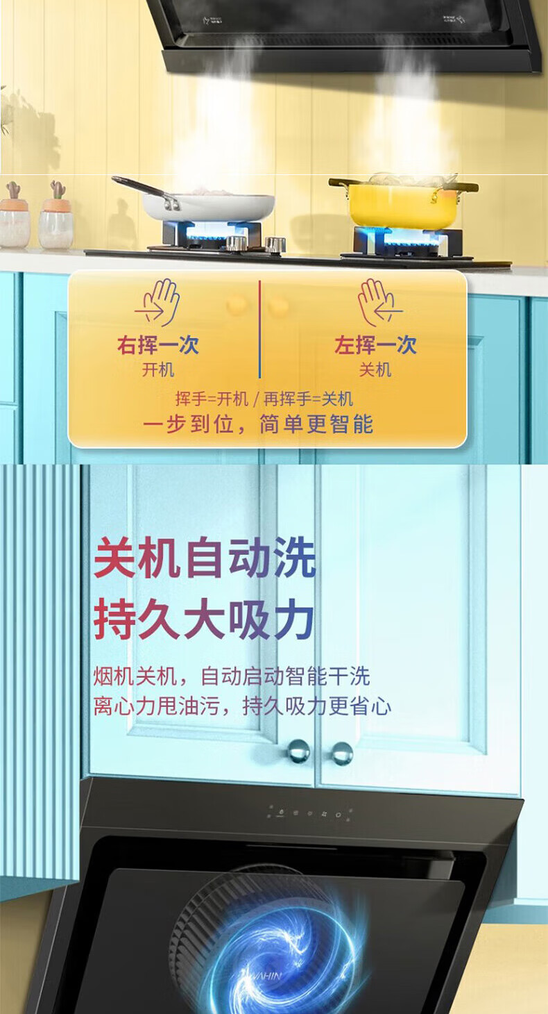 华凌抽吸油烟机家用 挥手智控自清洗 750小尺寸小户型侧吸式大吸力排烟机H21 华凌油烟机