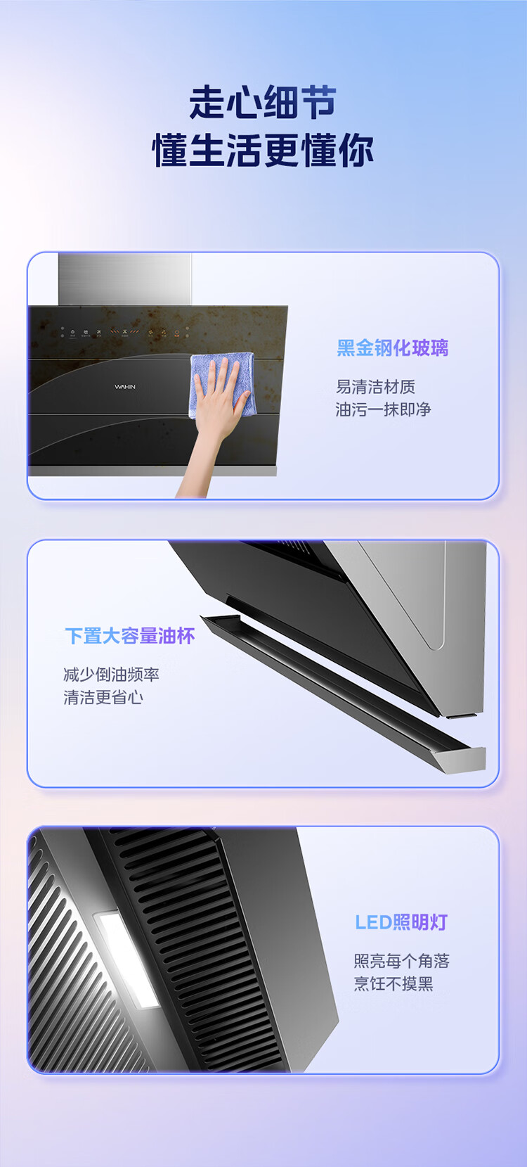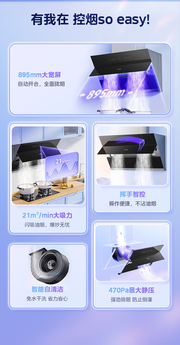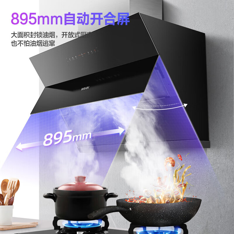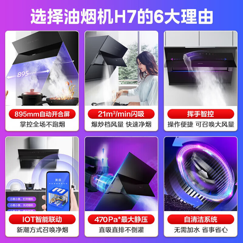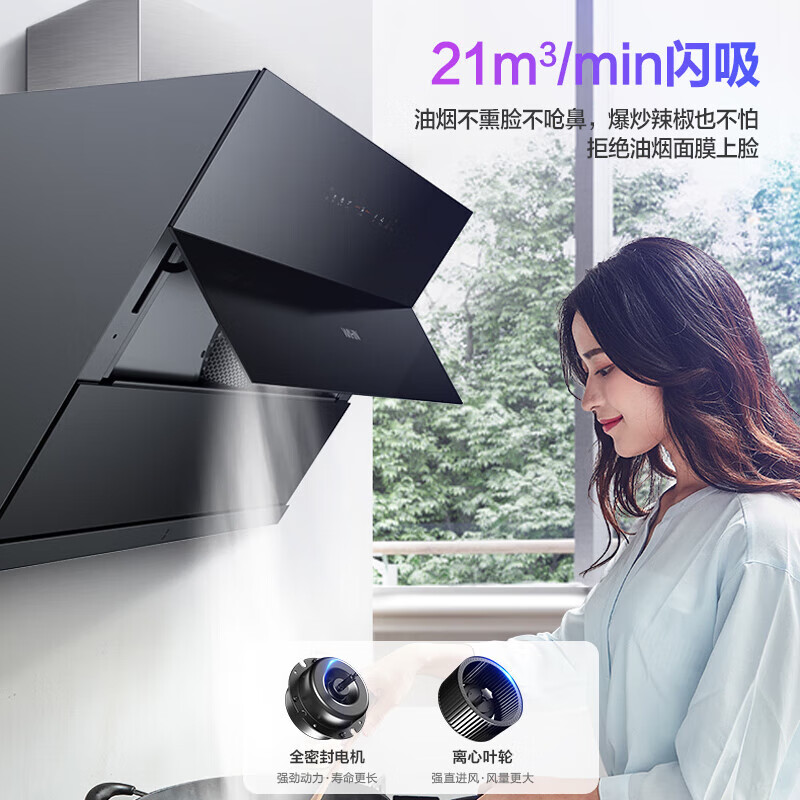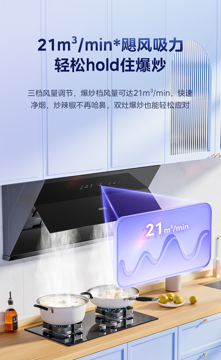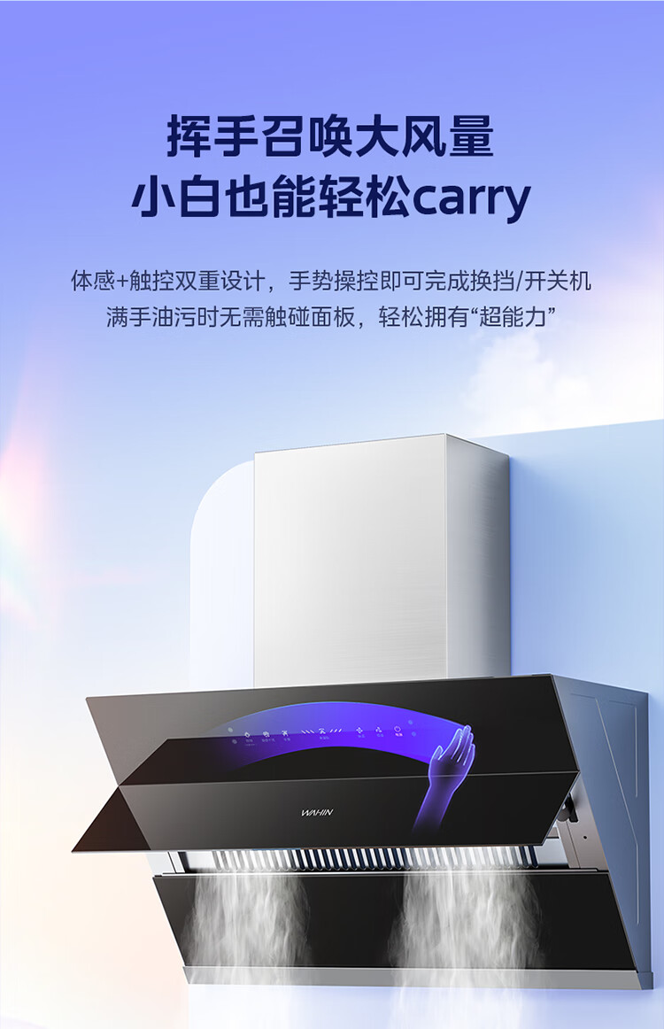 华凌吸油烟机 挥手智控 自动开合面板 侧吸式家用厨房油烟机 21立方爆炒大吸力自清洗抽油烟机 H7 华凌系列-21立方大吸力挥手油烟机