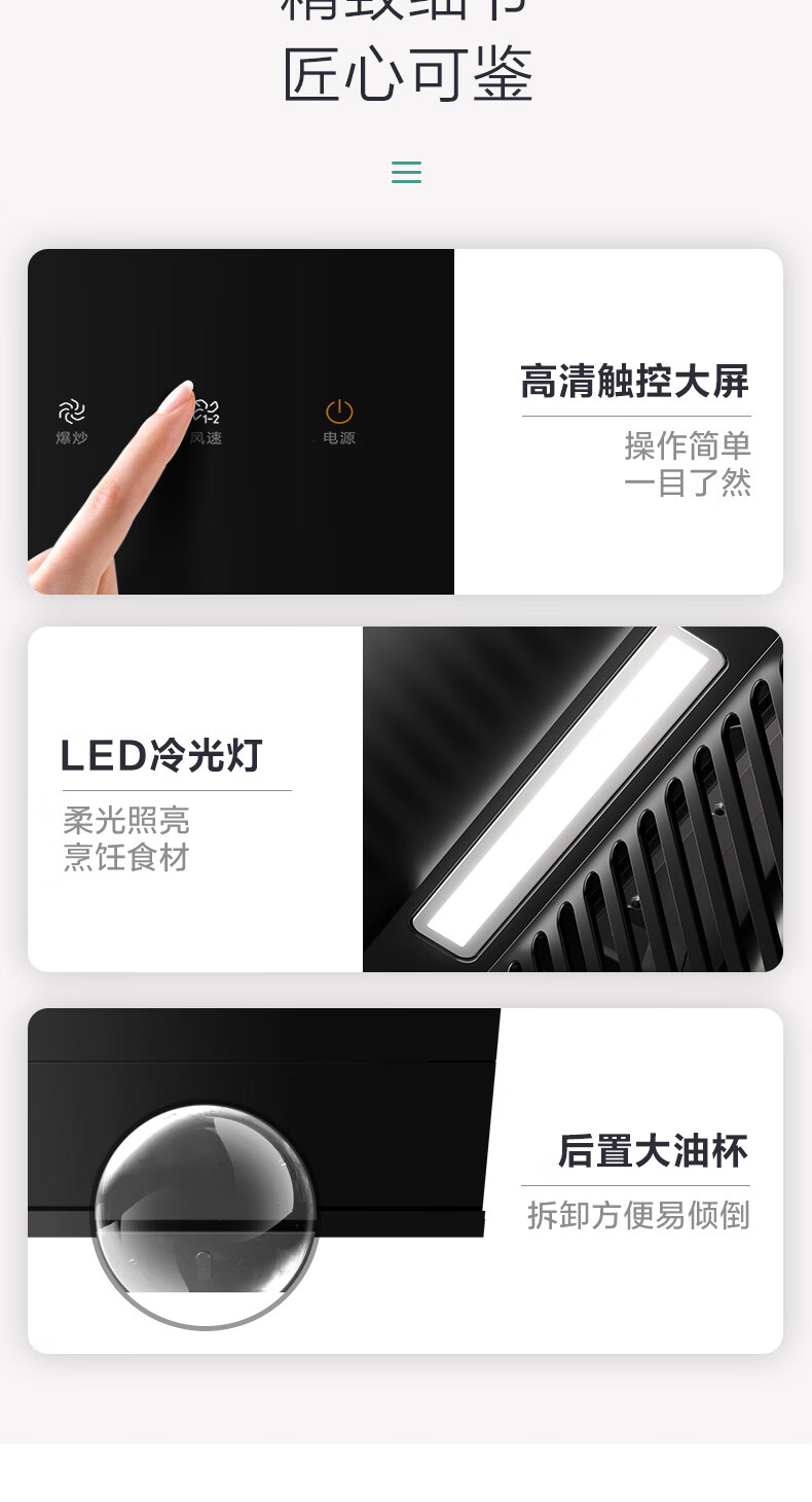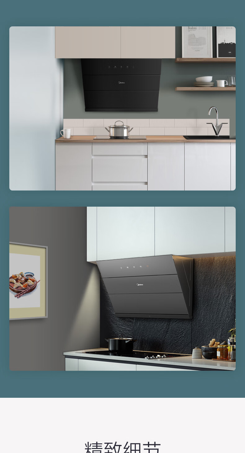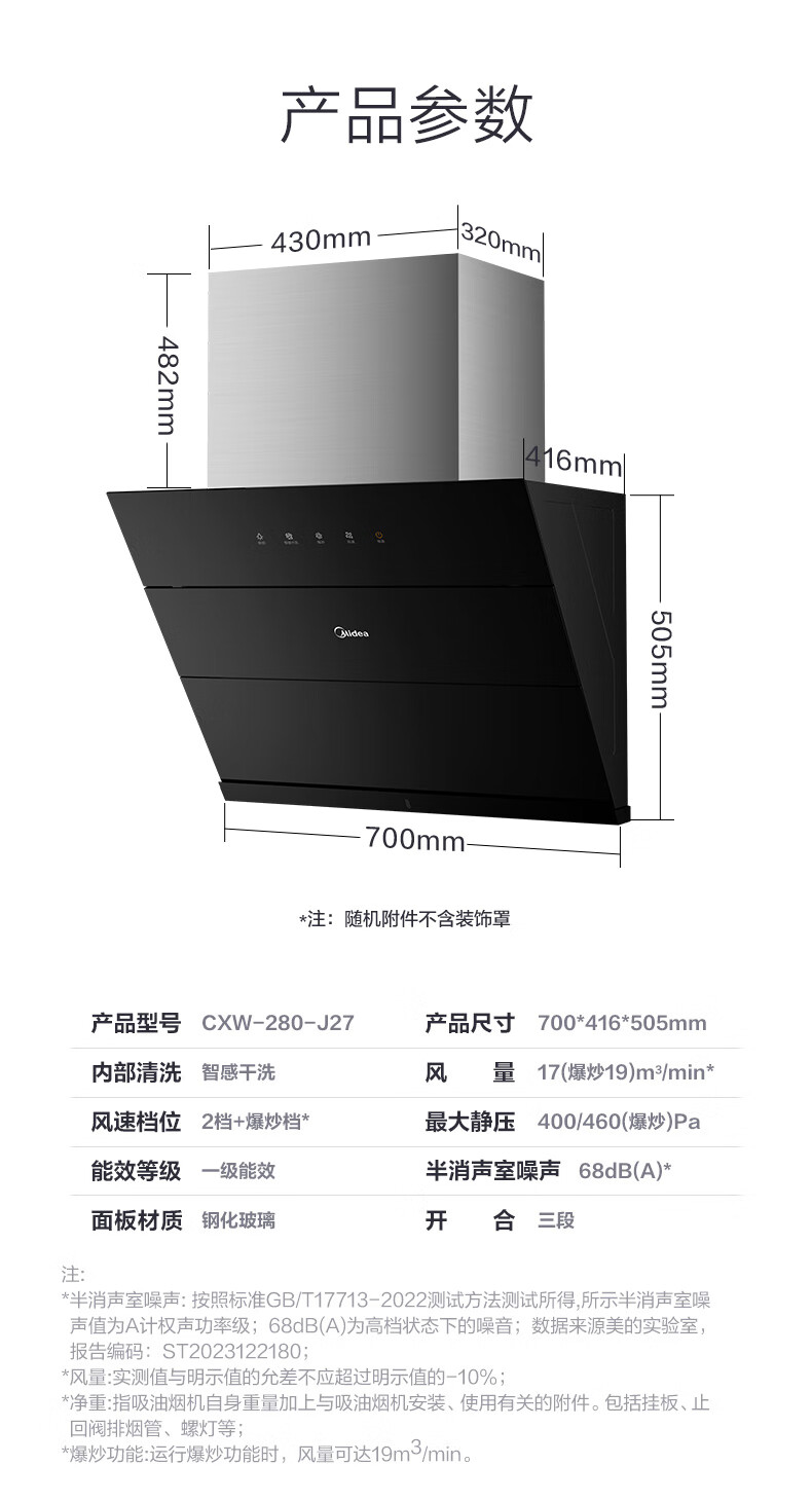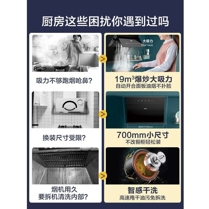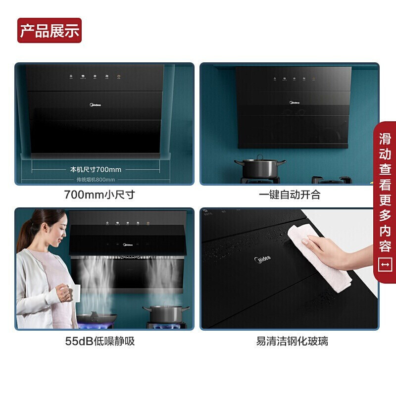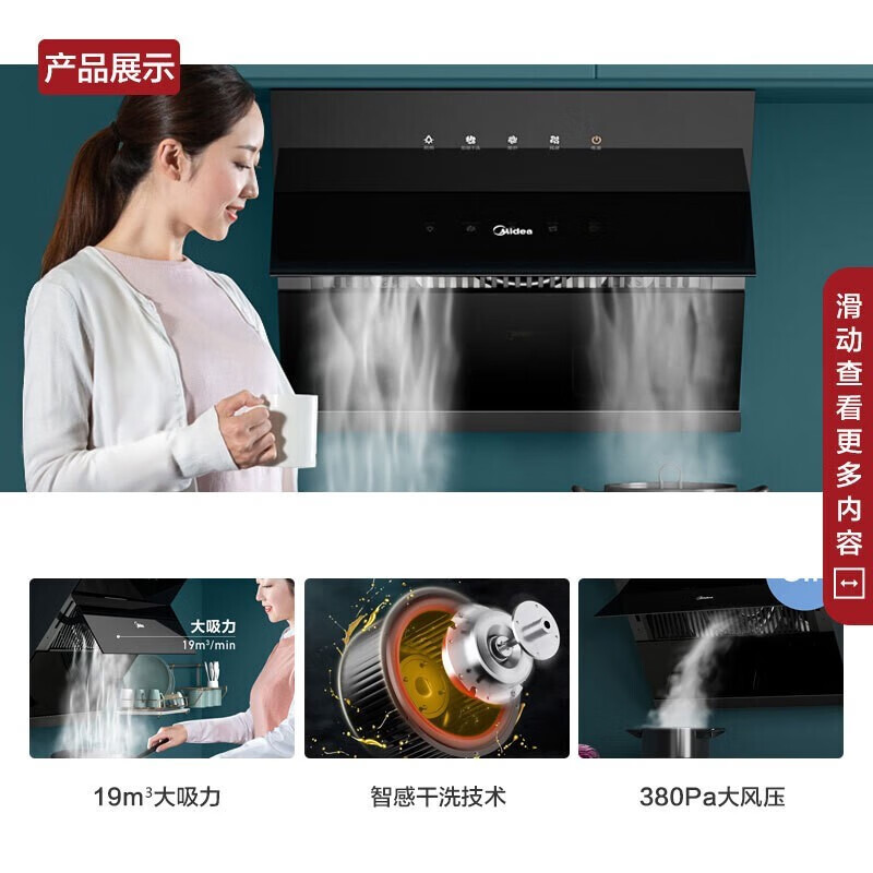 美的(Midea)抽油烟机700小尺寸油烟机19立方爆炒大吸力侧吸抽油烟机自动清洗J27 智能家电【700小尺寸烟机J27】