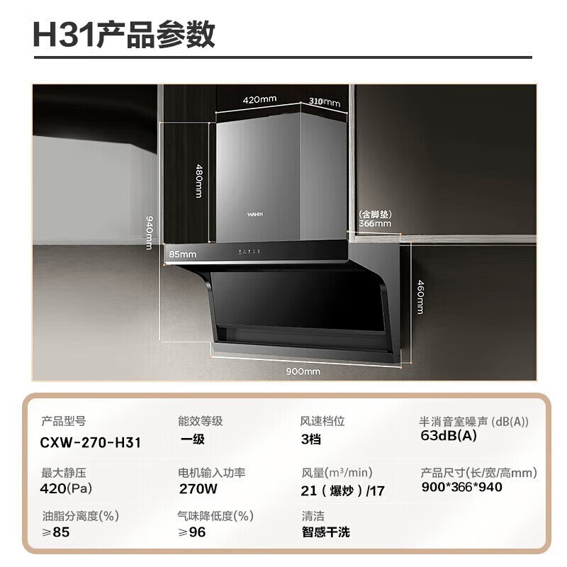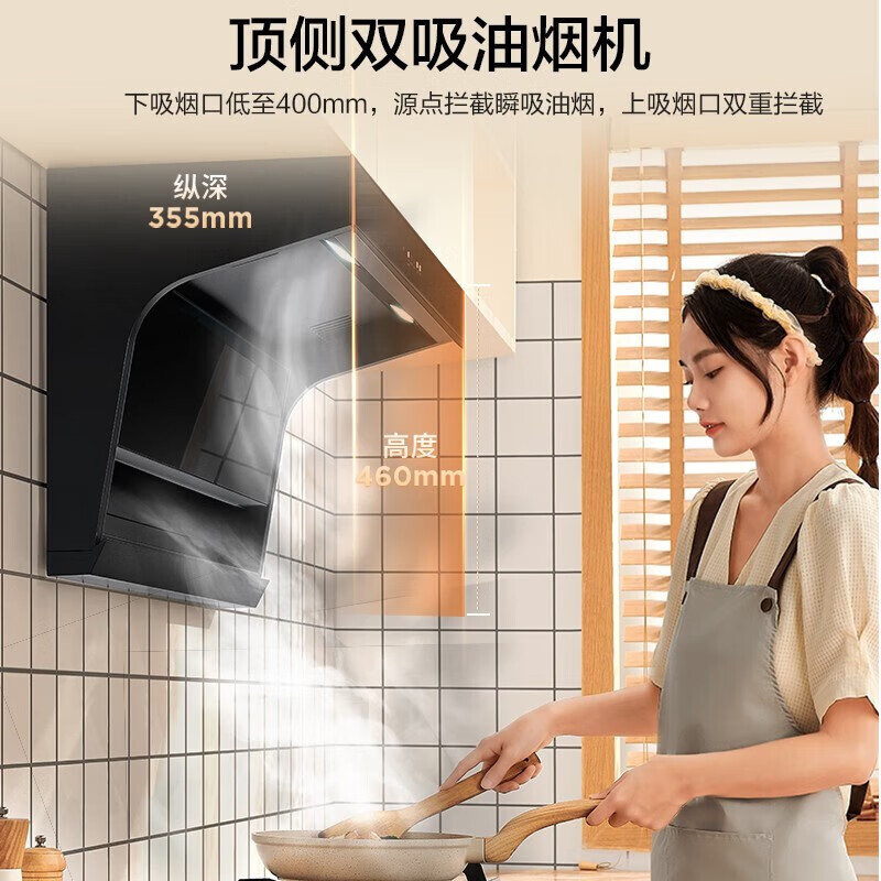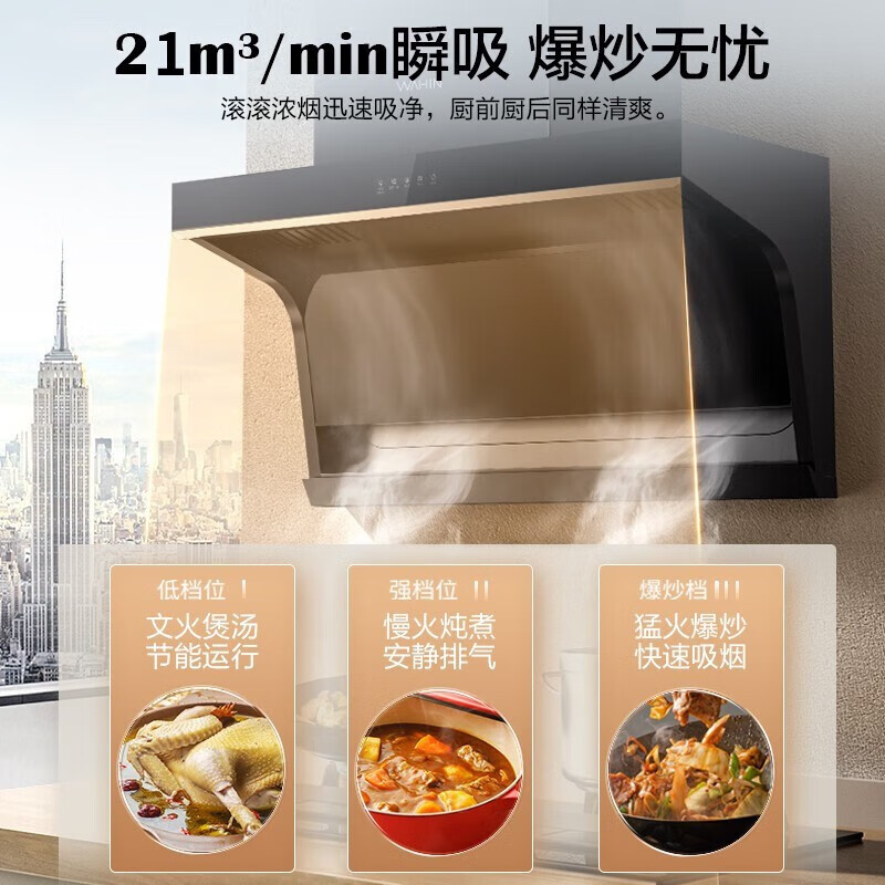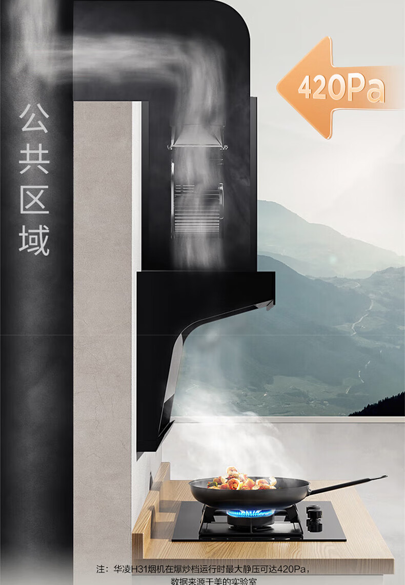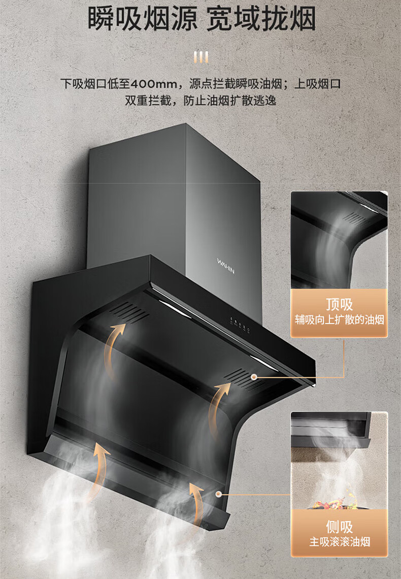 华凌H31抽油烟机顶侧双吸7字形家用吸油烟机21立方米风量大吸力挥手操控智能干洗 华凌油烟机
