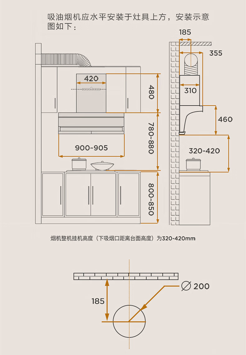 烟机安装尺寸: