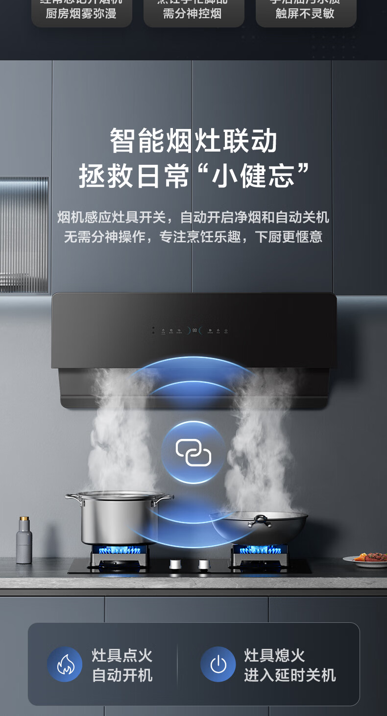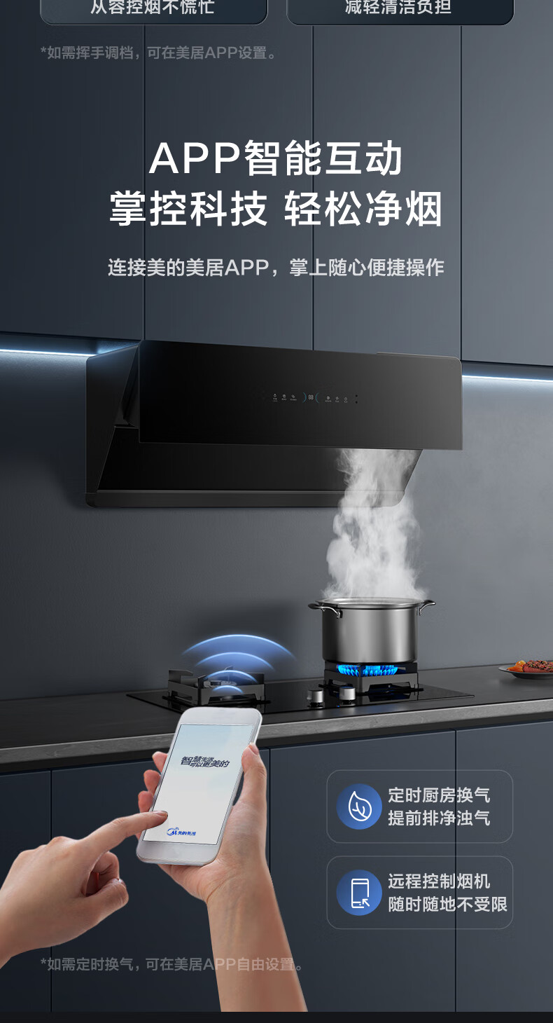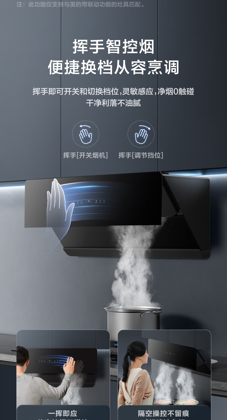 • 烟机操控方式: APP操控;触控式;挥手感应