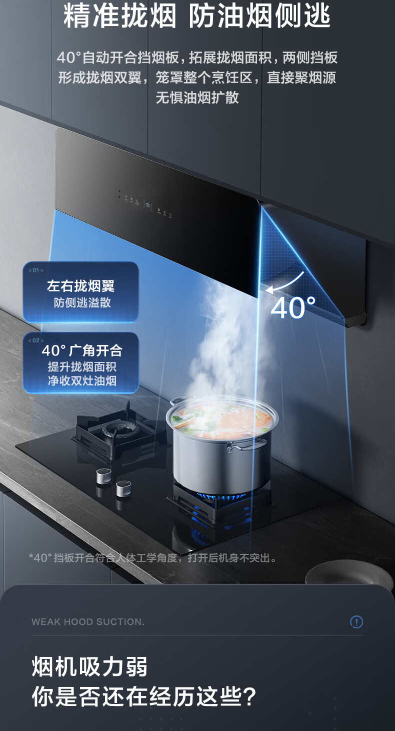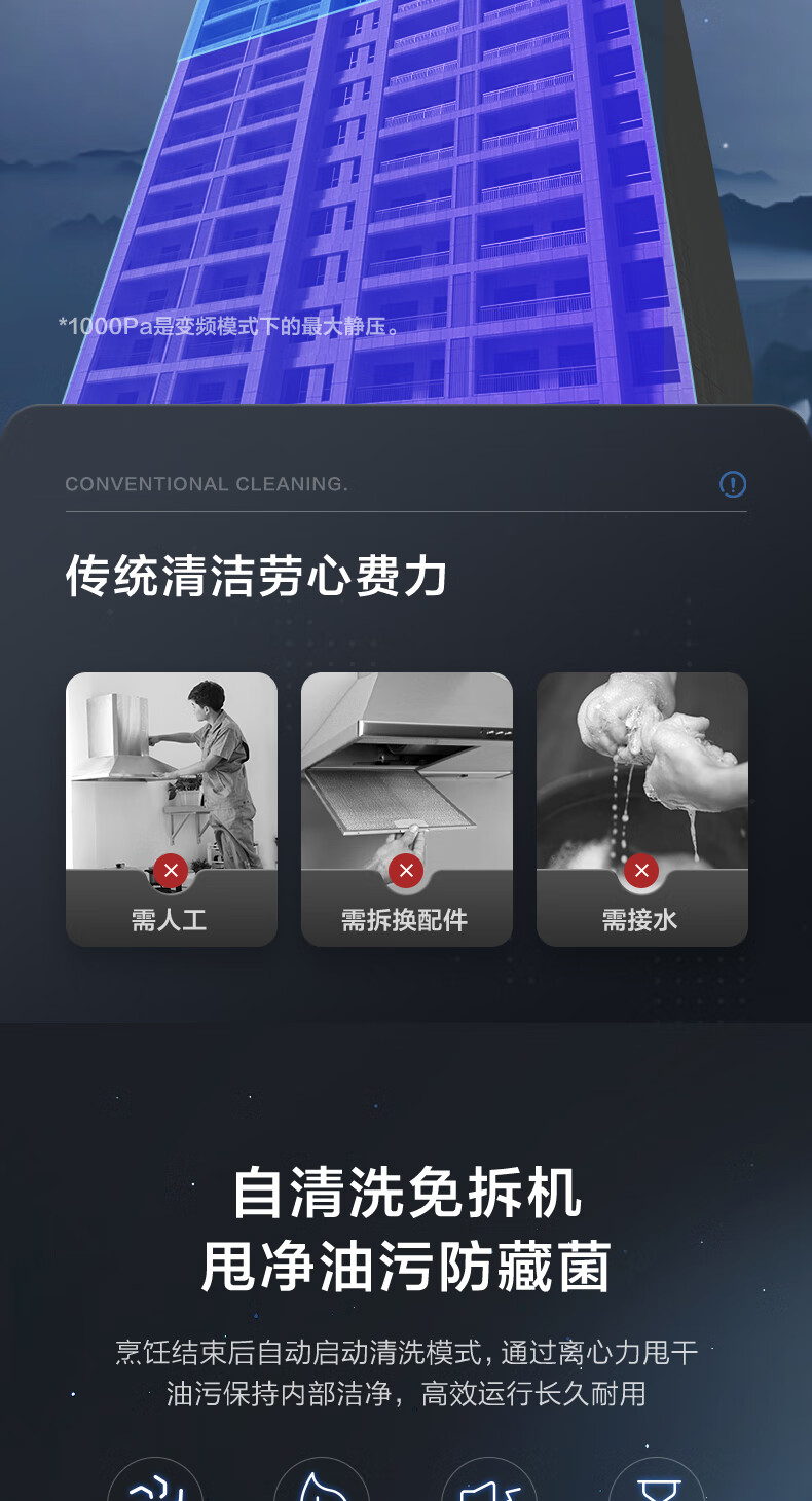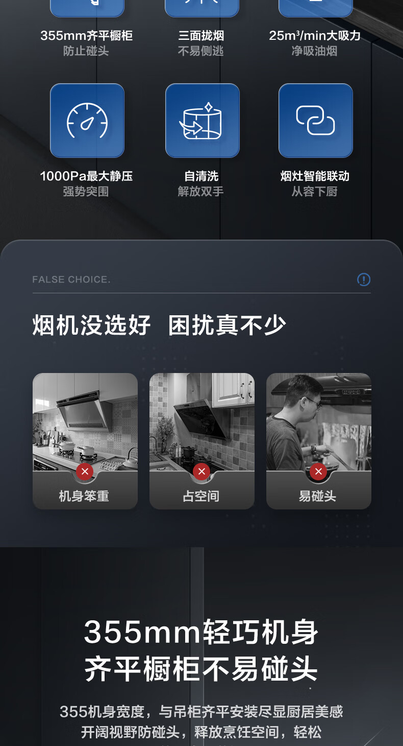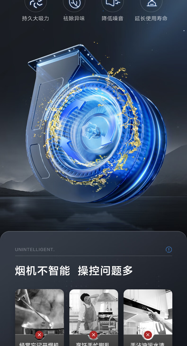 • 烟机操控方式: APP操控;触控式;挥手感应
