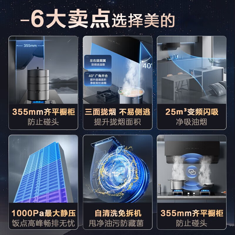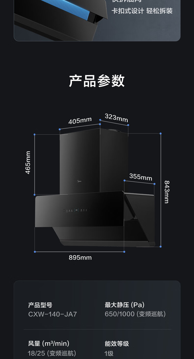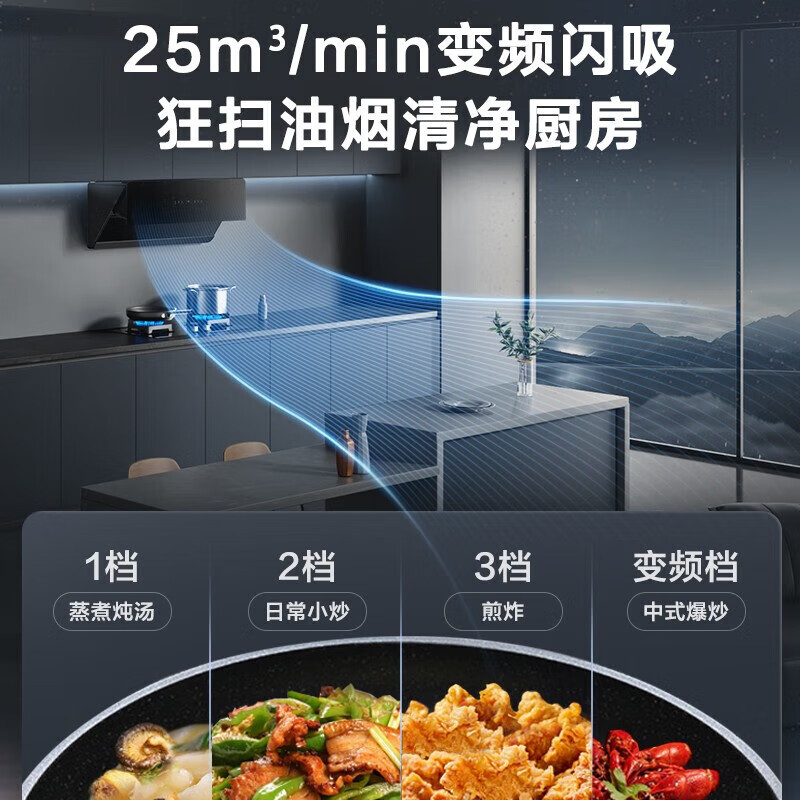 美的(Midea)油烟机侧吸式抽烟机平嵌大吸力智能变频自清洁烟灶联动厨房家用吸排油烟机 25立方大吸力【智能烟灶联动】JA7