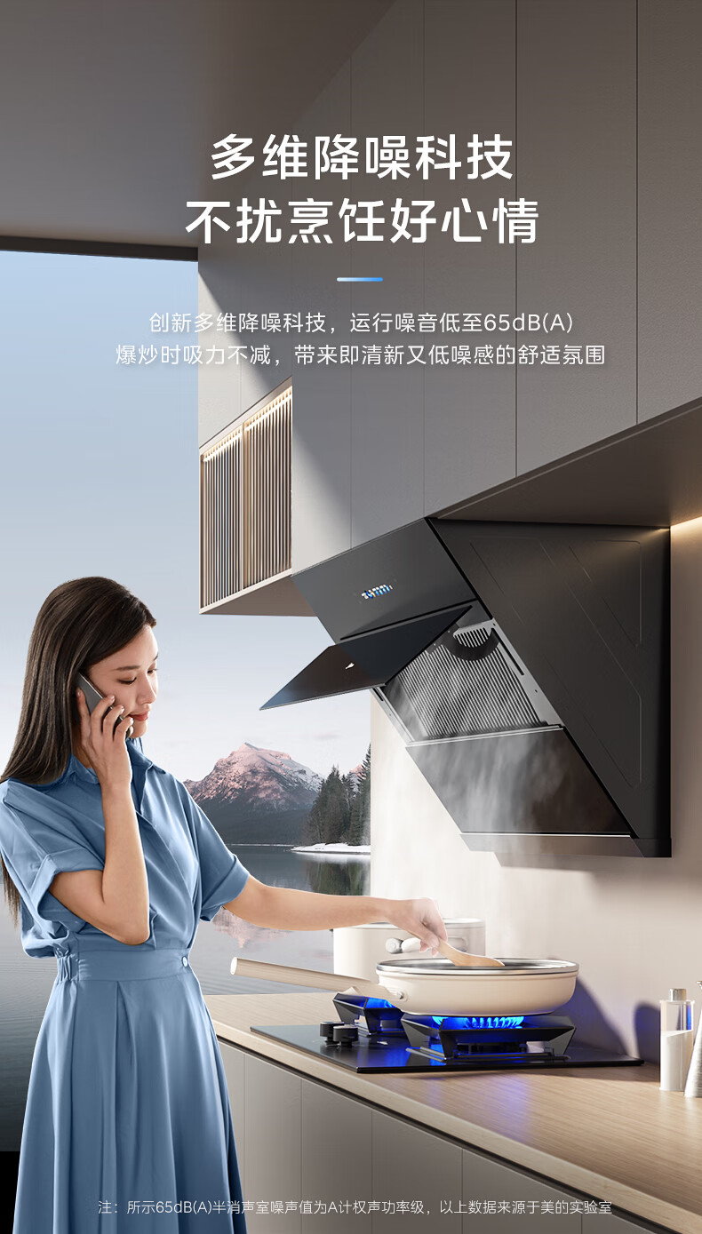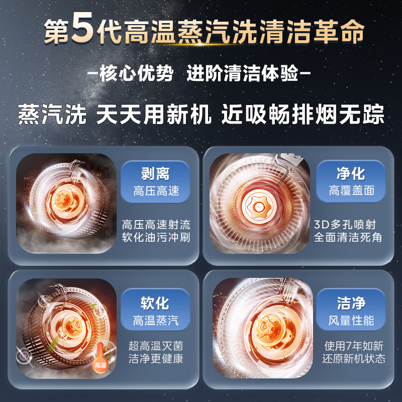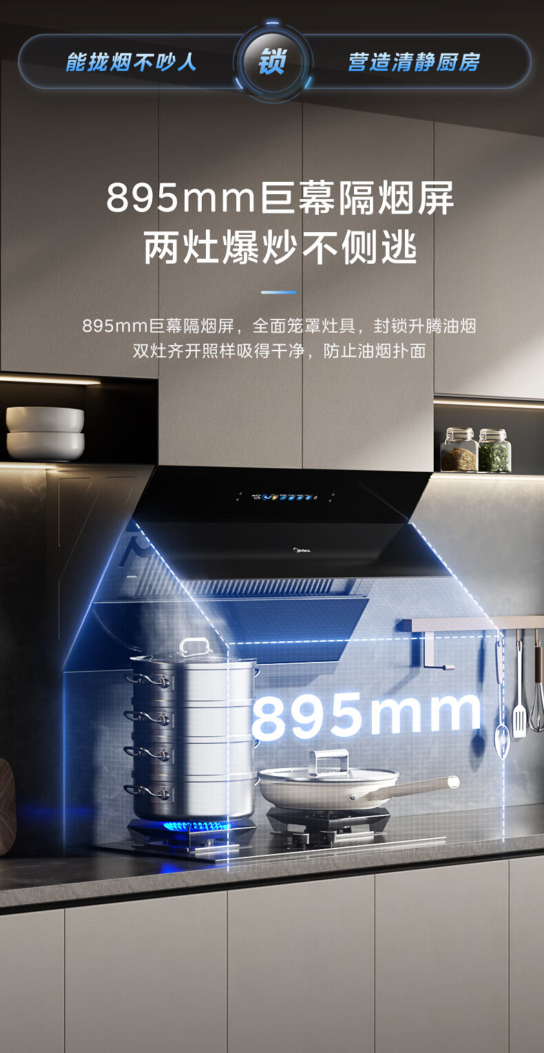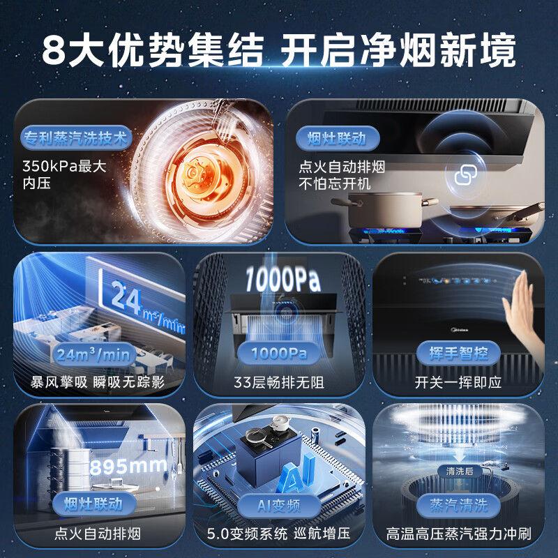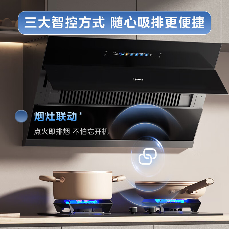 美的(Midea)油烟机家用侧吸24立方大吸力 高温蒸汽自清洗1000Pa大风压 厨房脱排油烟 机挥手智控烟灶联动JZ9 【烟灶联动】110°C高温蒸汽洗