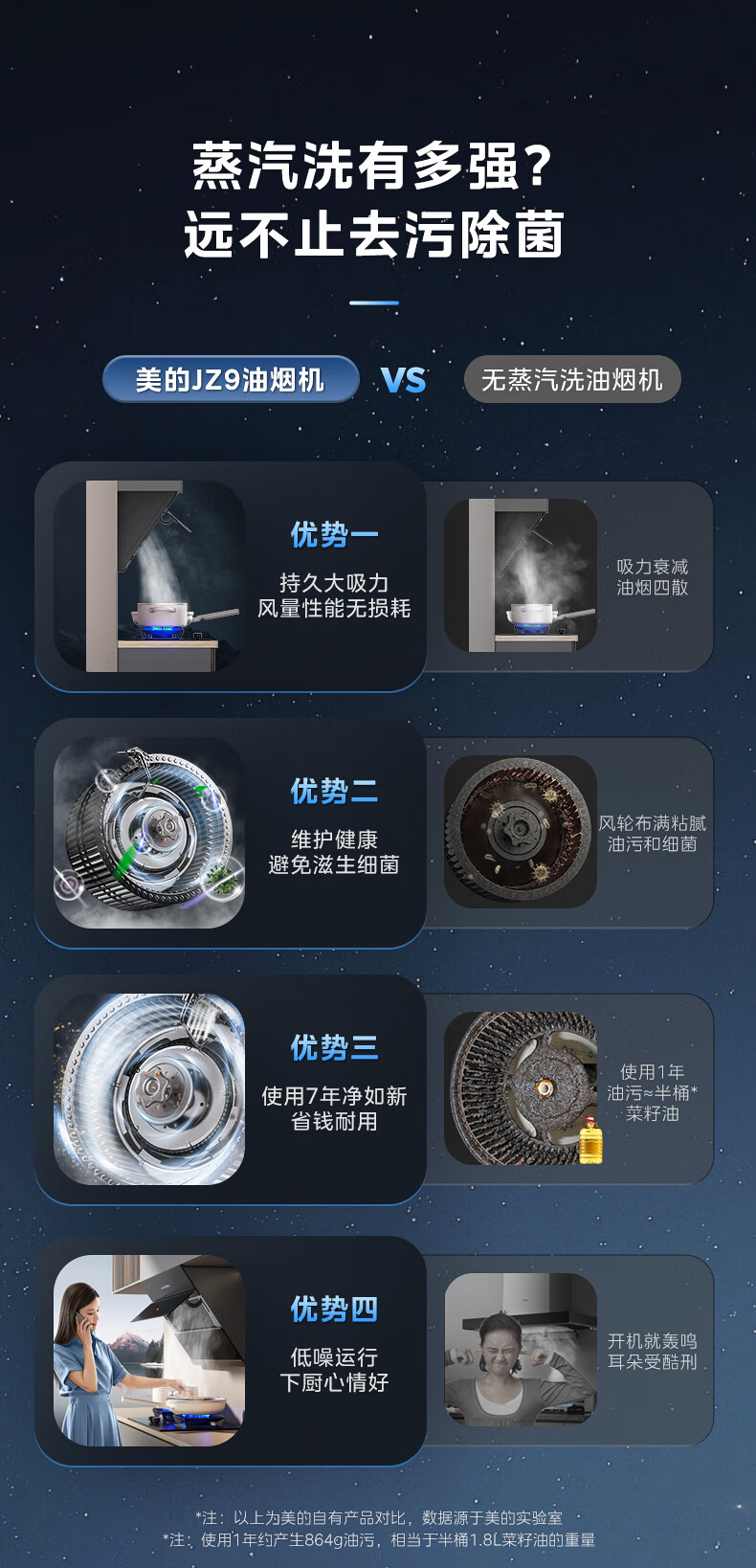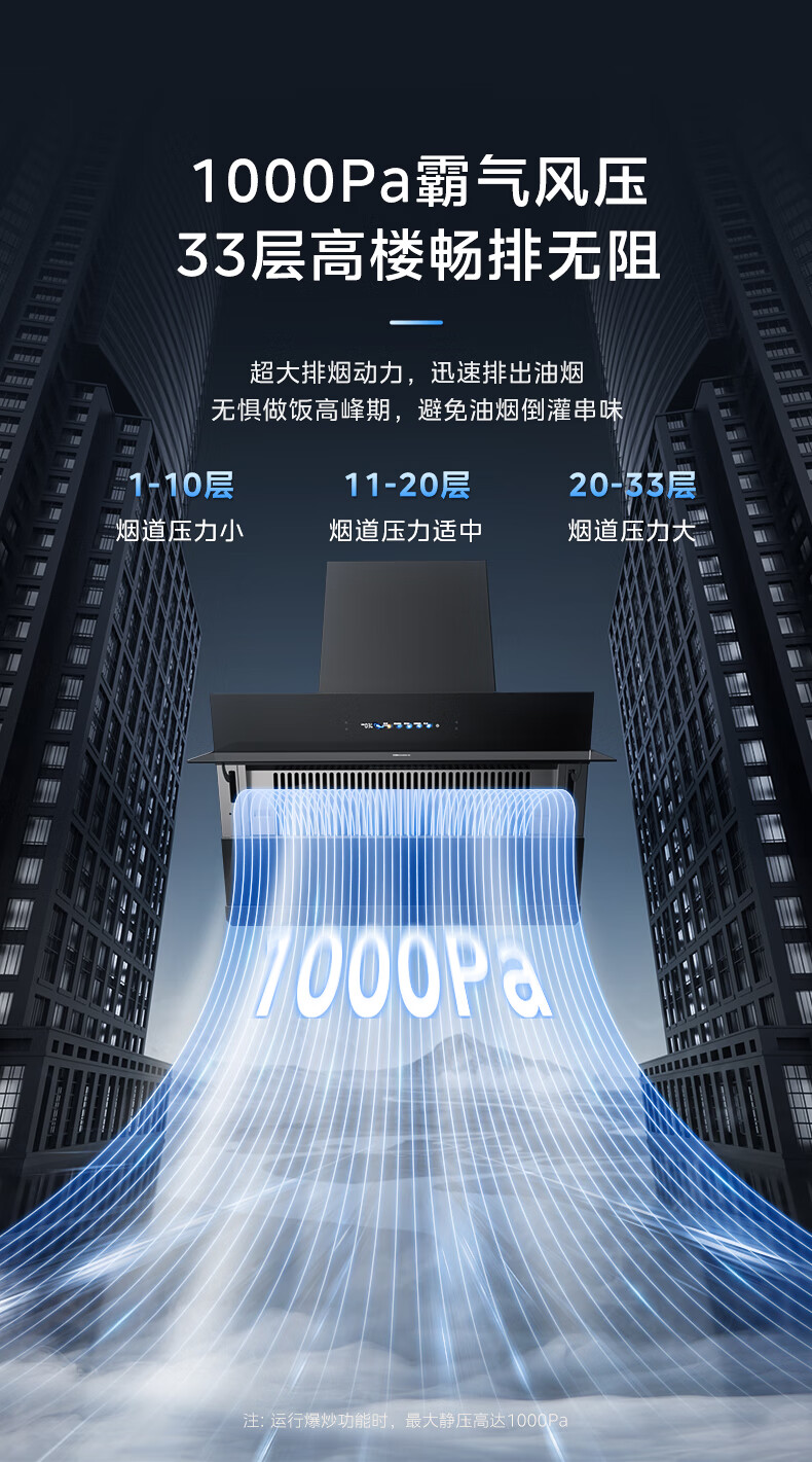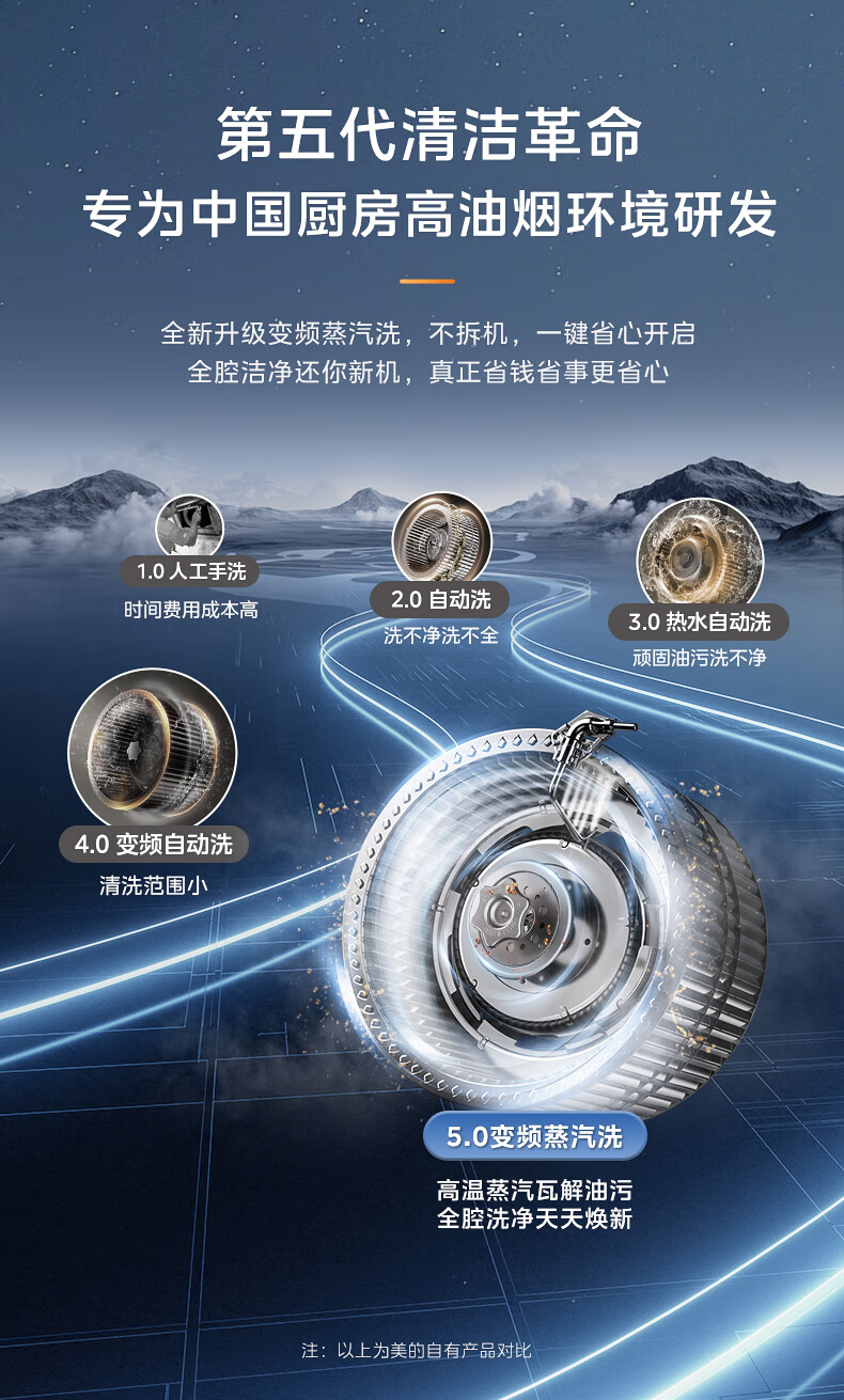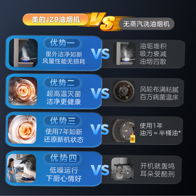 美的(Midea)油烟机家用侧吸24立方大吸力 高温蒸汽自清洗1000Pa大风压 厨房脱排油烟 机挥手智控烟灶联动JZ9 【烟灶联动】110°C高温蒸汽洗