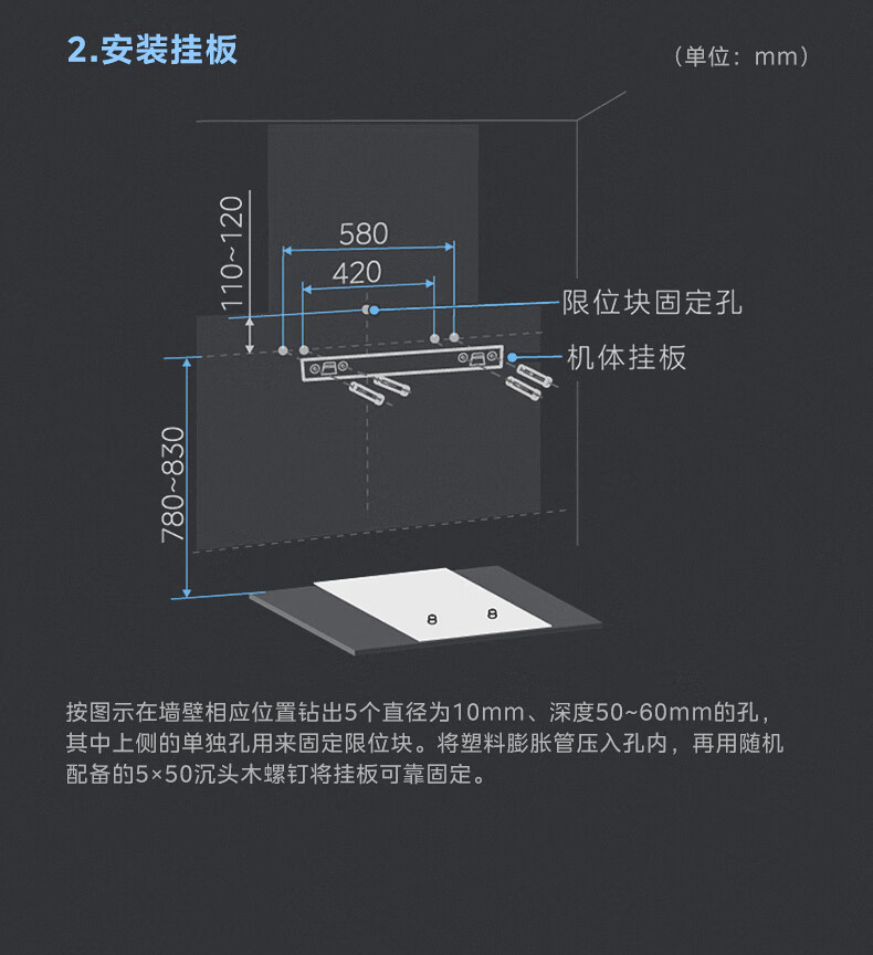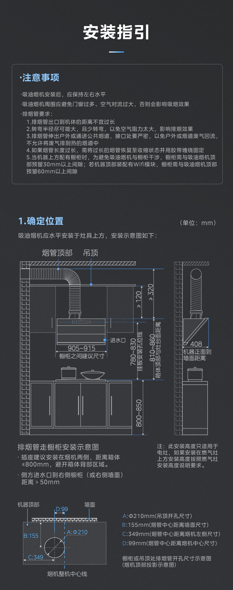 • 烟机安装尺寸: 900±50mm