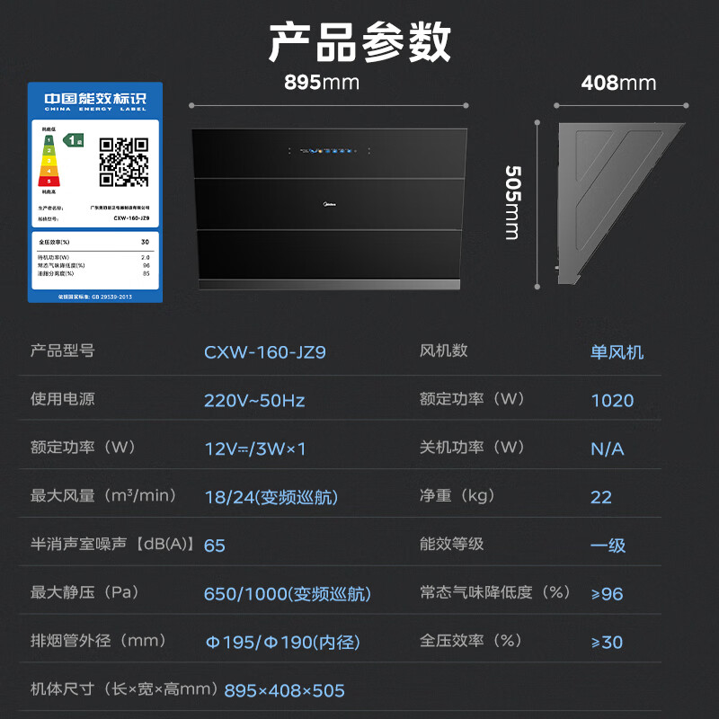 • 烟机能效等级: 一级能效