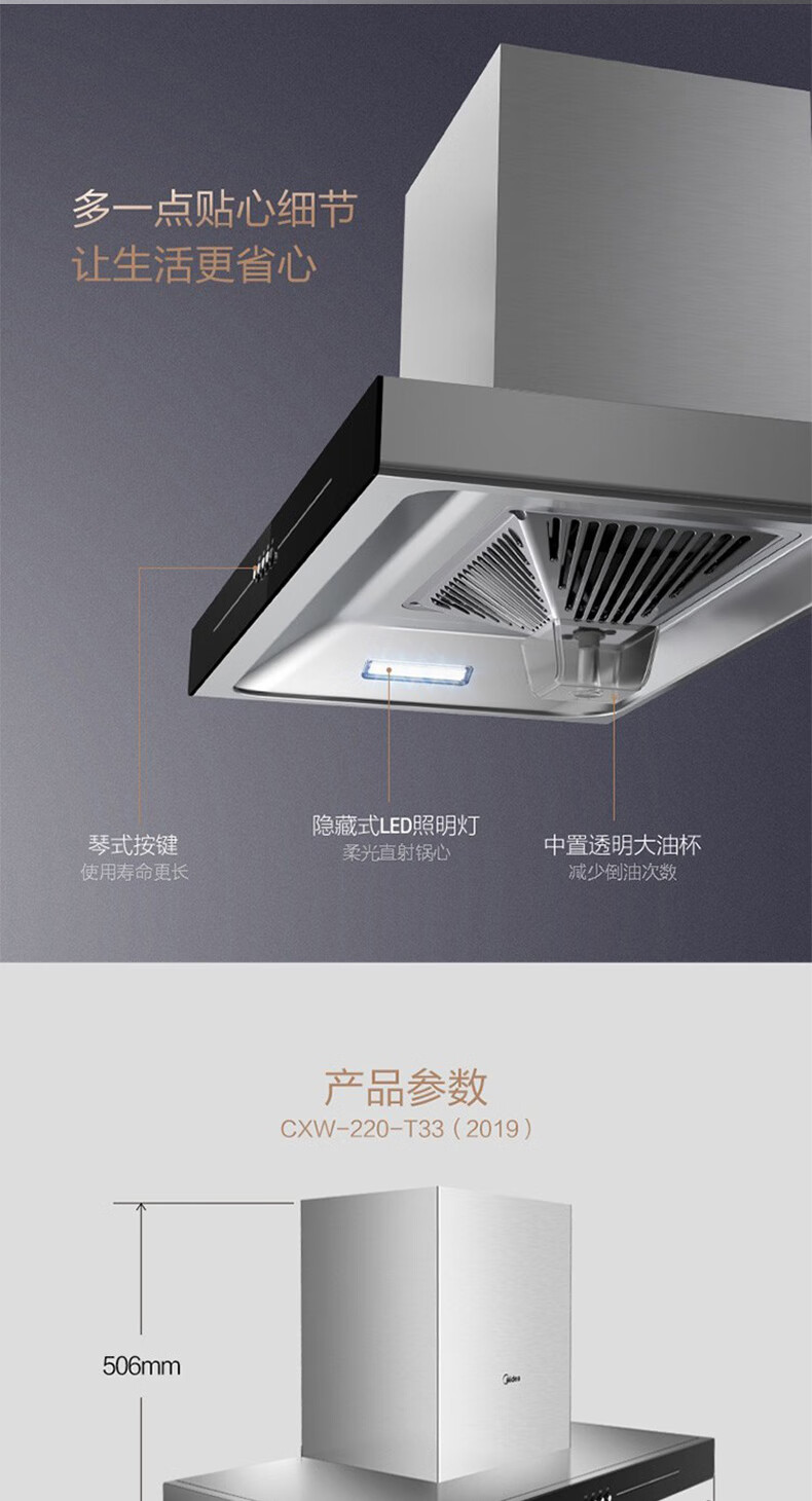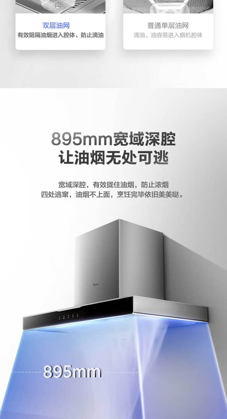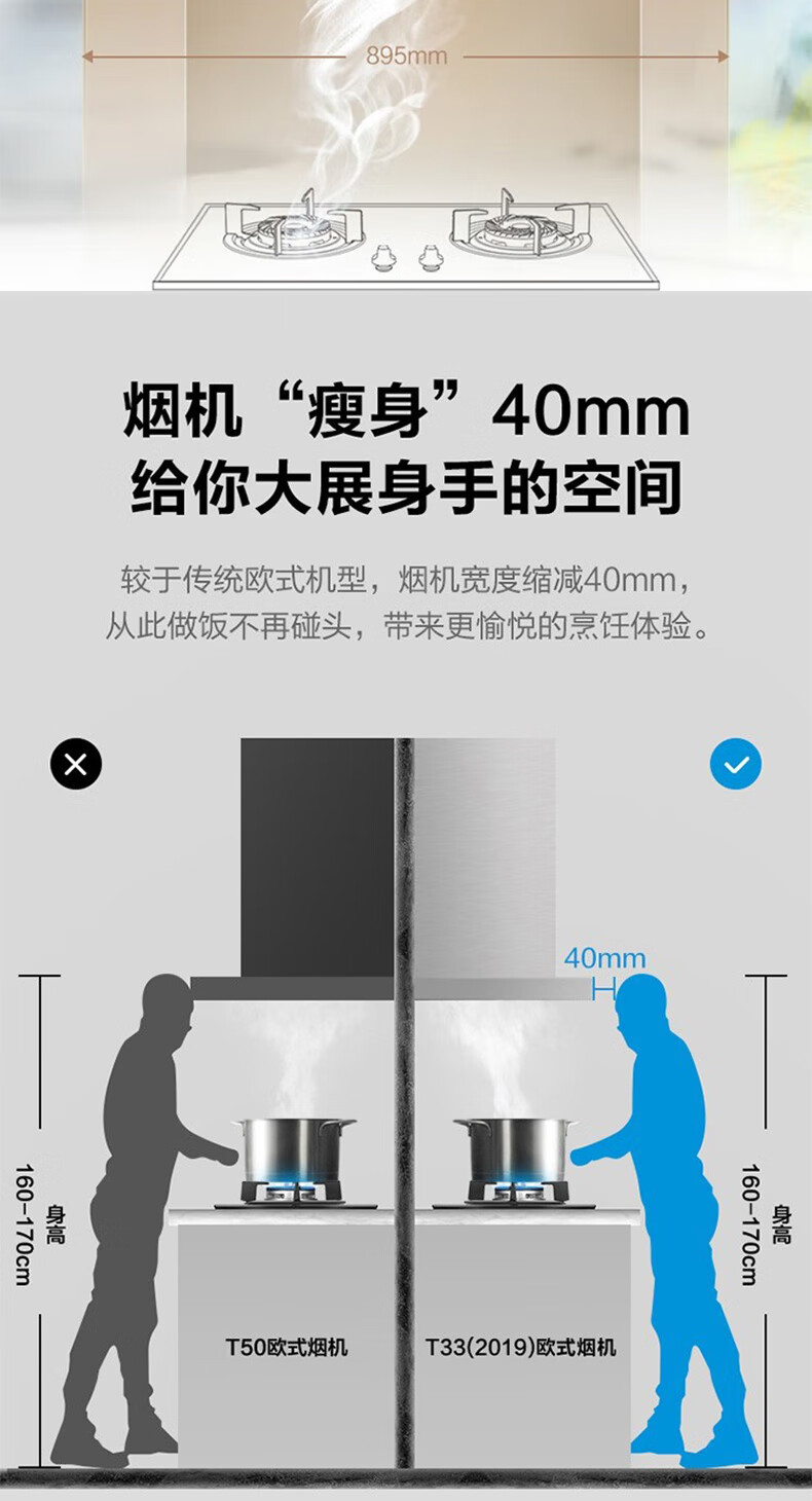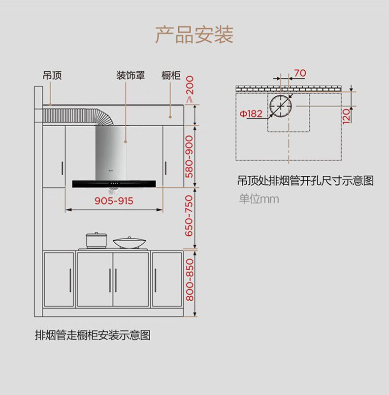 • 烟机安装尺寸: 900±50mm