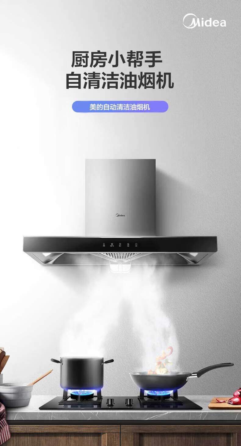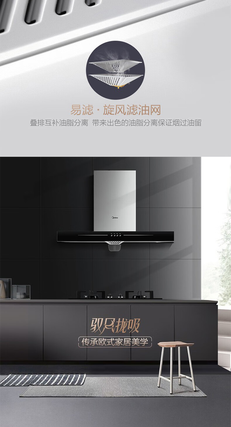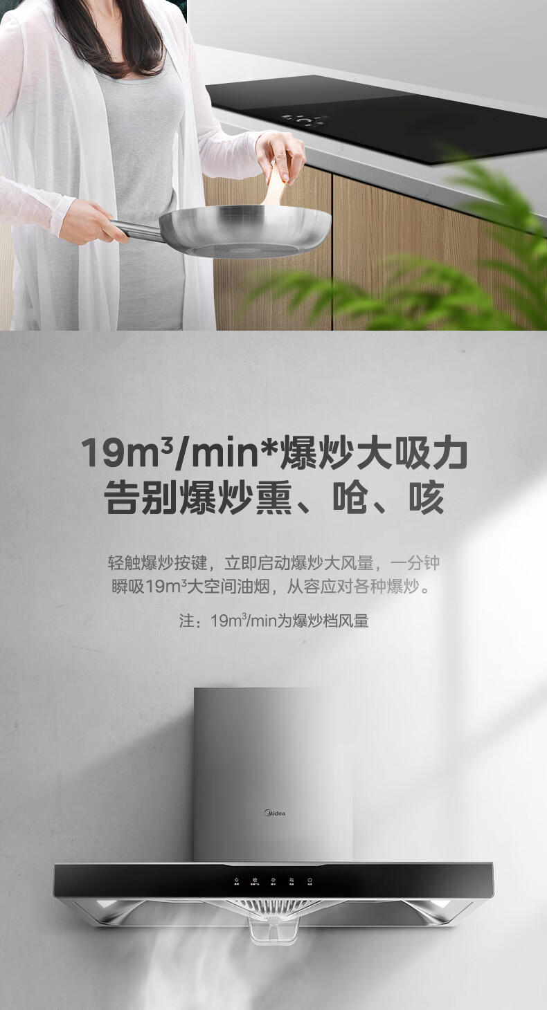 美的(Midea)家用抽油烟机燃气灶17/19立方大吸力顶吸排油烟机欧式烟灶套装二件套厨房油烟机灶具热水器三件套 【天然气】【烟灶两件套】搭配4.5kw燃气灶