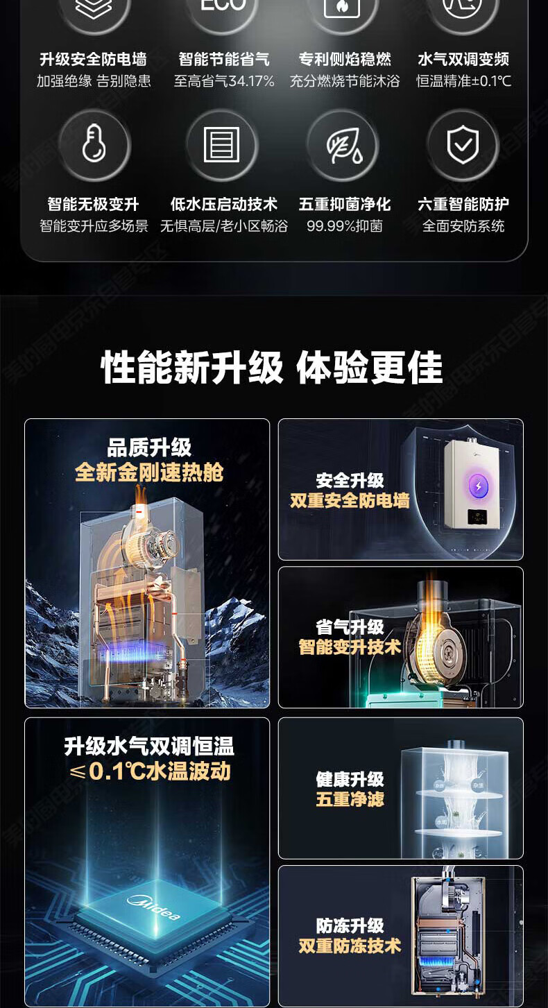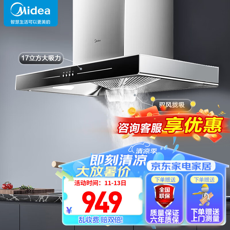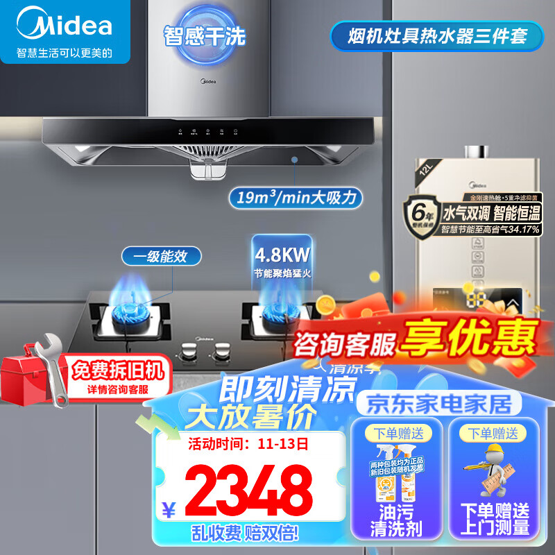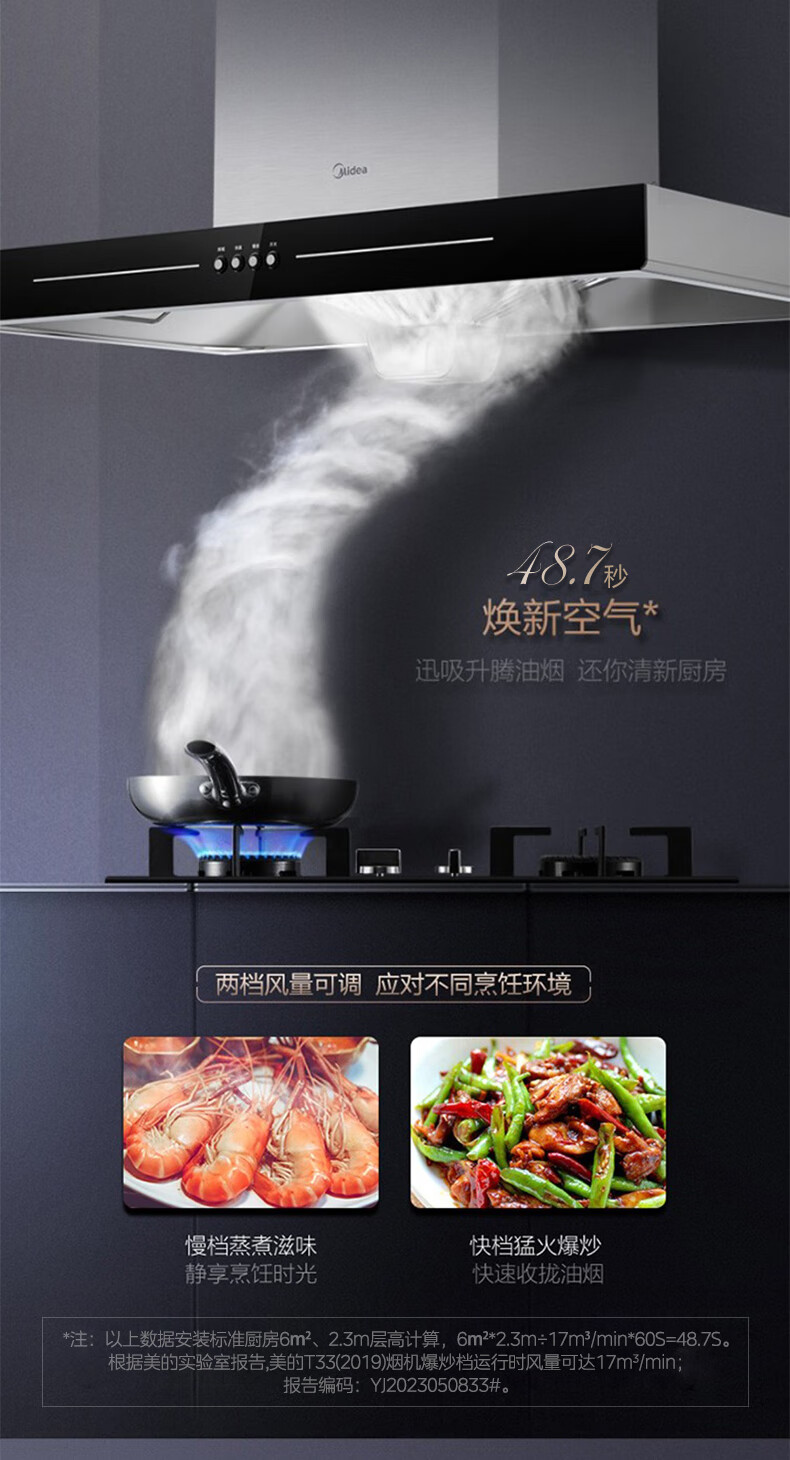 美的(Midea)家用抽油烟机燃气灶17/19立方大吸力顶吸排油烟机欧式烟灶套装二件套厨房油烟机灶具热水器三件套 【天然气】【烟灶两件套】搭配4.5kw燃气灶