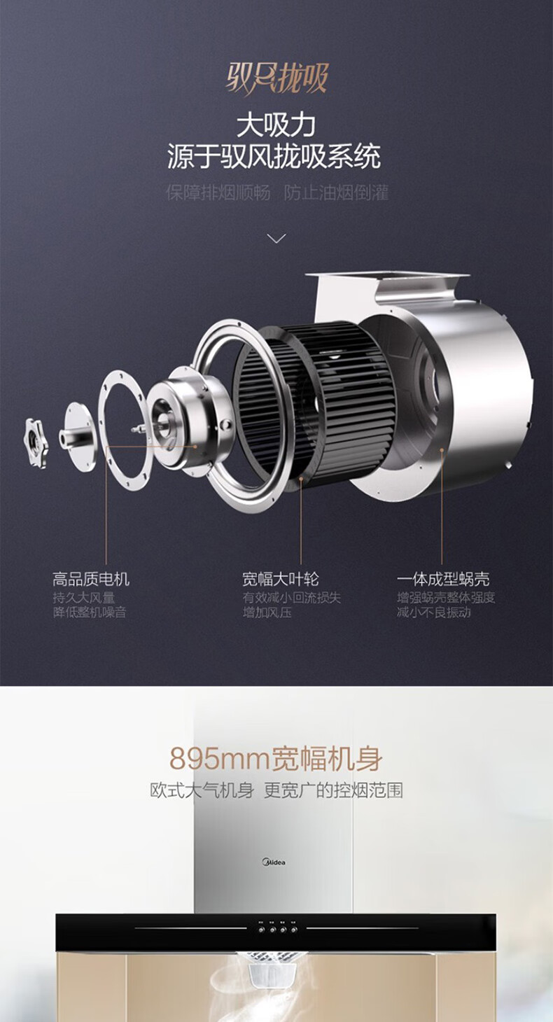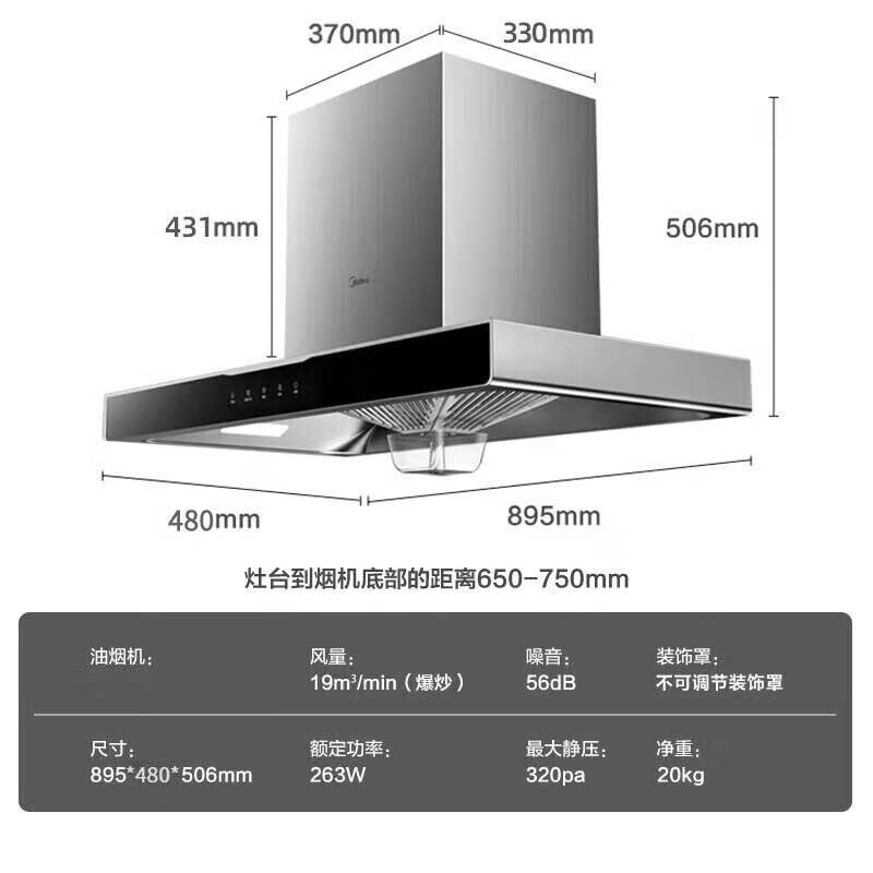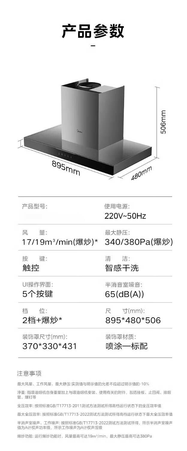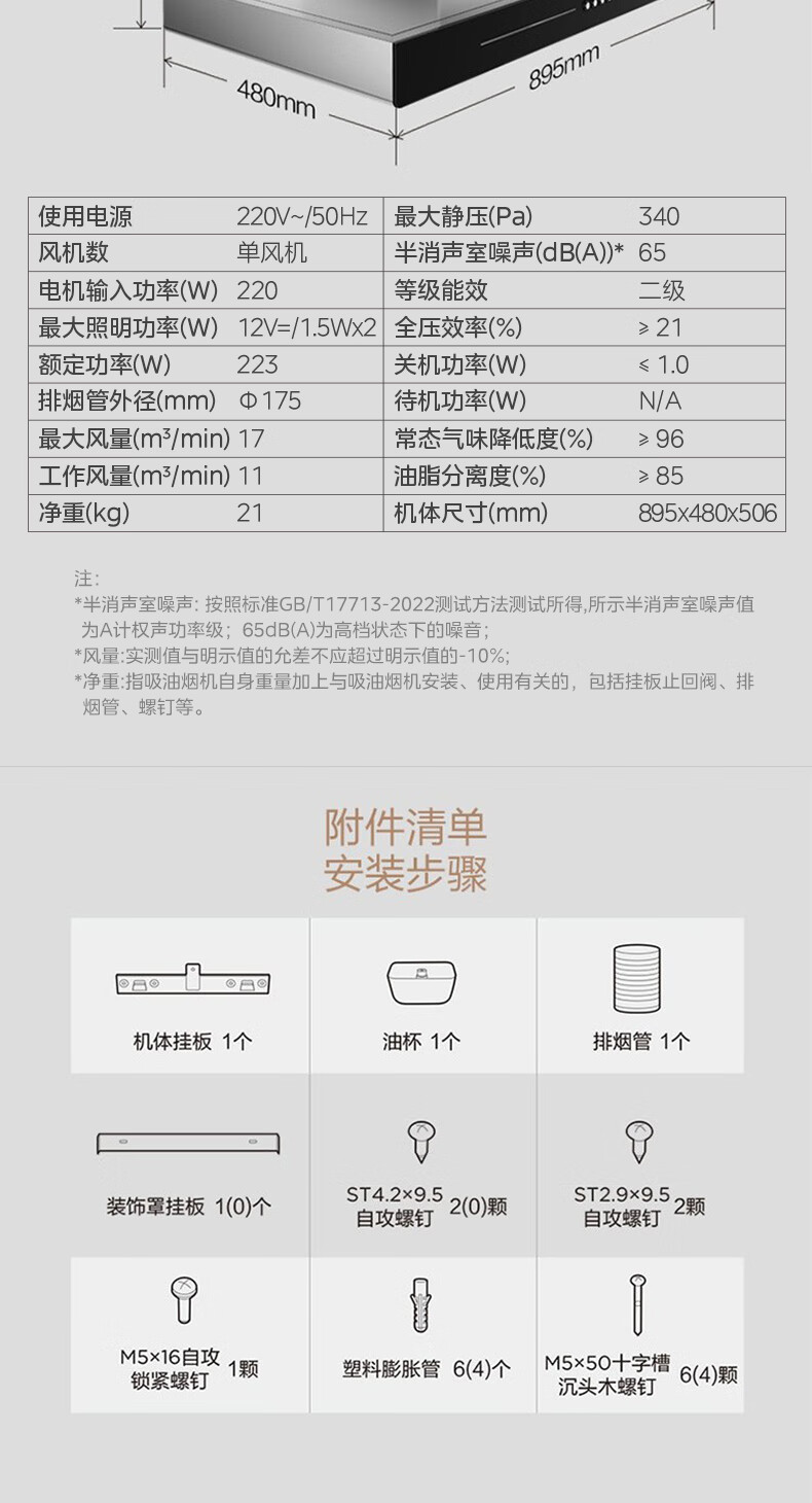 • 烟机外机尺寸: 长895mm;宽480mm;高506mm