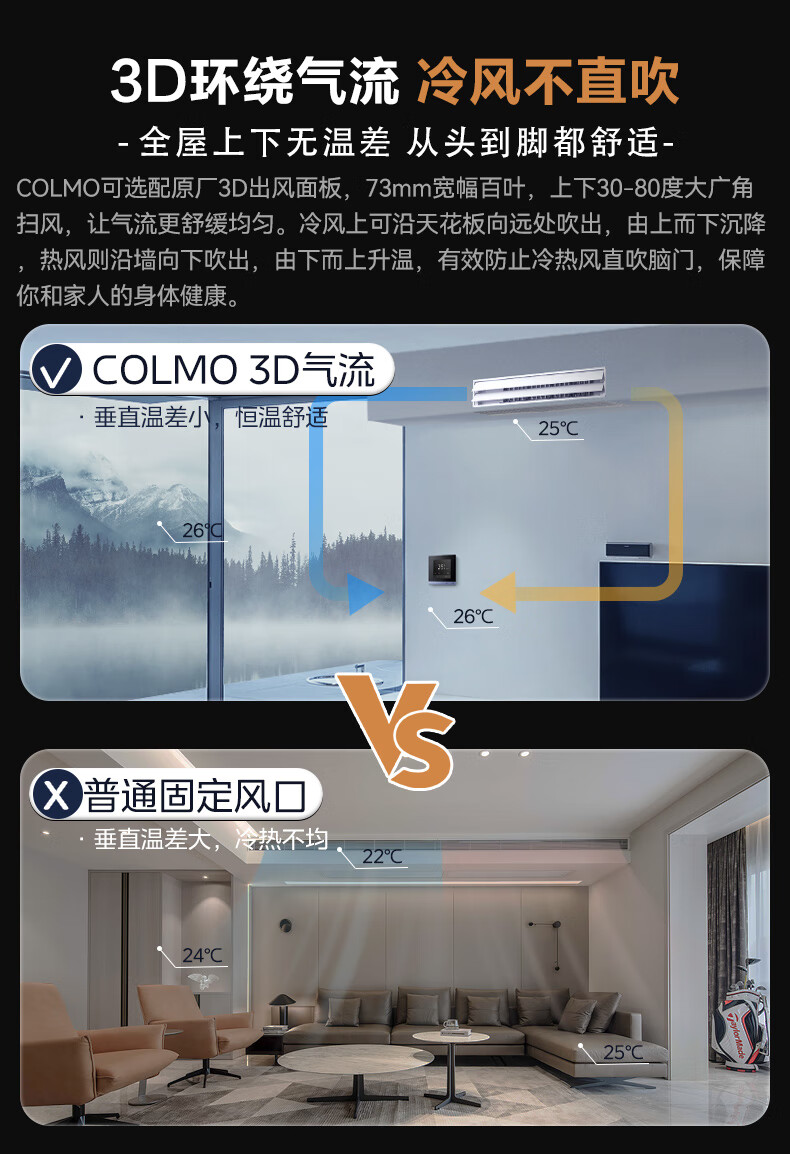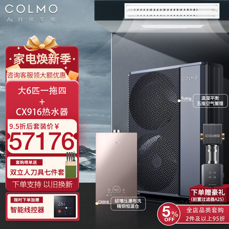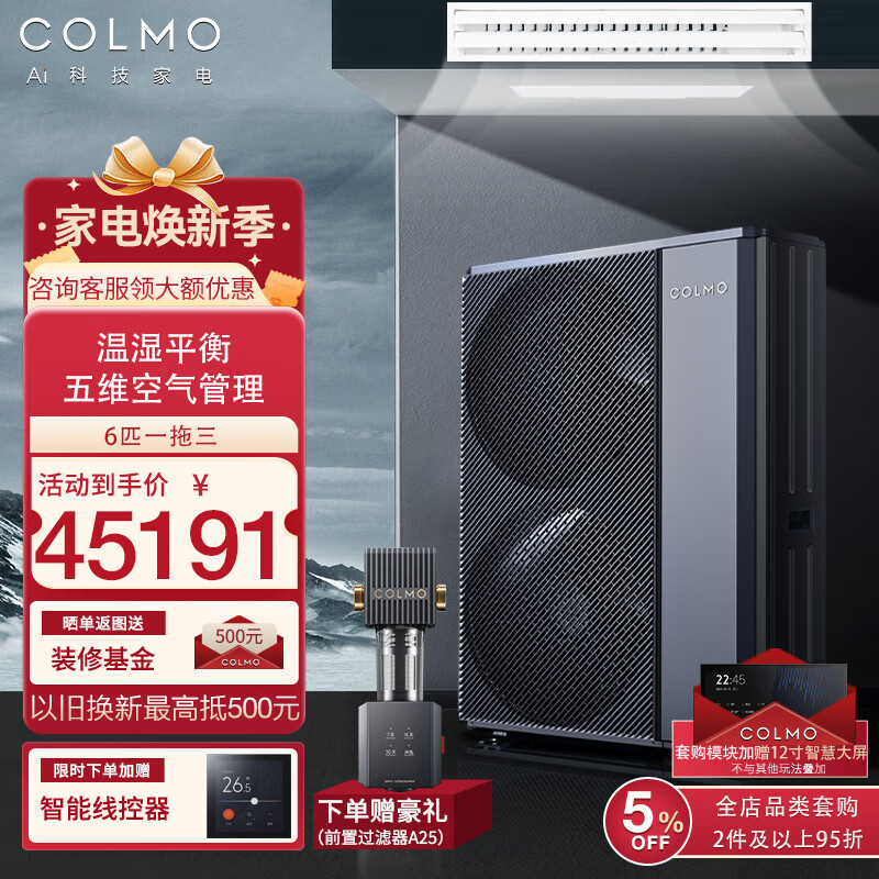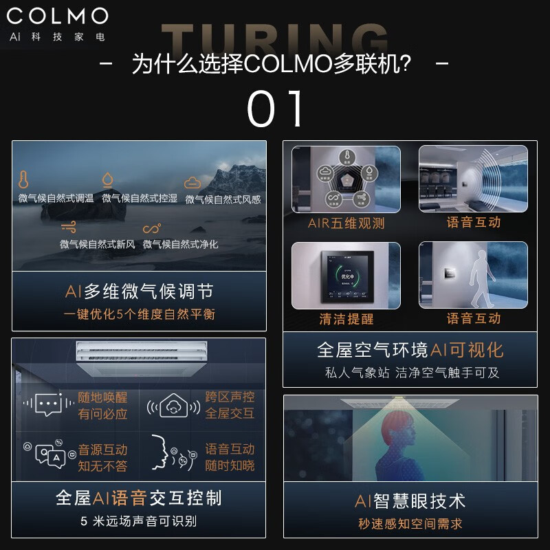 COLMO【含智慧眼无风感】图灵中央空调风管多联机一拖三/一拖四/一拖五/一拖六多联机新风AI语音智能空 5匹 一级能效 一拖四