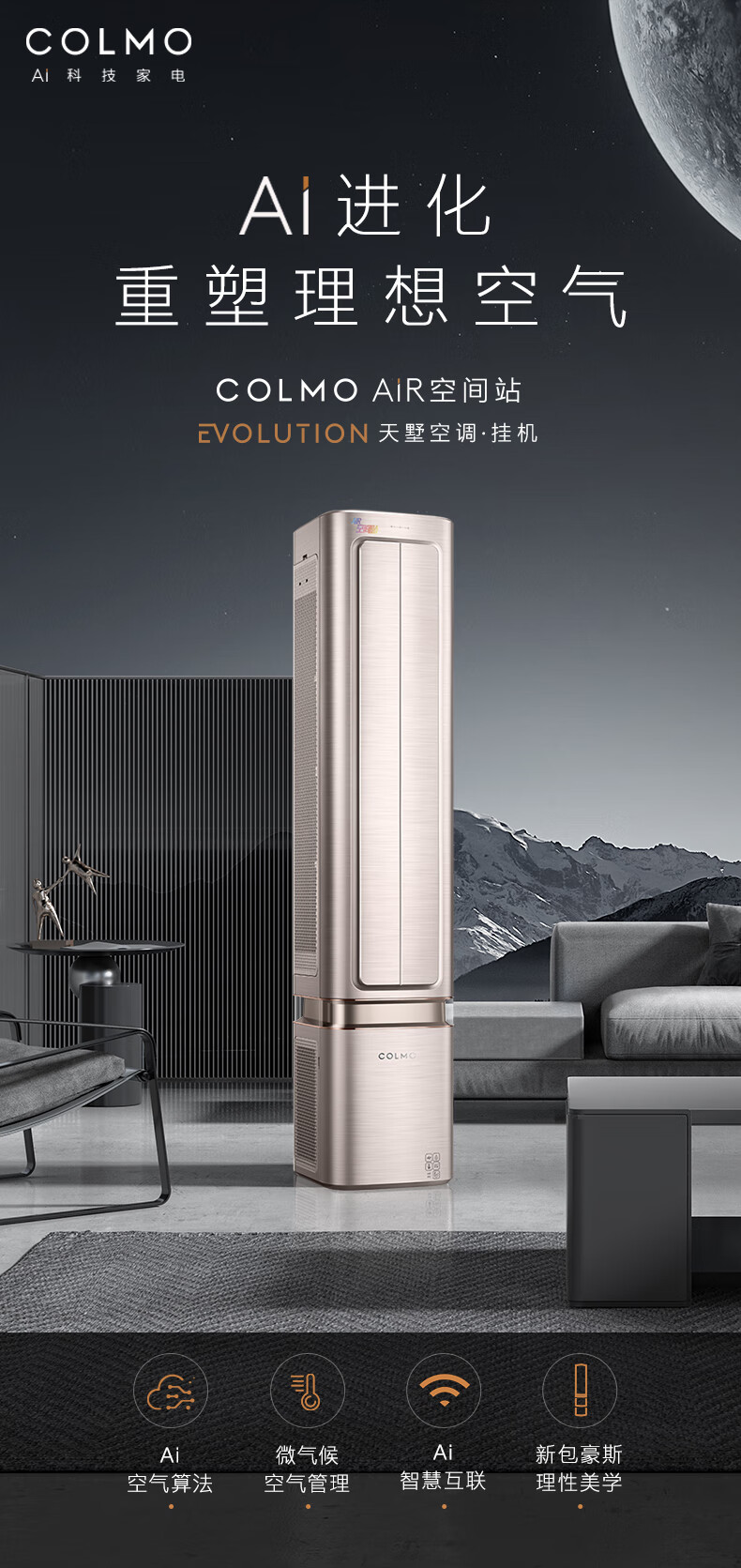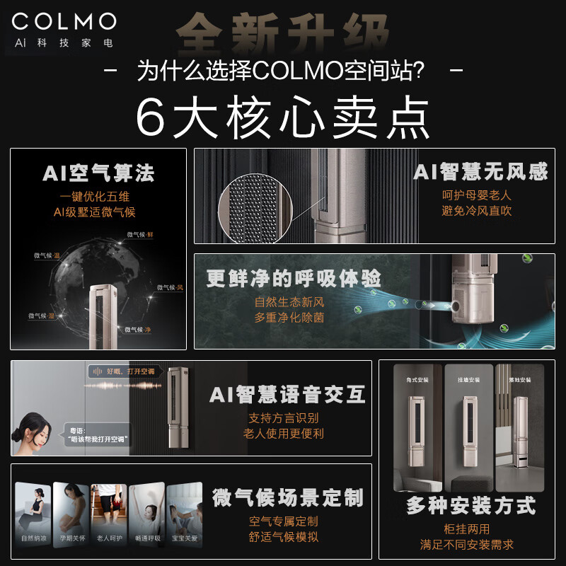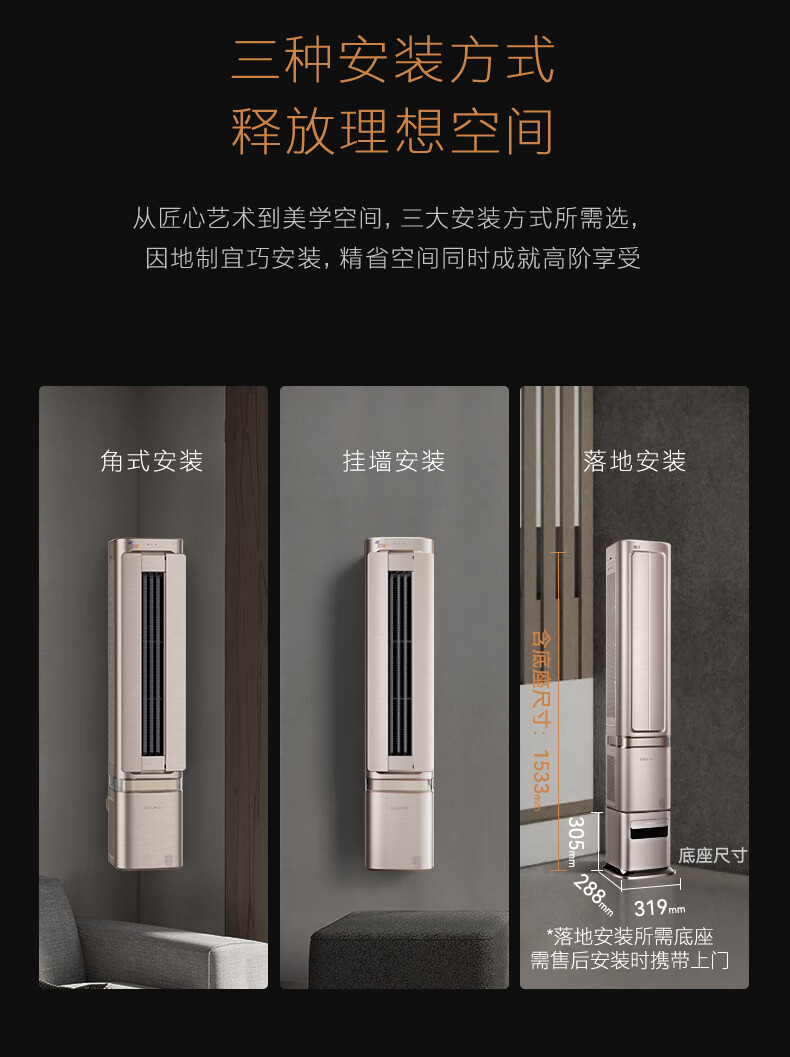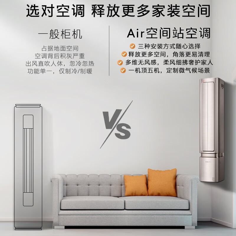 COLMO空调挂机【柜挂两用】空间站系列1.5匹/小2匹家用变频冷暖挂机立式两用空调 一级能效悬角式空调 1.5匹 一级能效