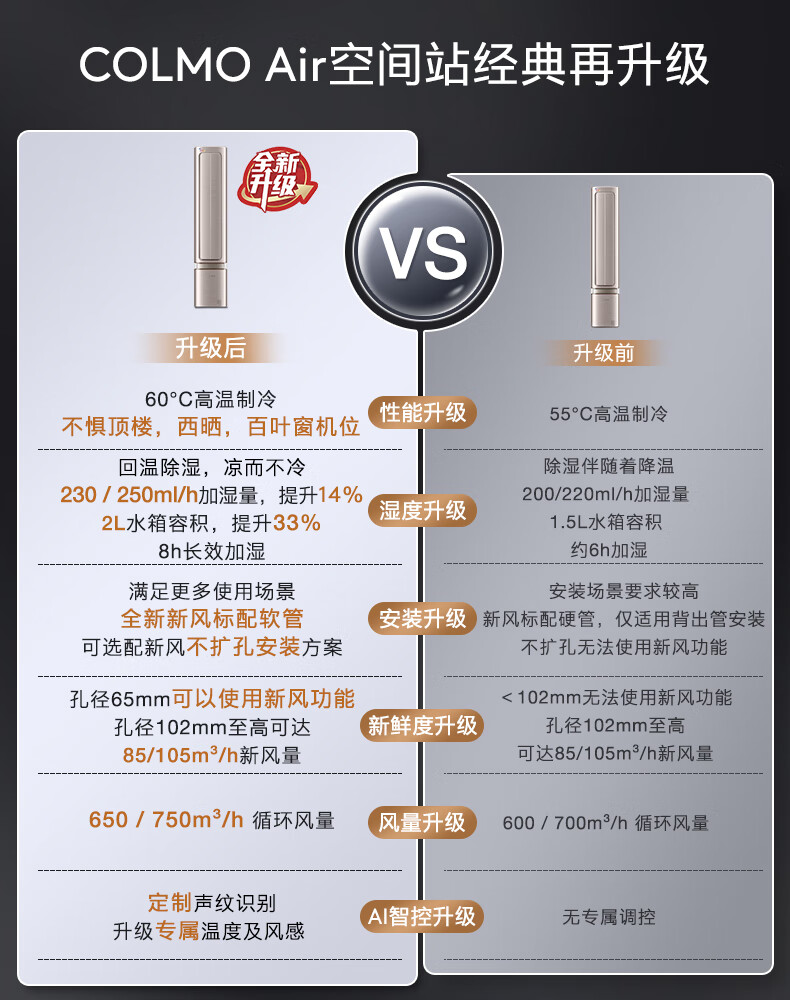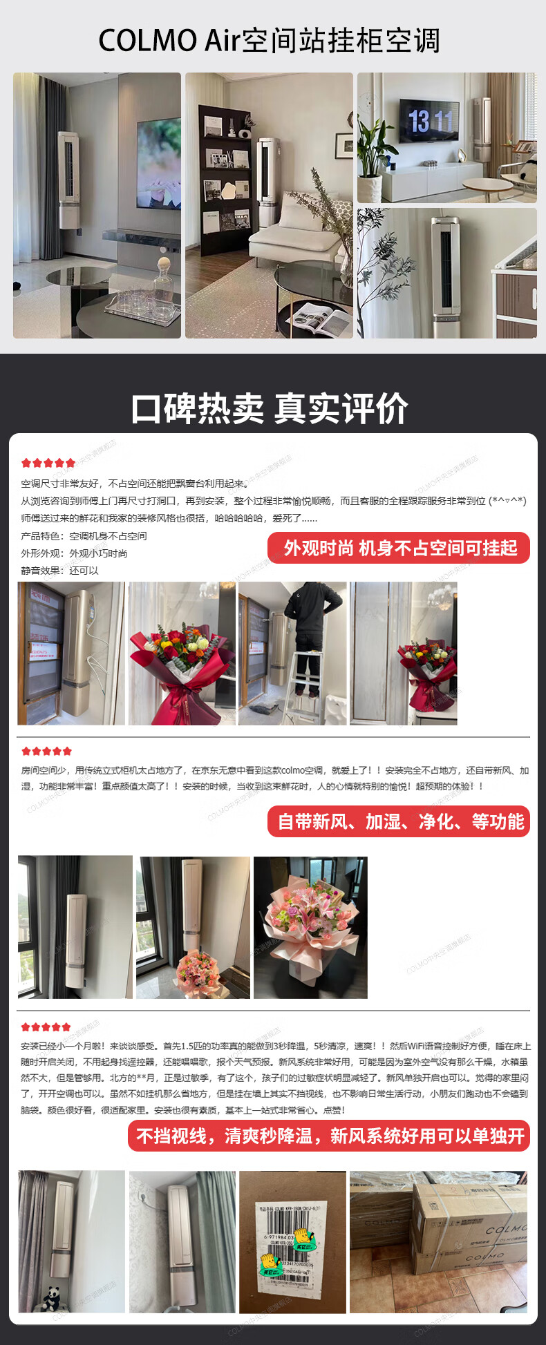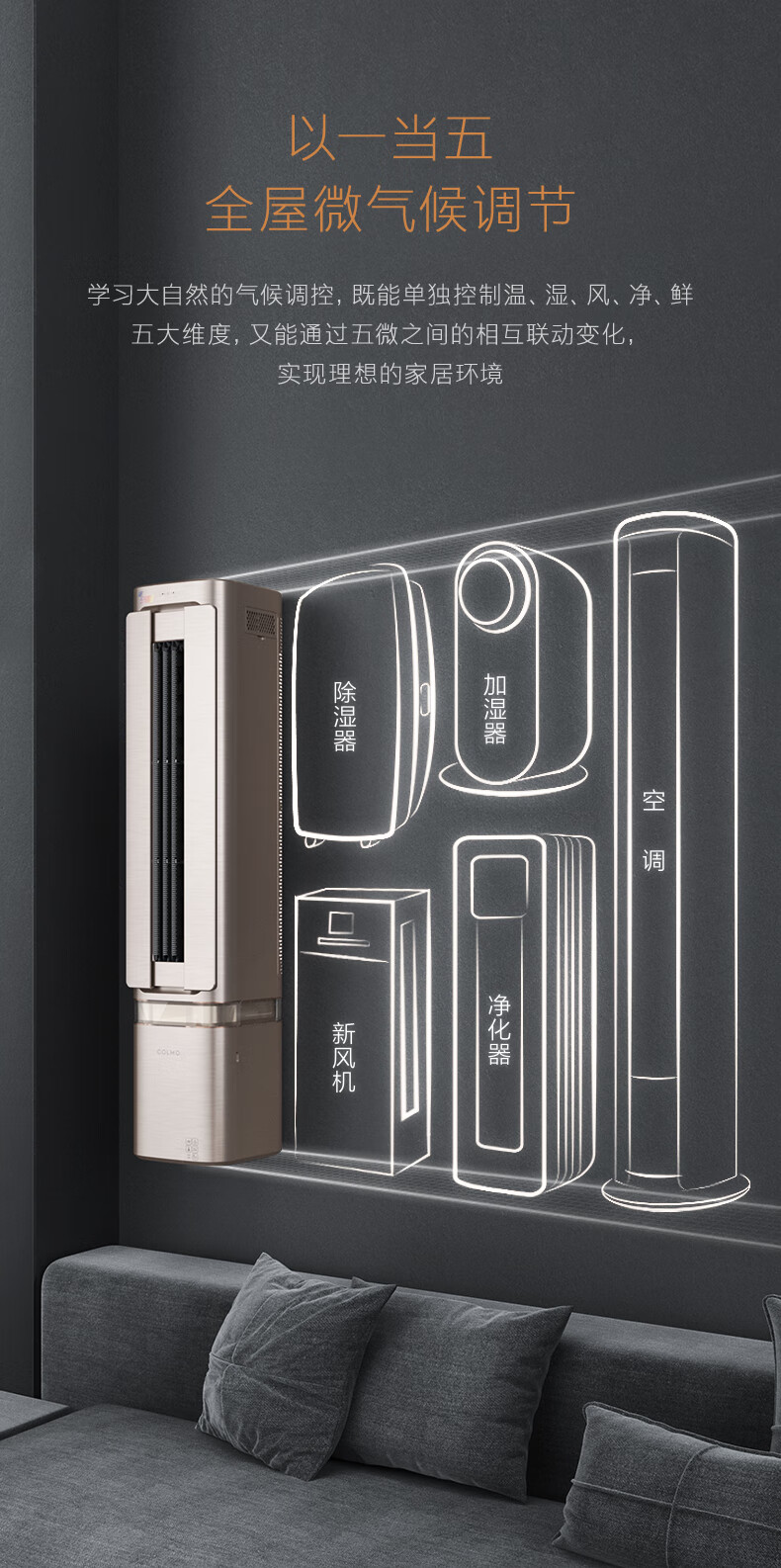 COLMO空调挂机【柜挂两用】空间站系列1.5匹/小2匹家用变频冷暖挂机立式两用空调 一级能效悬角式空调 1.5匹 一级能效