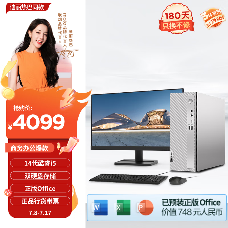 主机 × 1 有线键盘 × 1 有线鼠标 × 1 电源线 × 1显示器× 1