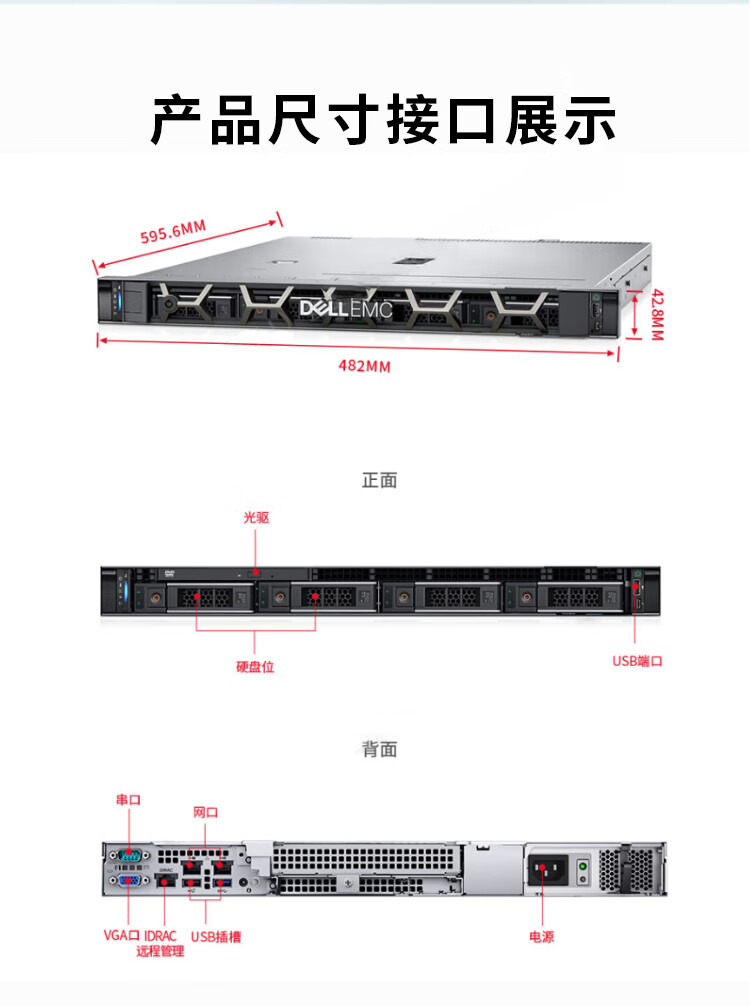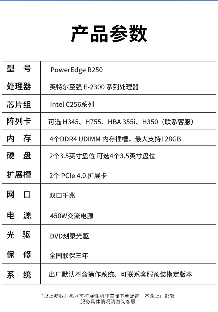 戴尔(DELL)R250服务器主机 1U机架式单路服务器 ERP金蝶用友数据存储电脑主机
