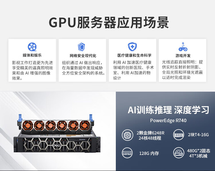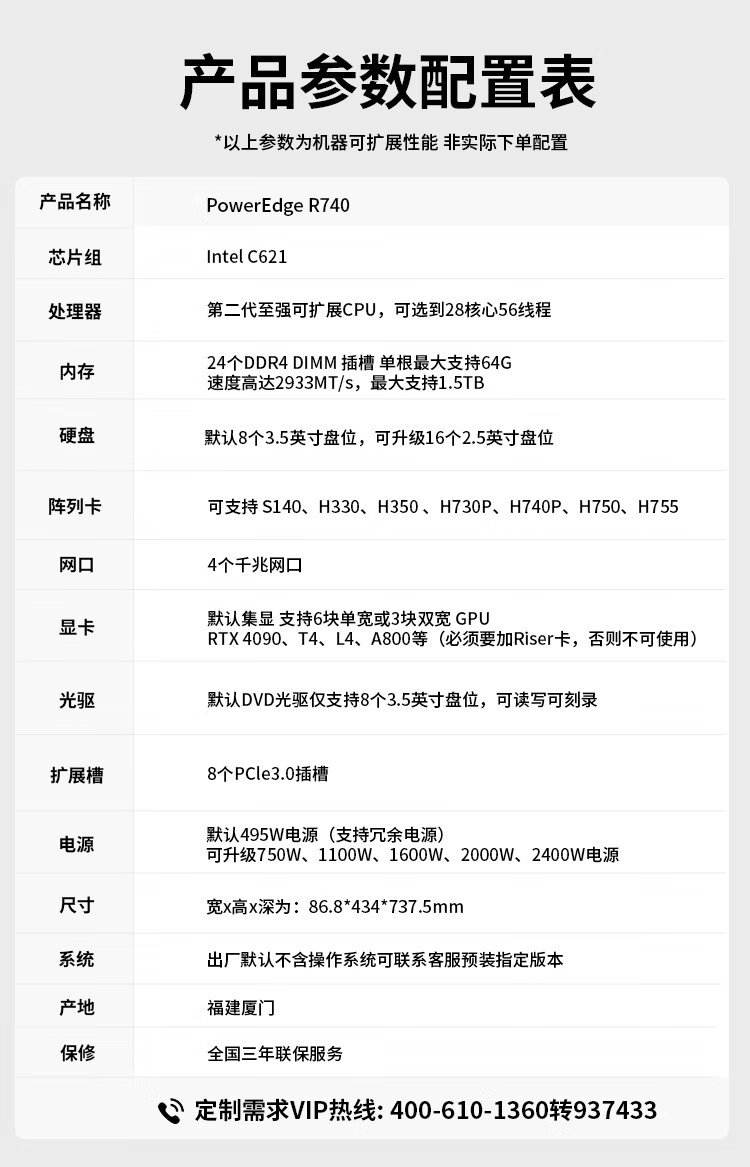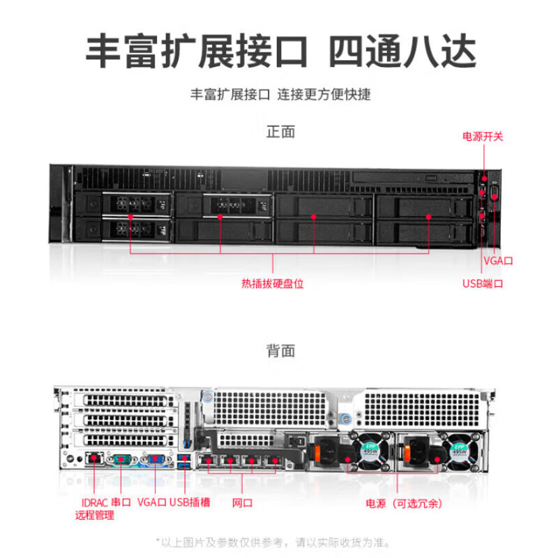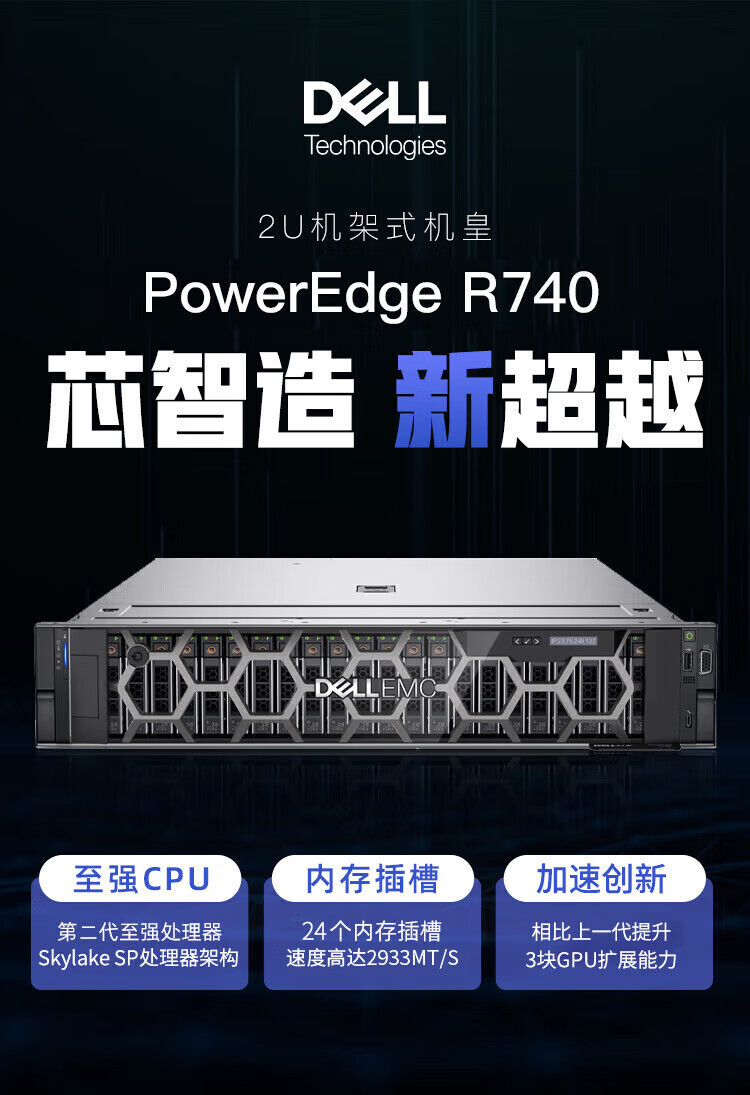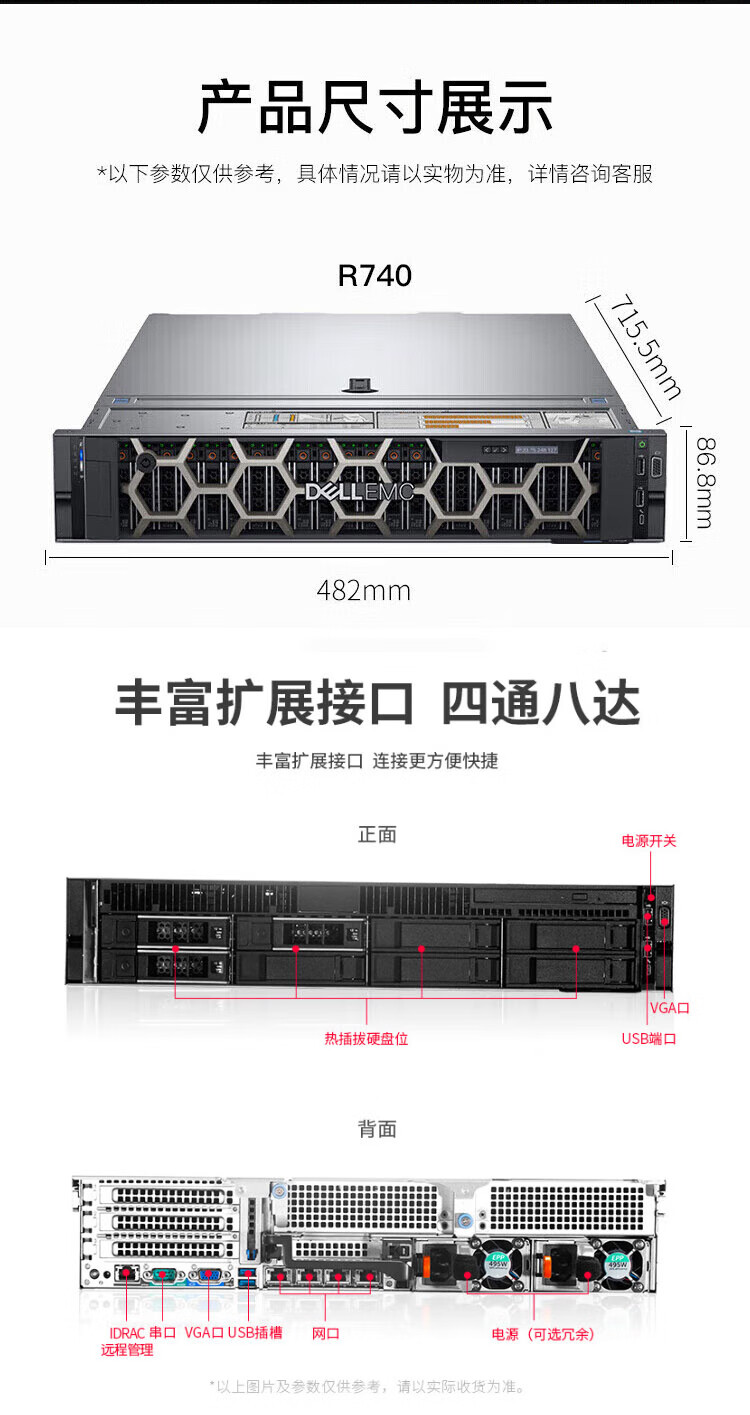 戴尔R740主机戴尔R740电源线(默认不带导轨面板,如有需要可选购戴尔R740 2U导轨 面板等配件)