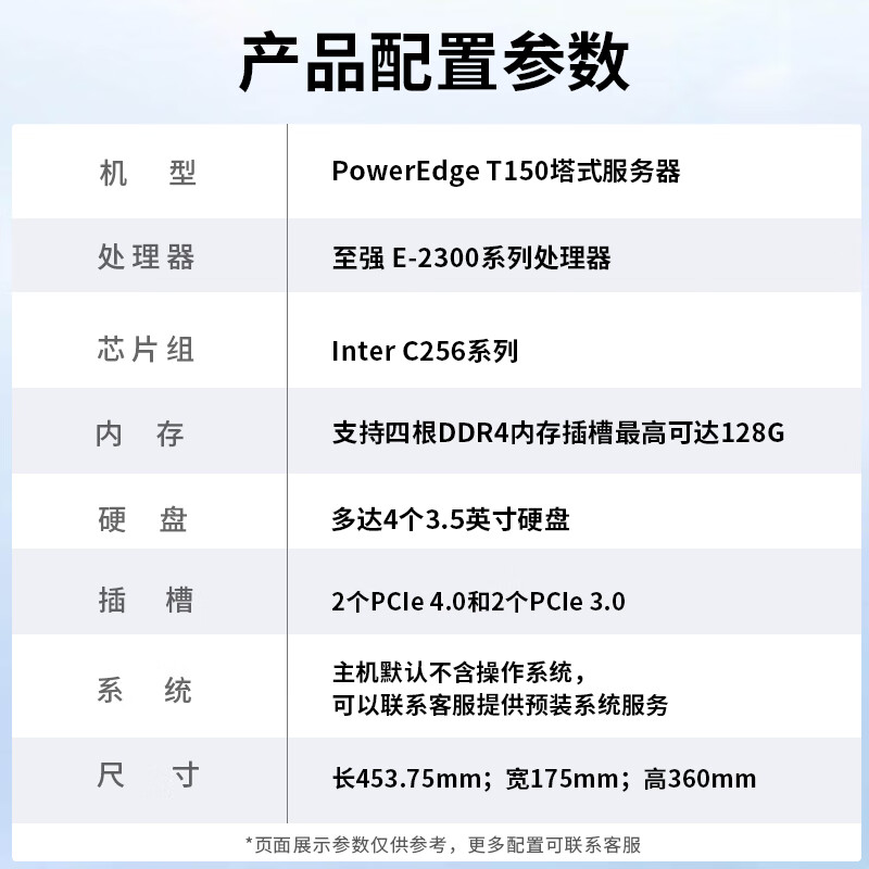 戴尔(DELL)T150塔式服务器财务办公文件共享电脑主机 至强E-2314