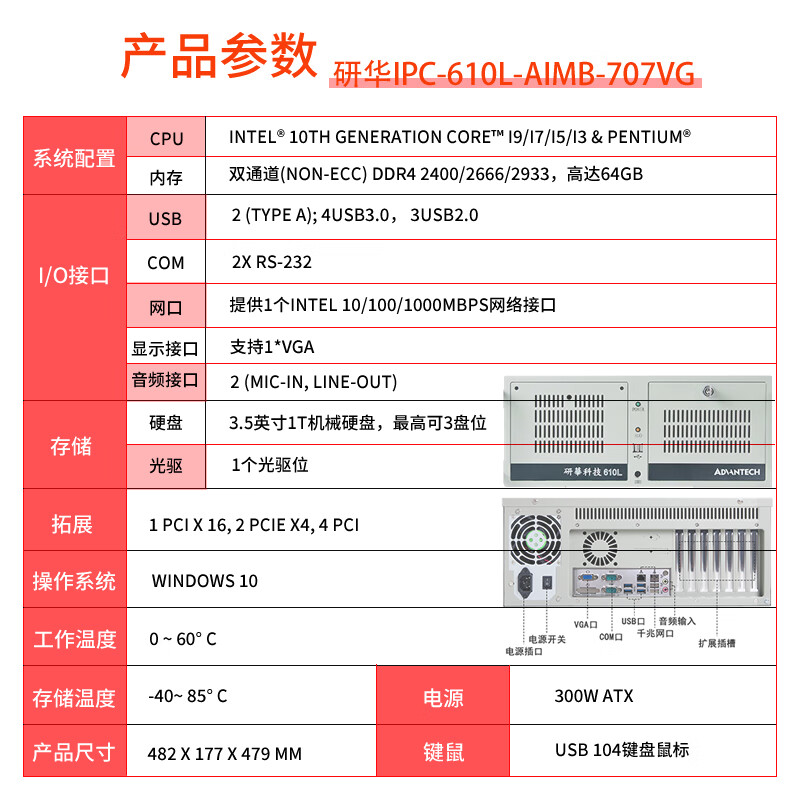 研华IPC-610L-707VG(10代)
