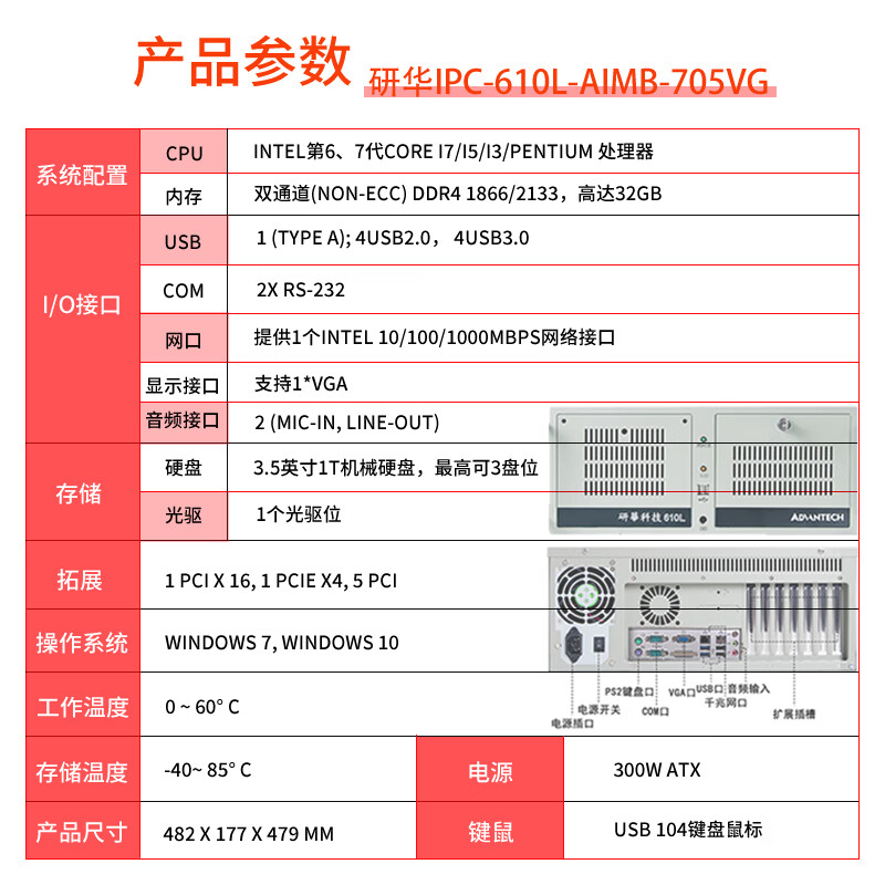 研华IPC-610L-705VG(6/7代)