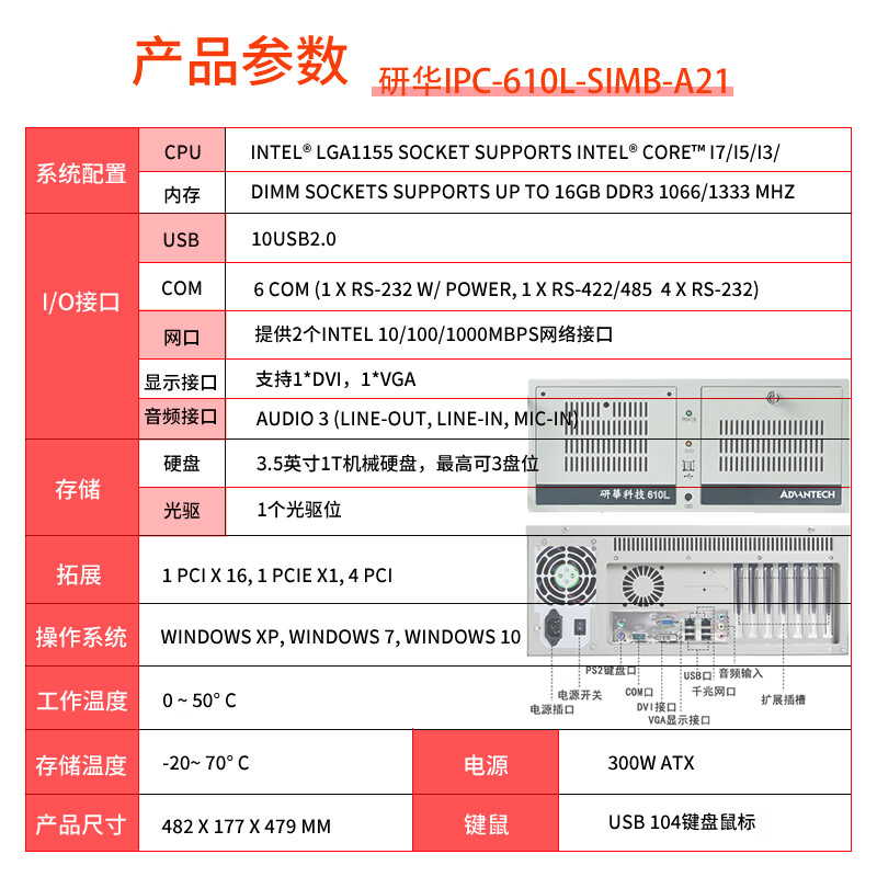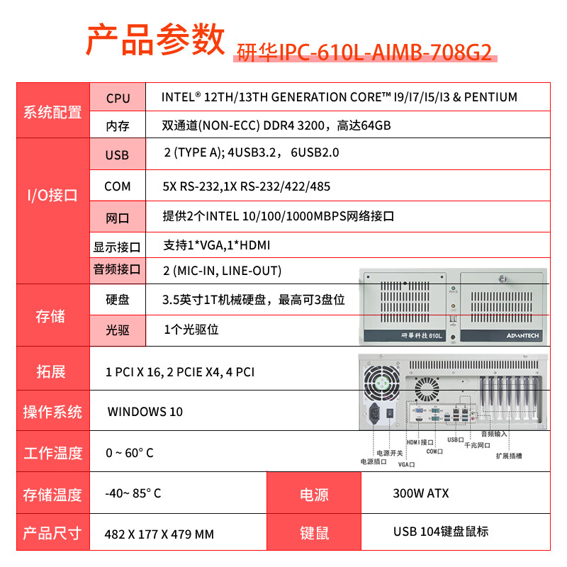 研華科技(ADVANTECH)/研华IPC-510/610L/H工控台式电脑主机4U原装上架式全新正品