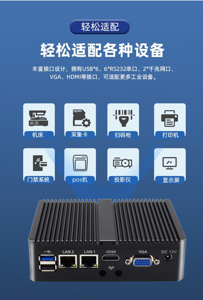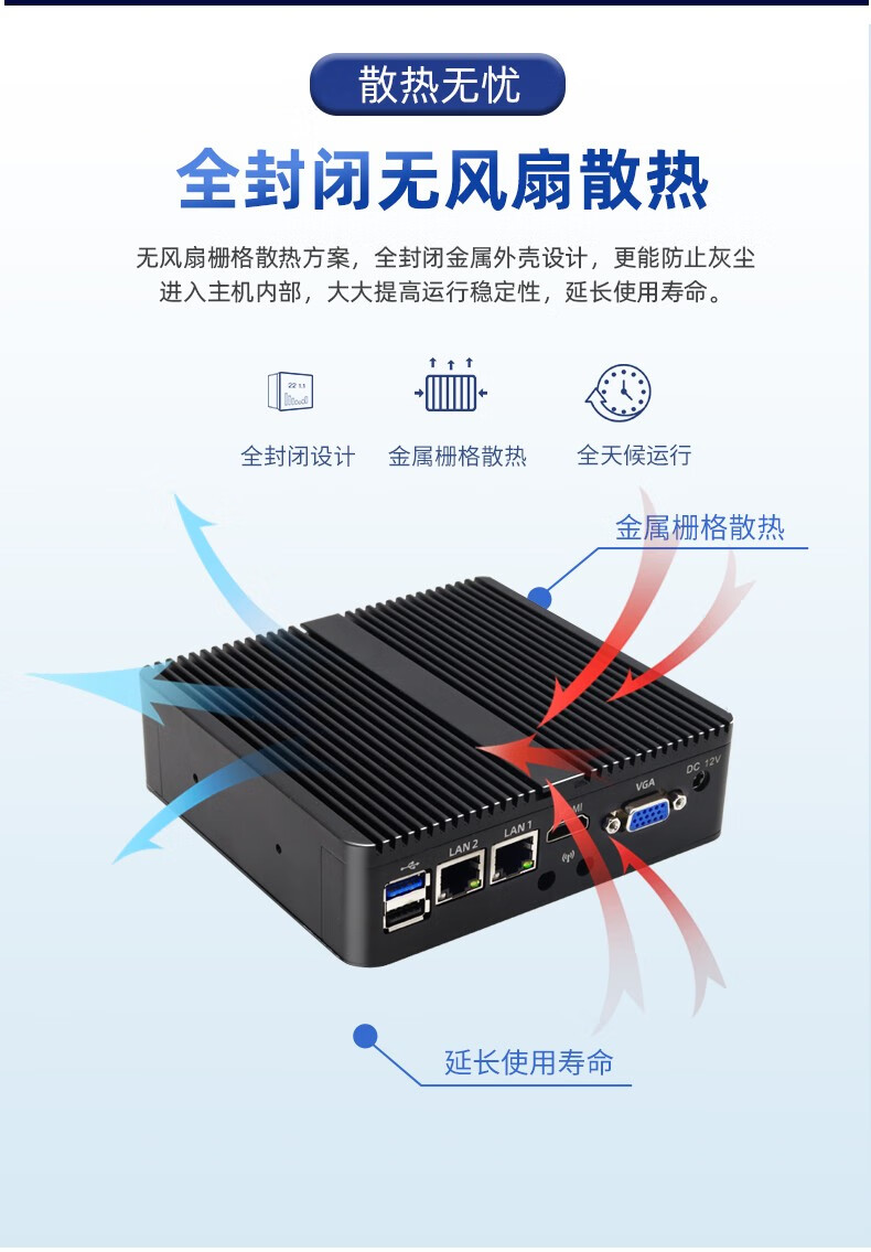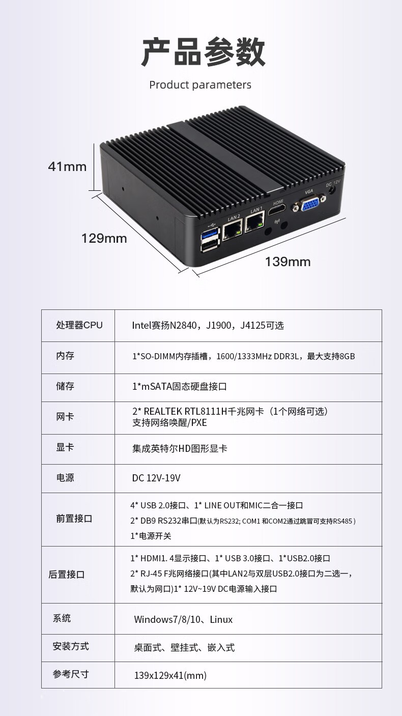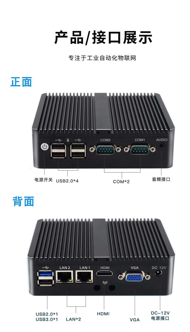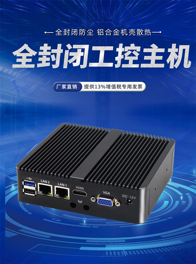 银驰 工控机全封闭无风扇工控主机嵌入式迷你min商务办公便捷式微型台式机电脑双网 赛扬双核N2840(双网)