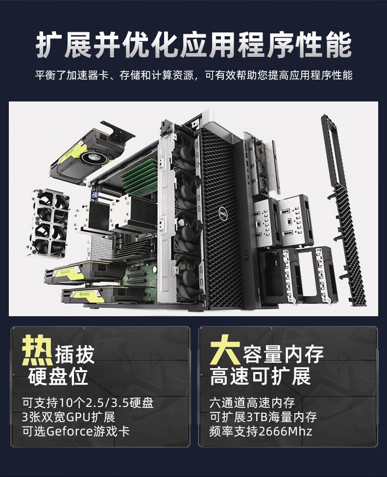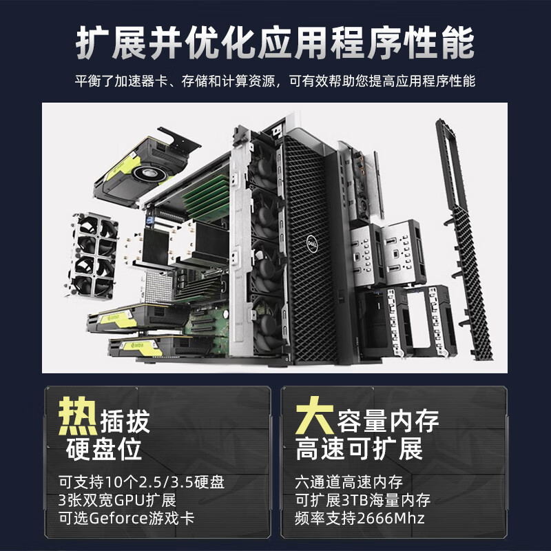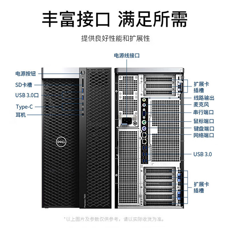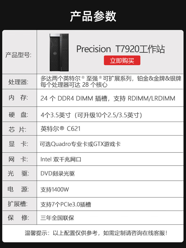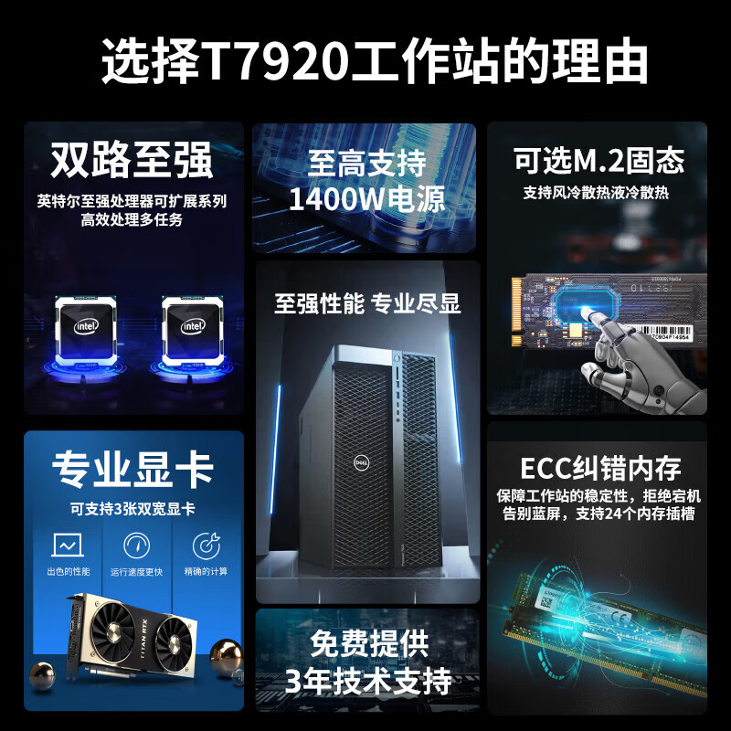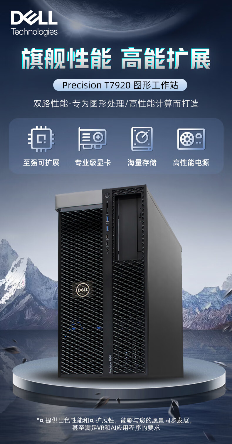 戴尔服务器主机dell T7920 图形工作站设计GPU计算深度学习1*3204 6核丨1.9G
