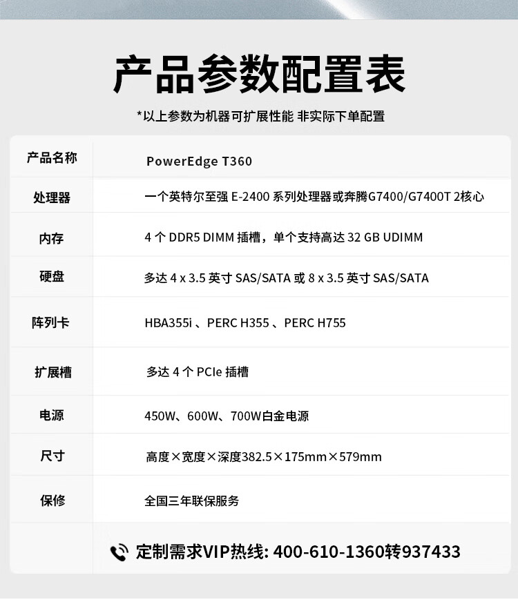 戴尔(DELL)PowerEdge T360 16G新品入门级AIGC应用数据存储塔式服务器主机 至强E-2414