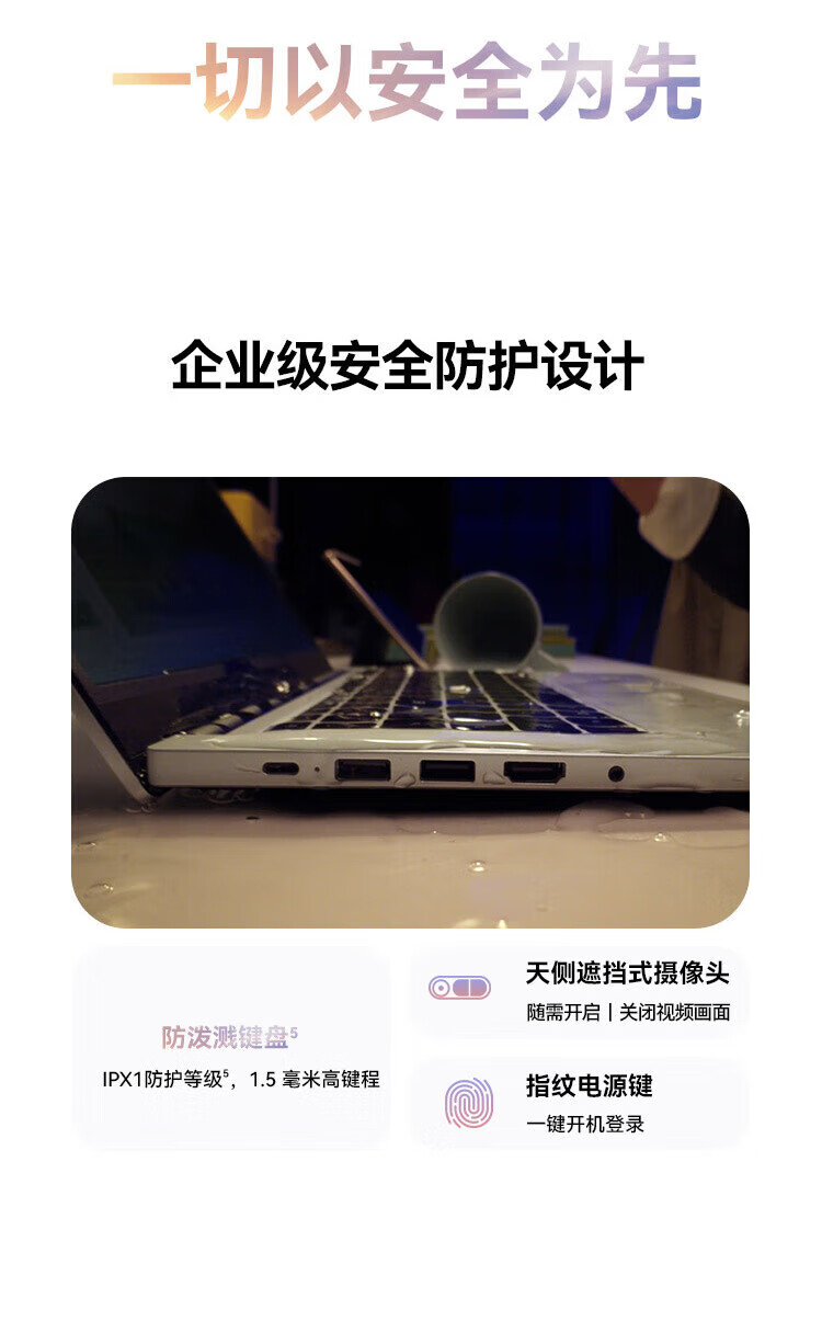 摄像头隐私开关,指纹解锁,180°开合